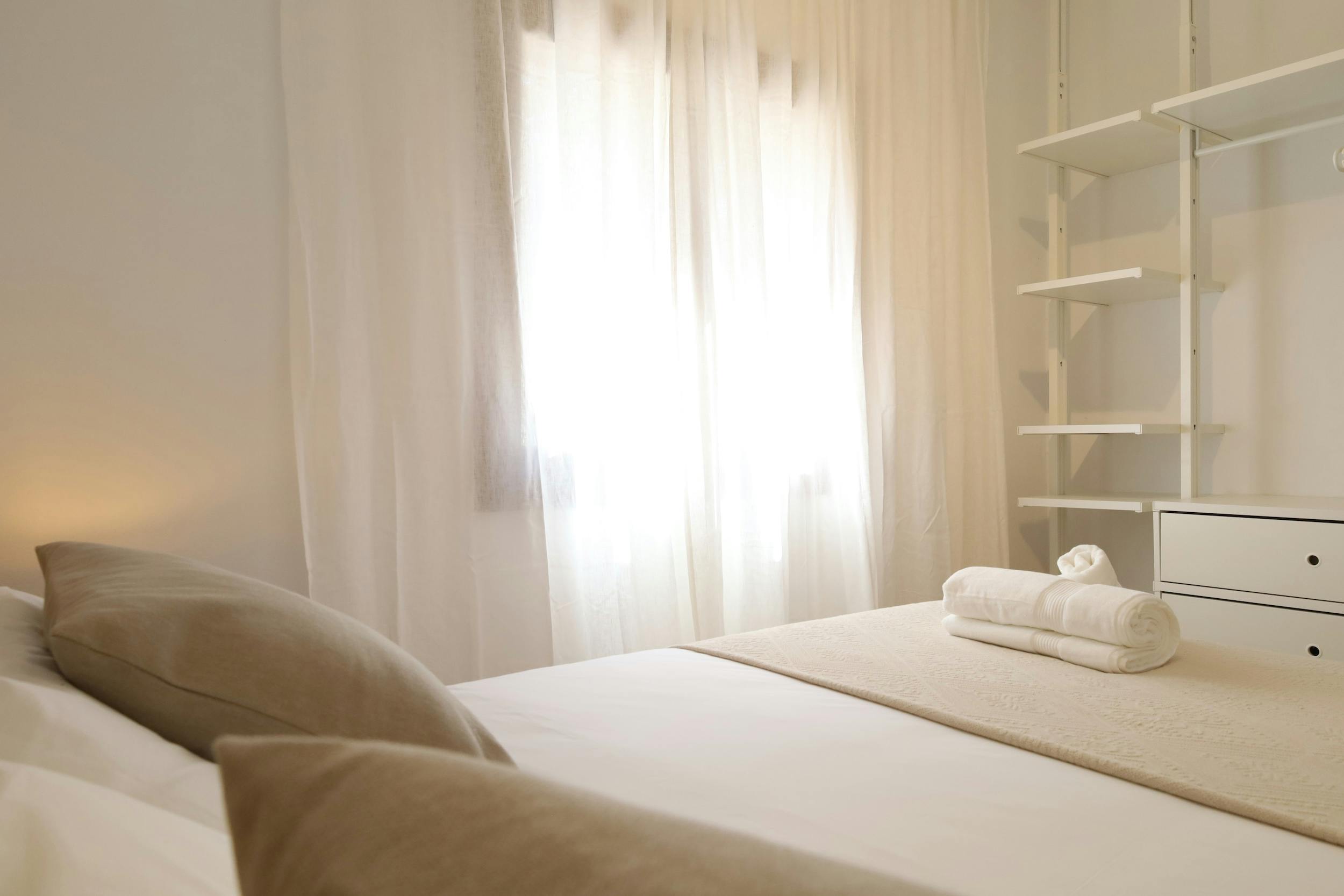 King size bed (180x200cm), air conditioning, shared bathroom (with bedroom 2) with shower.