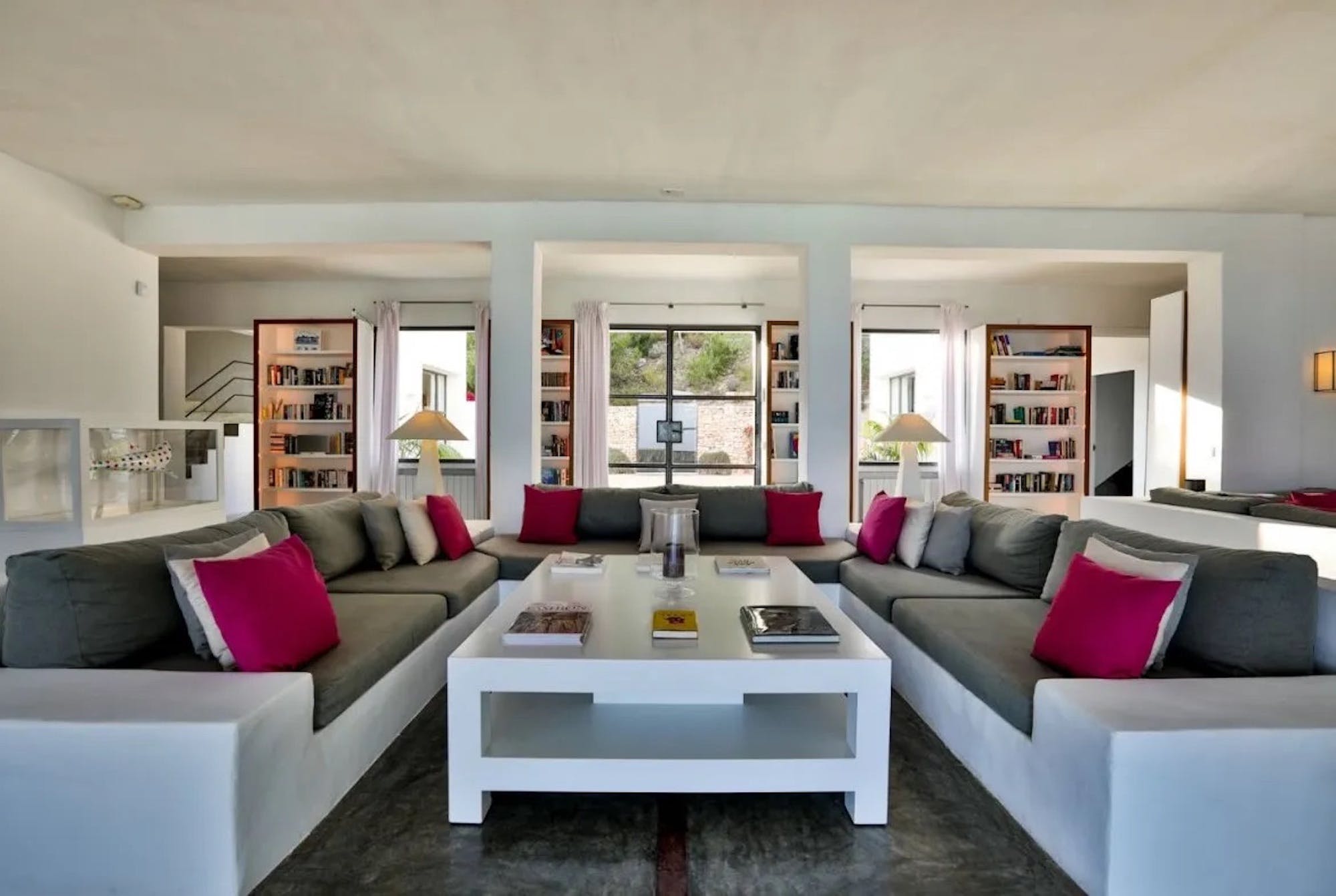 Can Vila is a beautiful, modern 6 bedroom villa, set in a prime private location in the KM5 area of Ibiza, with breathtaking sea views across to Formentera.