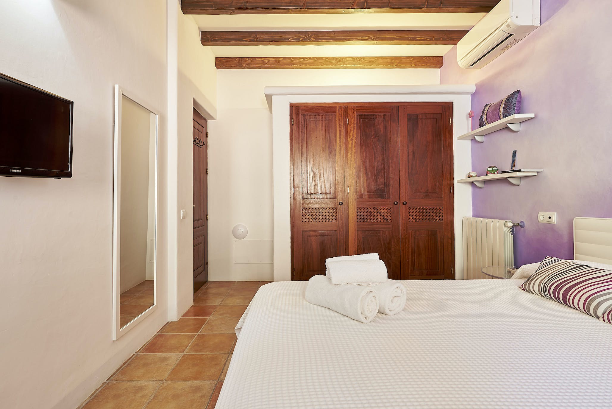 Double bedroom, air conditioning, TV, closets and access to the patio and gardens. Bathroom with shower.