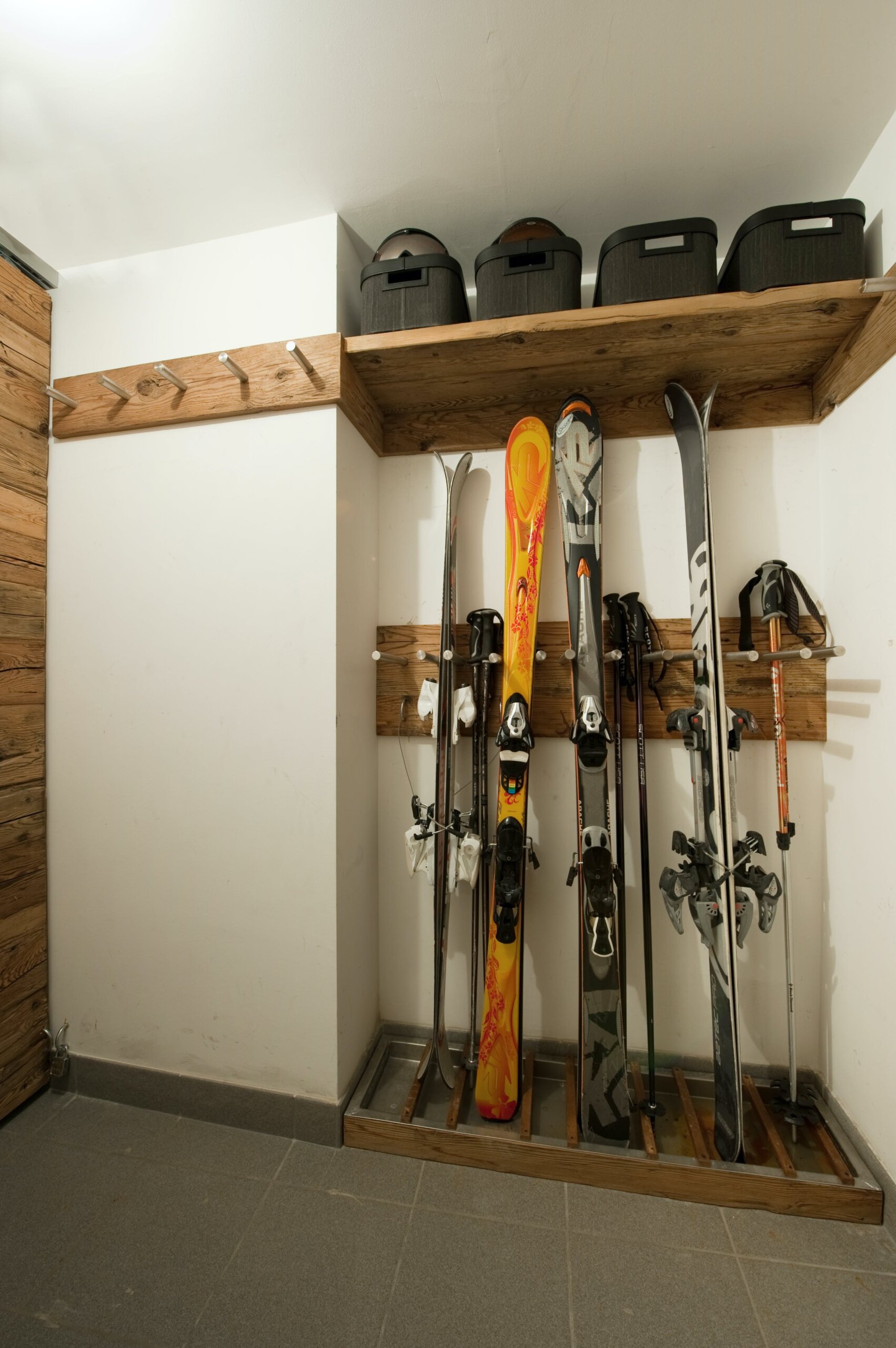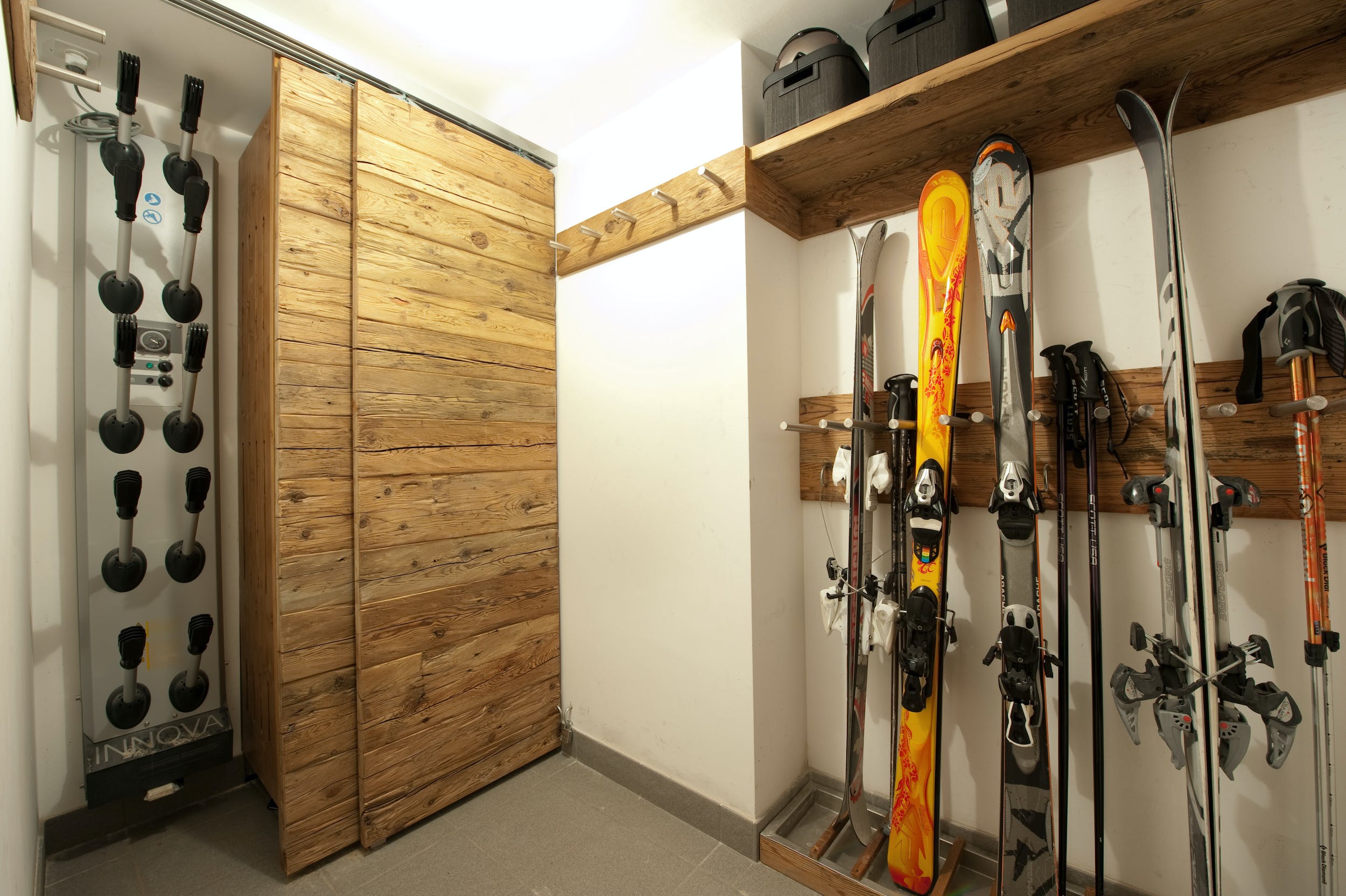 The ski room on the ground floor is conveniently located within the building entrance and is fully fitted for ski and jacket storage, with a heated boot rack. In winter, the region becomes one of the biggest skiing areas in Switzerland. Les 4 Valle ski resort offers 410 km of slopes for every ski level, served by over 90 lifts and a cableway that runs to the top of Mont Fort at a height of 3,300 metres.