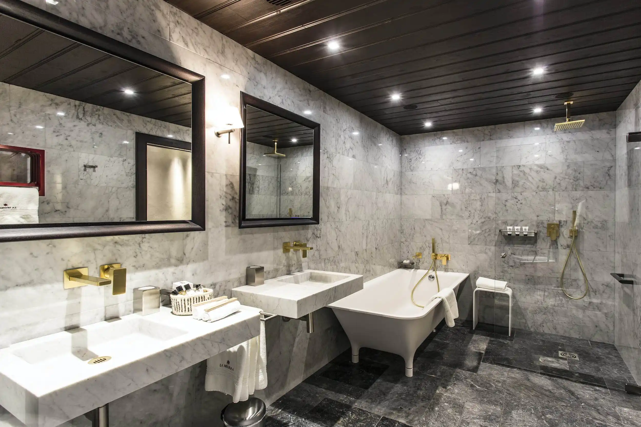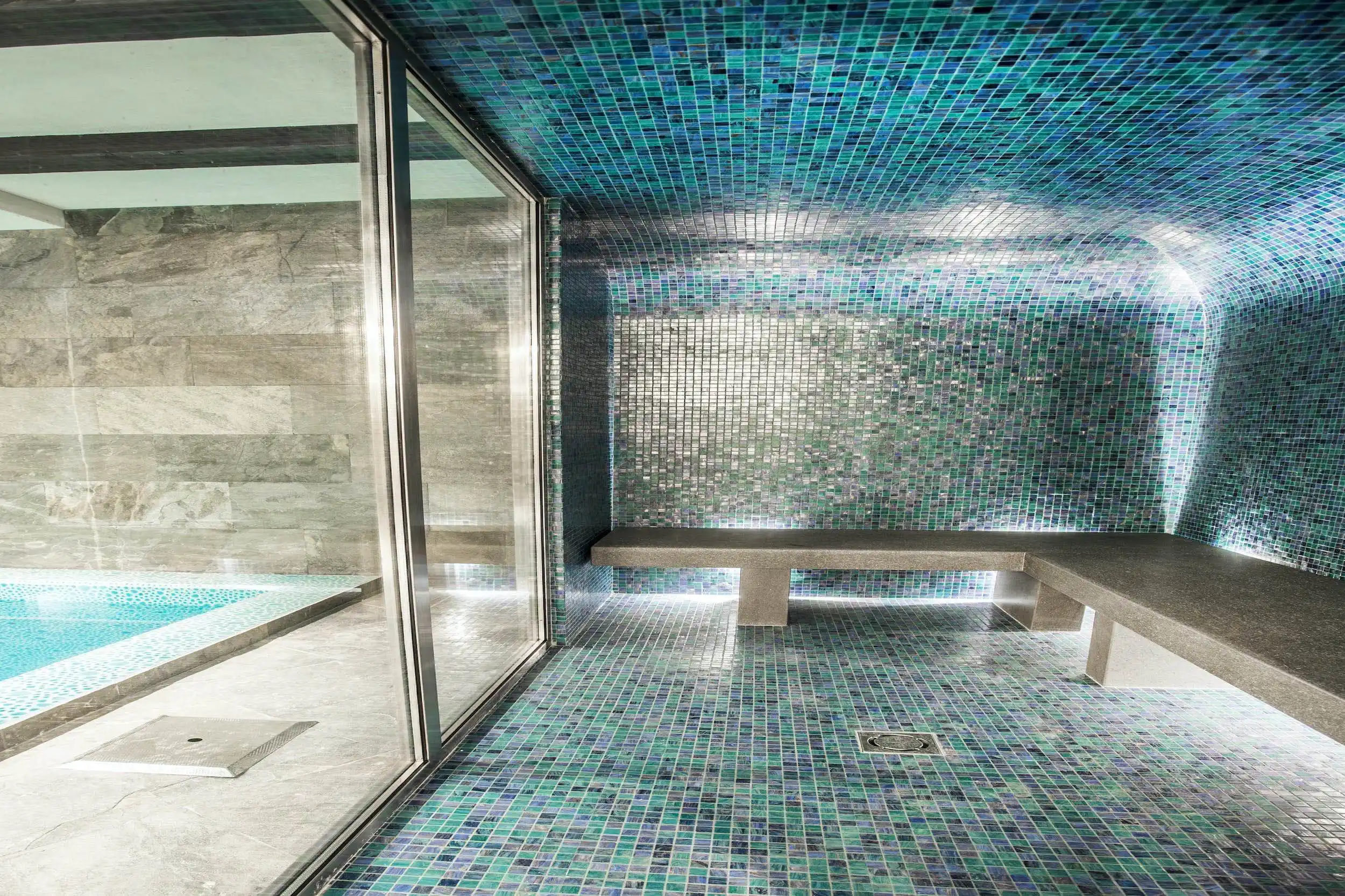 In addition to a private butler, the chalet guests can enjoy all the 5-star hotel facilities (reception & concierge 24h/24h, drivers, porters,…) at the adjacent hotel. They can enjoy their chalet in privacy, but also enjoy the “common” spaces such as the restaurant and bar area. While the Wellness Centre at the hotel offers a heated indoor swimming pool of 17 metres long, sauna, steam room and relaxation room.
