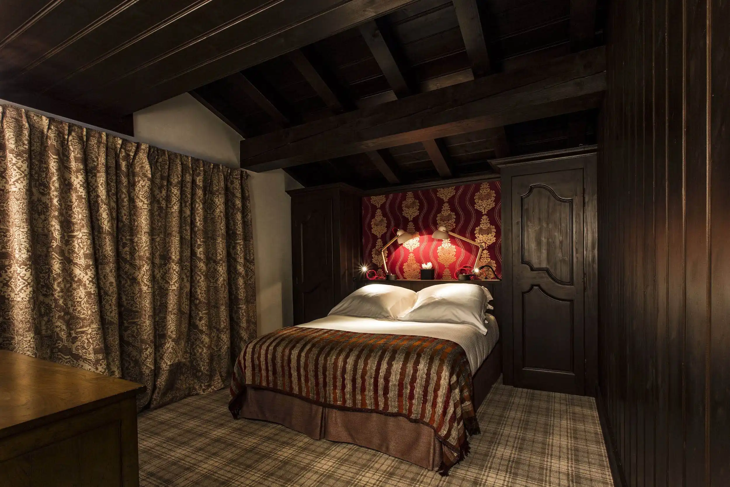 Chalet Celestia is a luxurious ski chalet located in a charming ‘hamlet’ that includes five other luxury chalets, offering unique and exceptional services. Inspired by traditional alpine style, Chalet Celestia is built with reclaimed wood and adorned with sumptuous fabrics, creating a warm and inviting atmosphere.