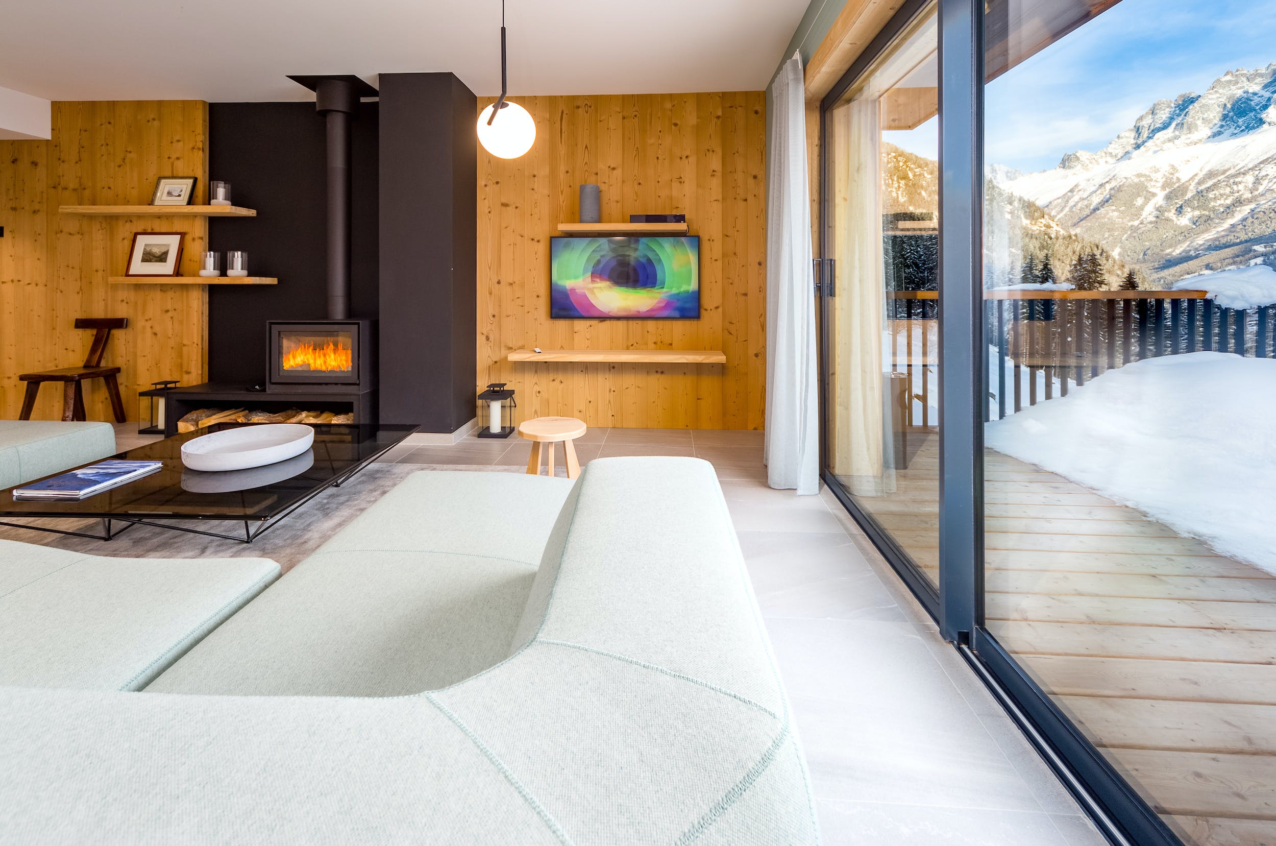 With the accolade of best new ski chalet 2019, Chalet Chamonix has been thoughtfully designed to showcase the spectacular mountain scenery. Each of the twelve bedrooms, sophisticated en-suite bathrooms, children’s bunkroom, and boardroom, has been oriented to offer a balcony or terrace that bathes in the longest hours of sunlight of any property in Chamonix.