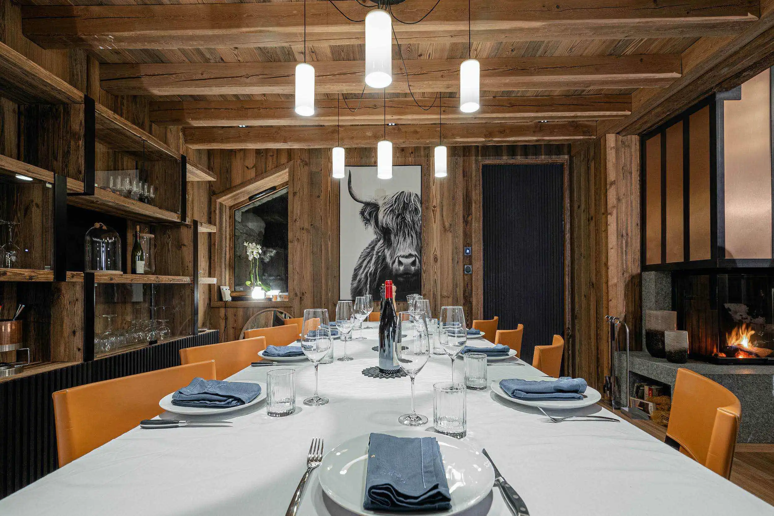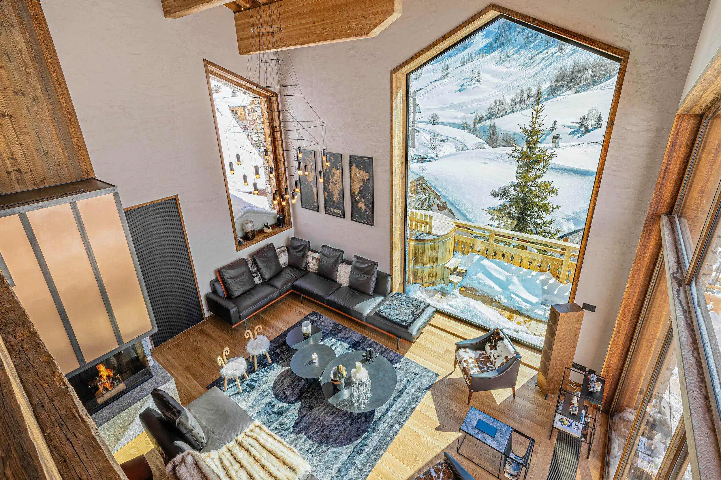 Outside, a large peripheral terrace equipped with a brazier bar and a heated Norwegian bath offers a 220° view overlooking the entire valley.