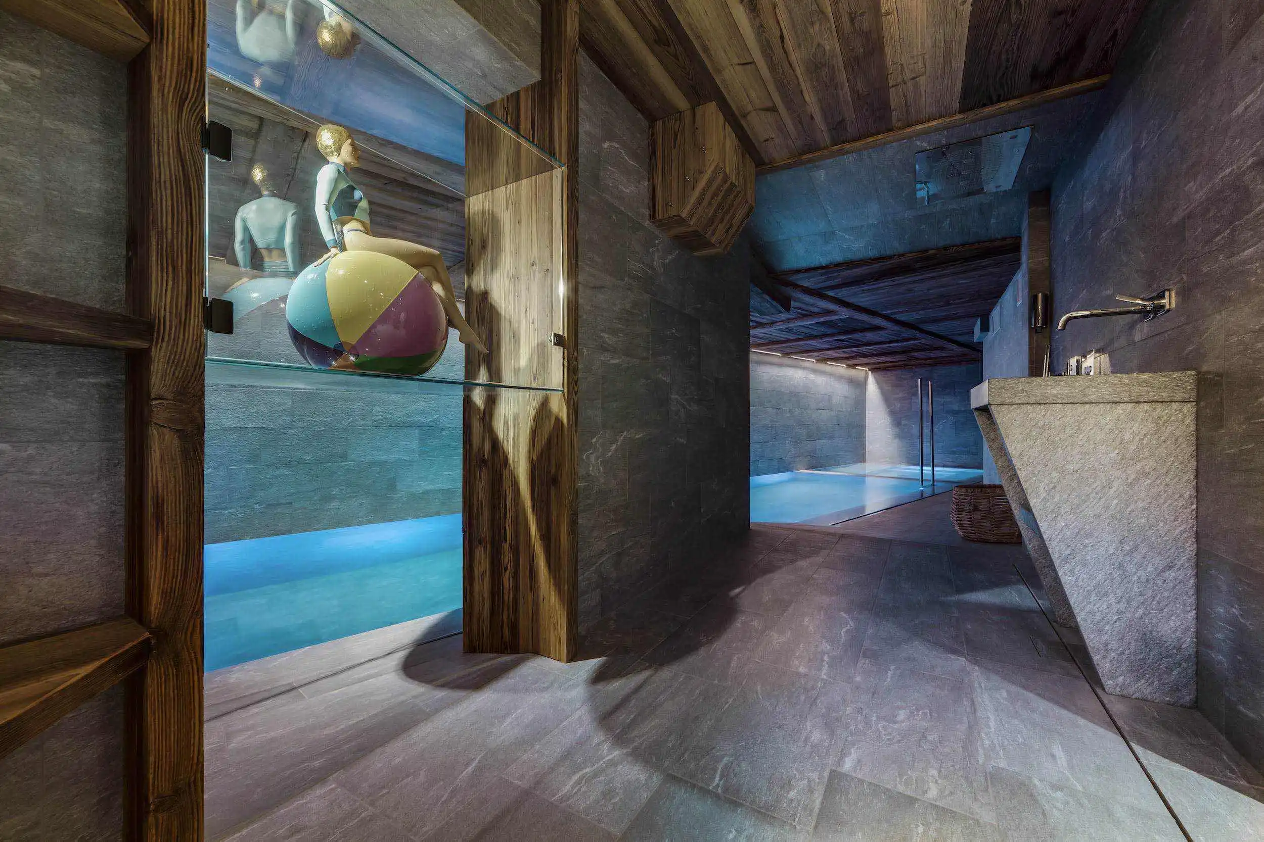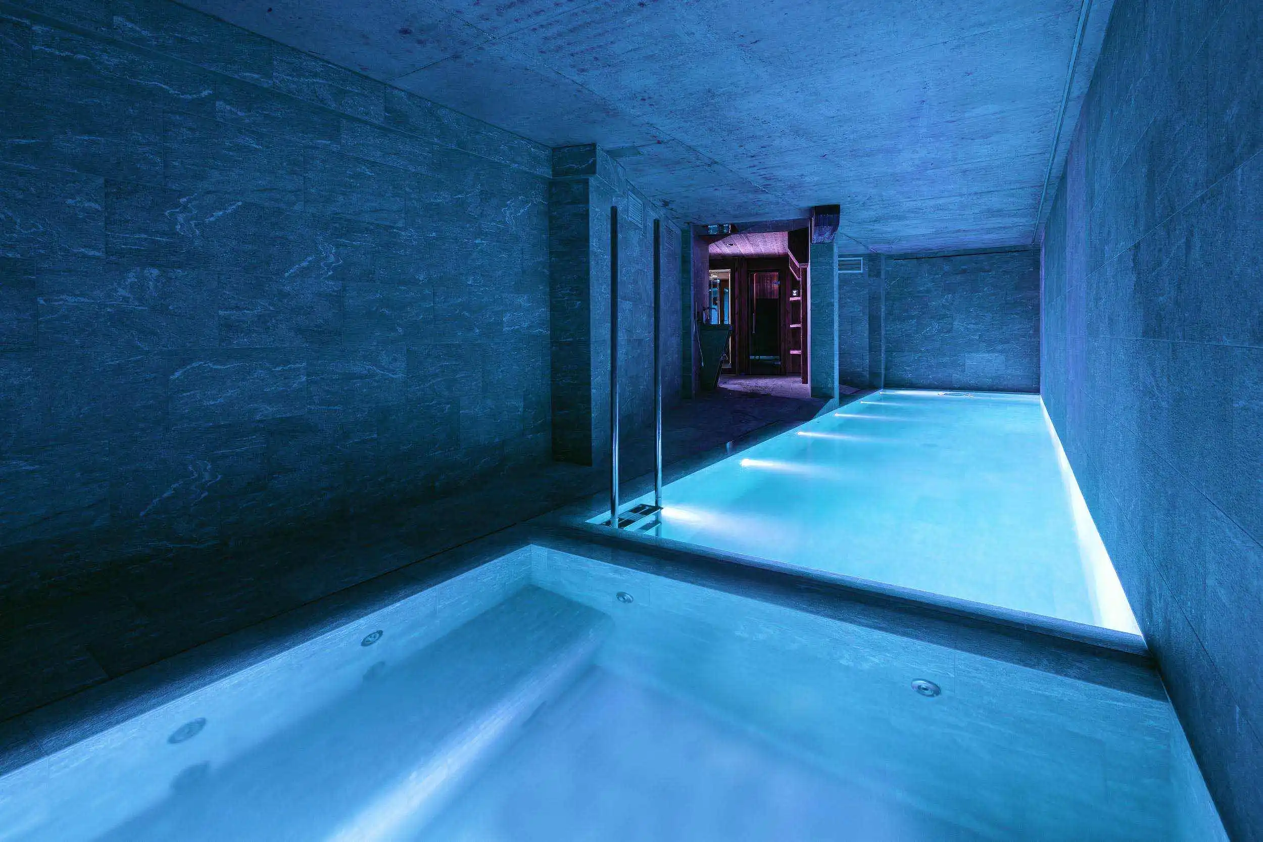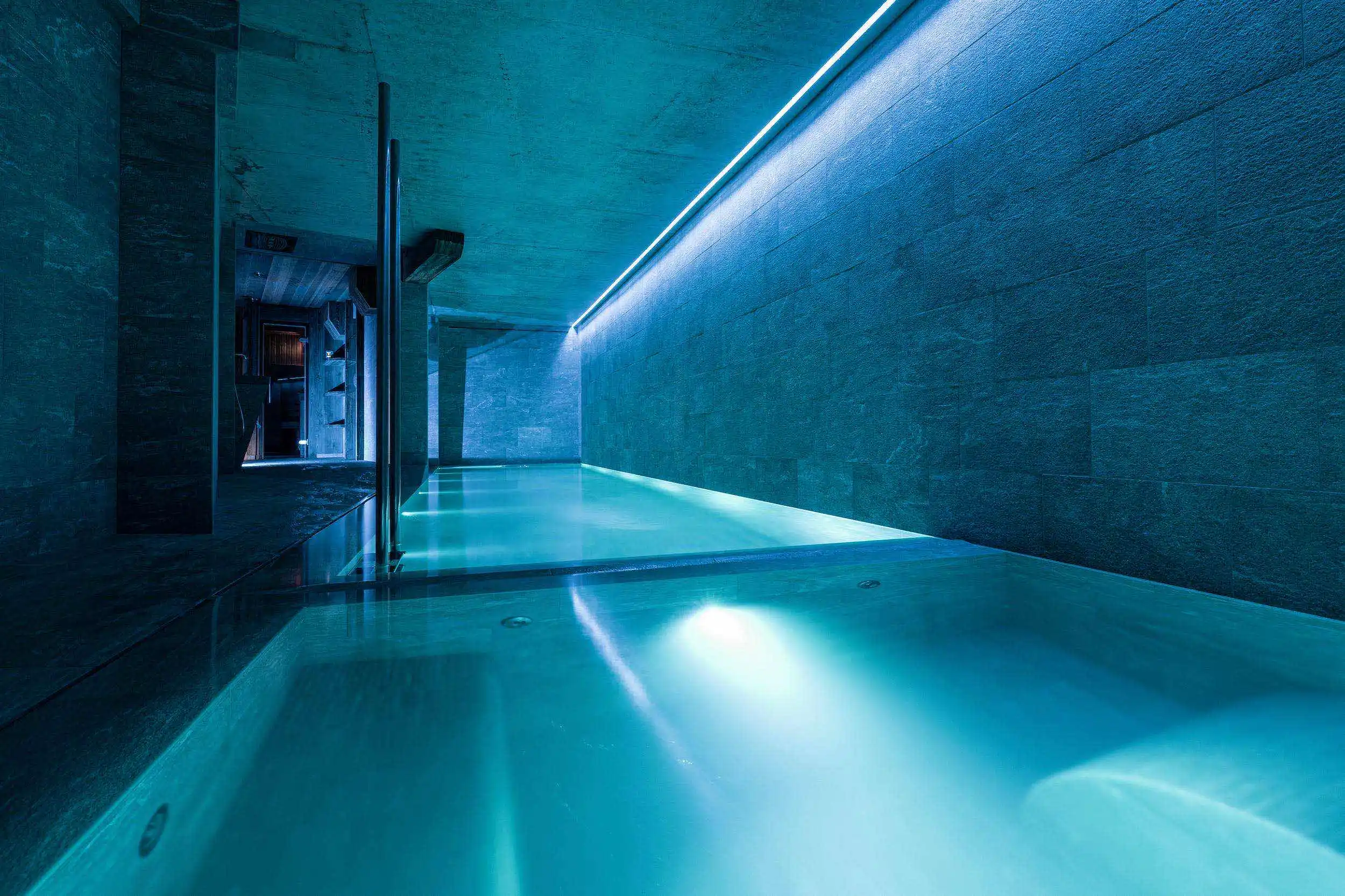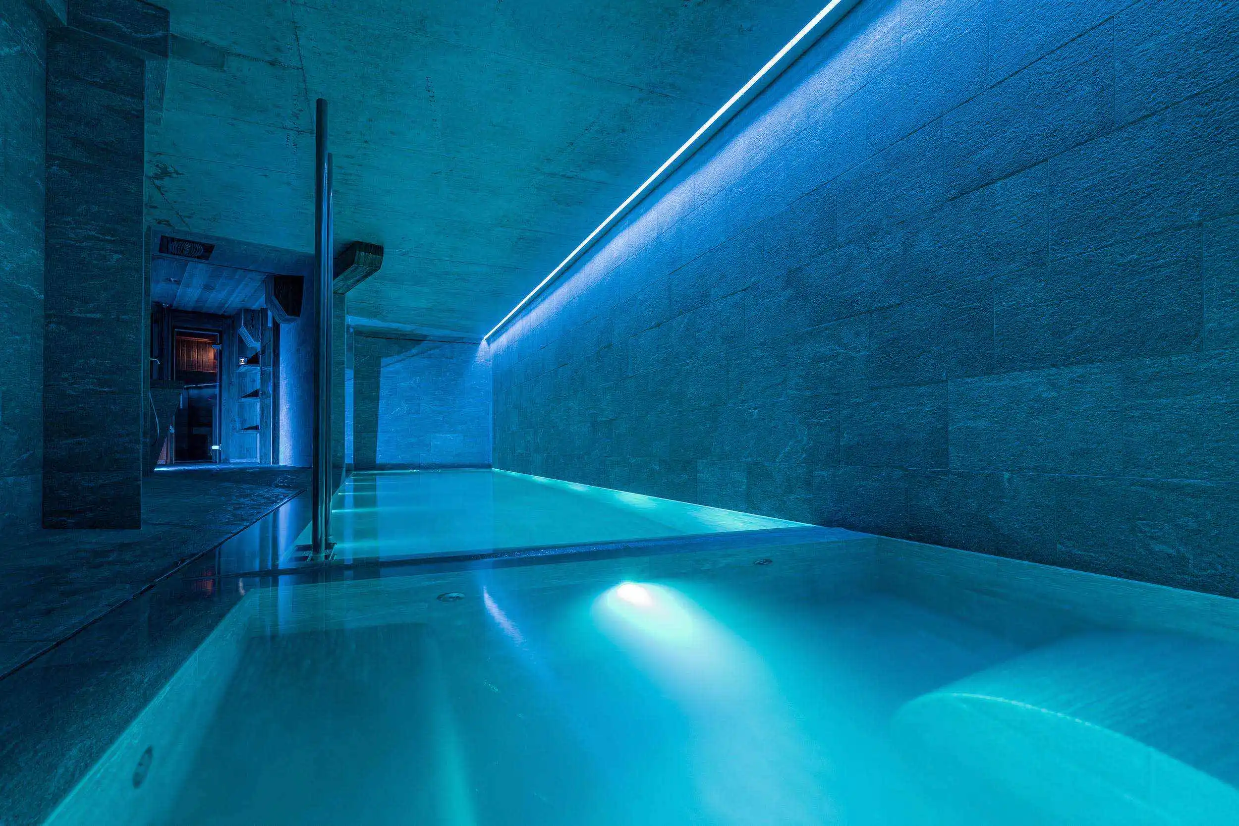 Another huge asset of Chalet Killy is the wellness and fitness area. With an overflowing water line of 15 meters (50ft), a swimming pool and a jacuzzi each heated with a different water temperature, for ultimate relaxation after a long day on the slopes.