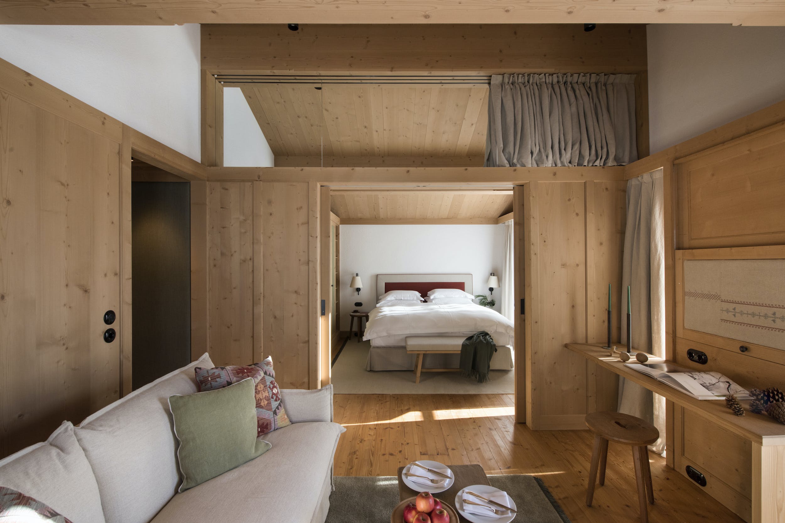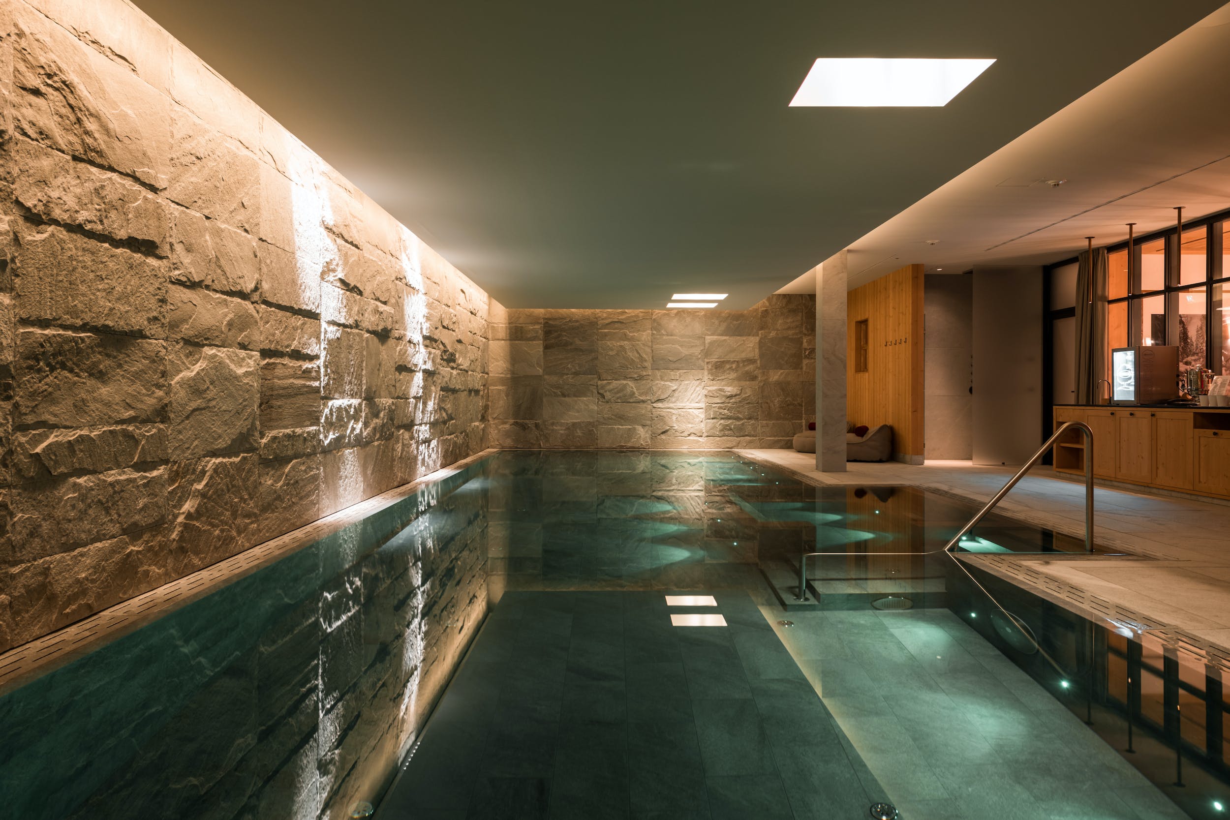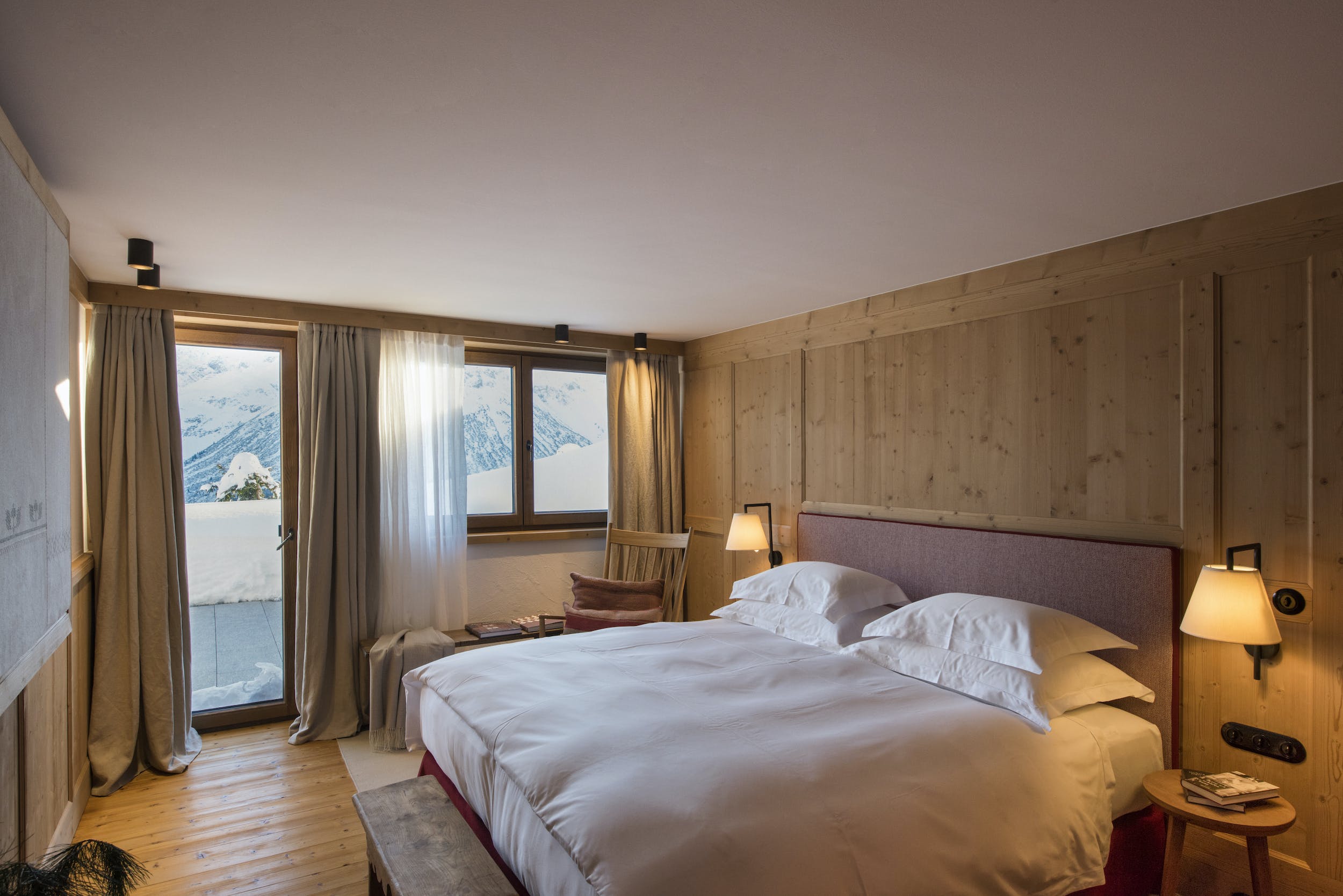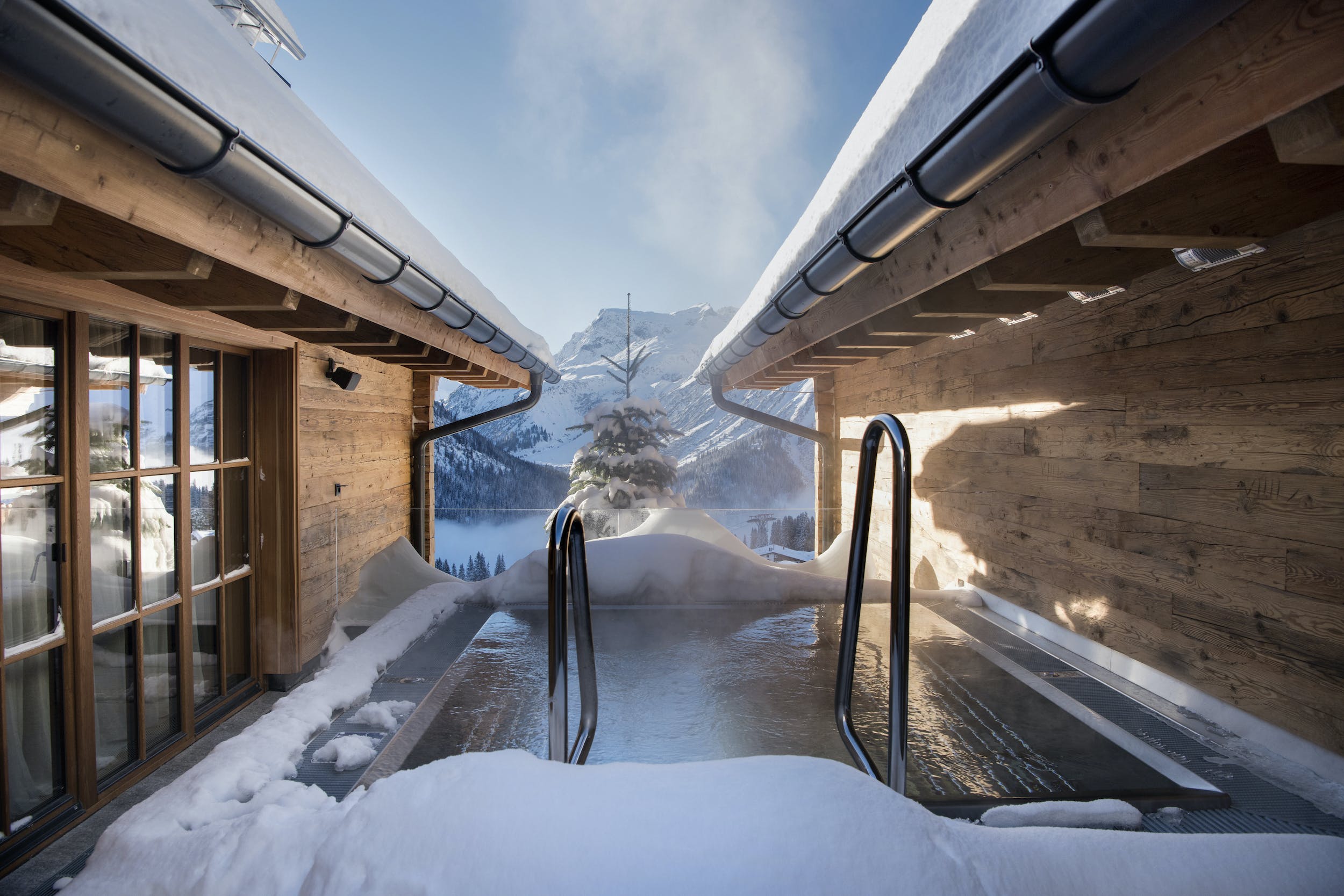 Pale timbered walls, the cool, muted tones of the soft furnishings and the nods to rustic alpine design throughout the chalet create a superbly homely atmosphere. Meanwhile, the spa is all state-of-the-art, with a beautiful indoor pool area, sauna and treatment room. Or head outside to enjoy the rooftop hot tub with some serious mountain views.