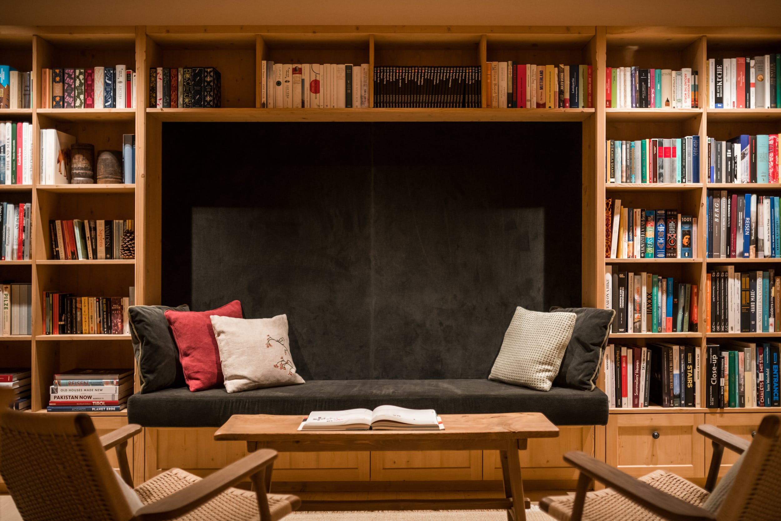 After you’ve soothed tired muscles in the spa, retire to the generous lounge with feature fireplace. Here, doors out to the balcony reveal more magnificent mountain panoramas. Close by, bar stools and bench seating surround the bar and there’s a ten-seat dining table. This open-plan living space makes for social après ski entertaining. Or, if you need some quiet space, you’ll find it in the cosy snug, library area or office space.