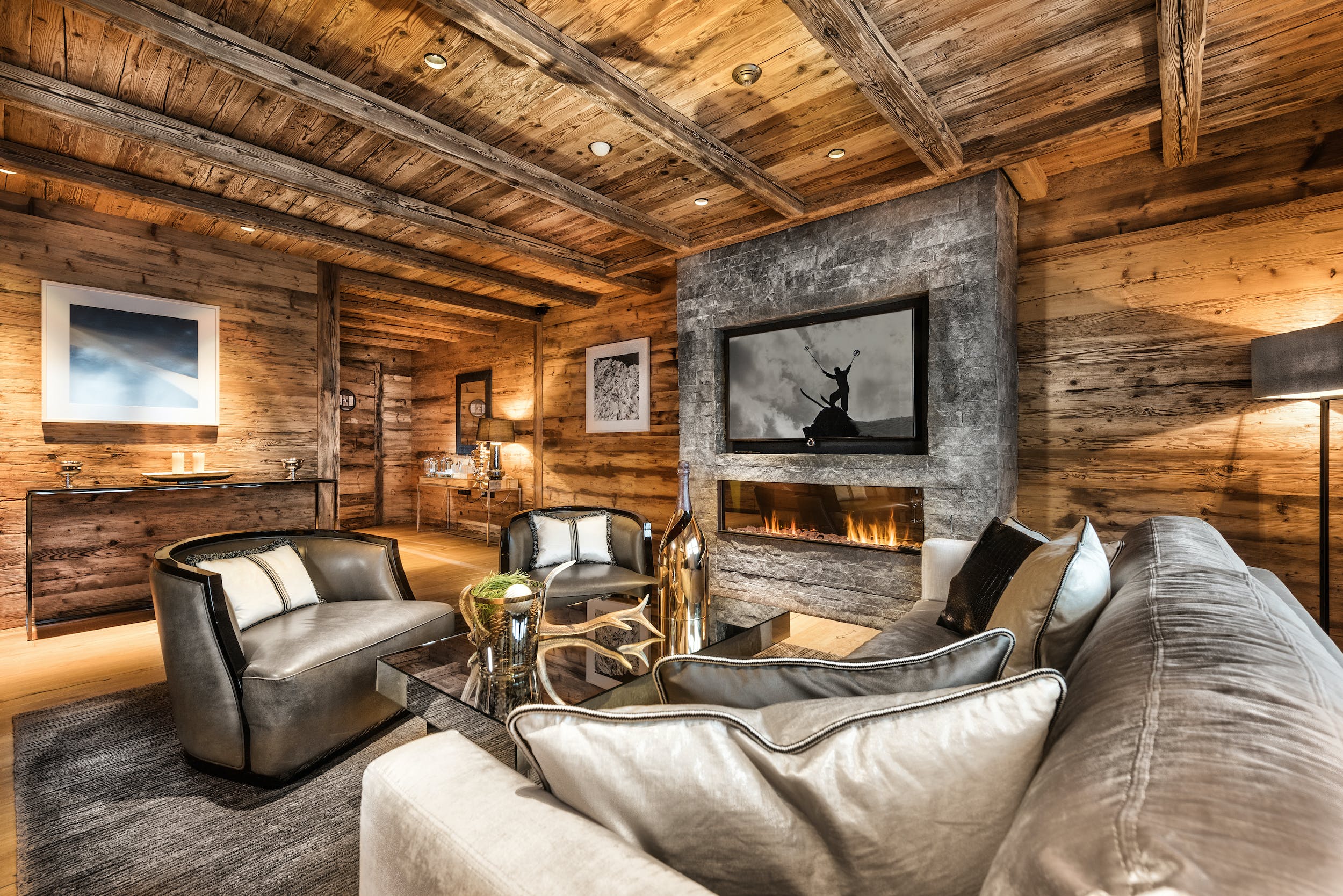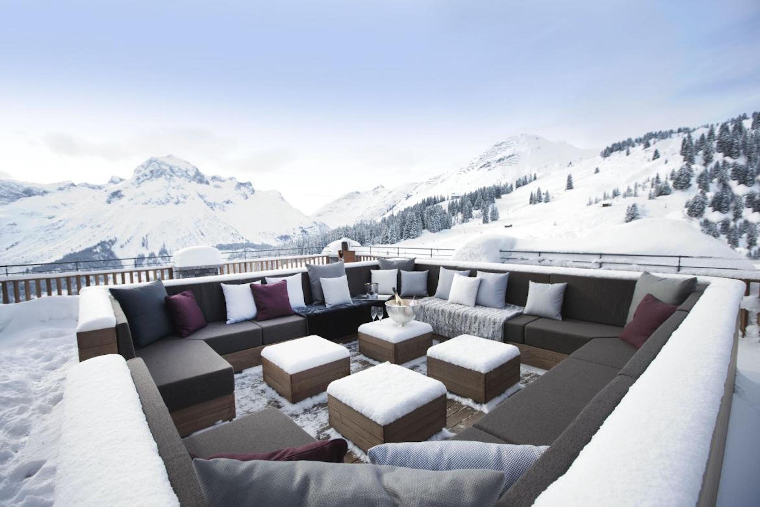 With ten bedrooms, all en-suite and with private terraces or balconies, accommodating up to 22 people, Chalet Oberlech is a sophisticated option for large groups. Attention to detail shows throughout, with interiors combining a sophisticated blend of luxe alpine chalet and luxury hotel. Enjoying 24-hour service and plenty of different lounge areas in which guests may relax, Chalet Oberlech is made for entertaining.