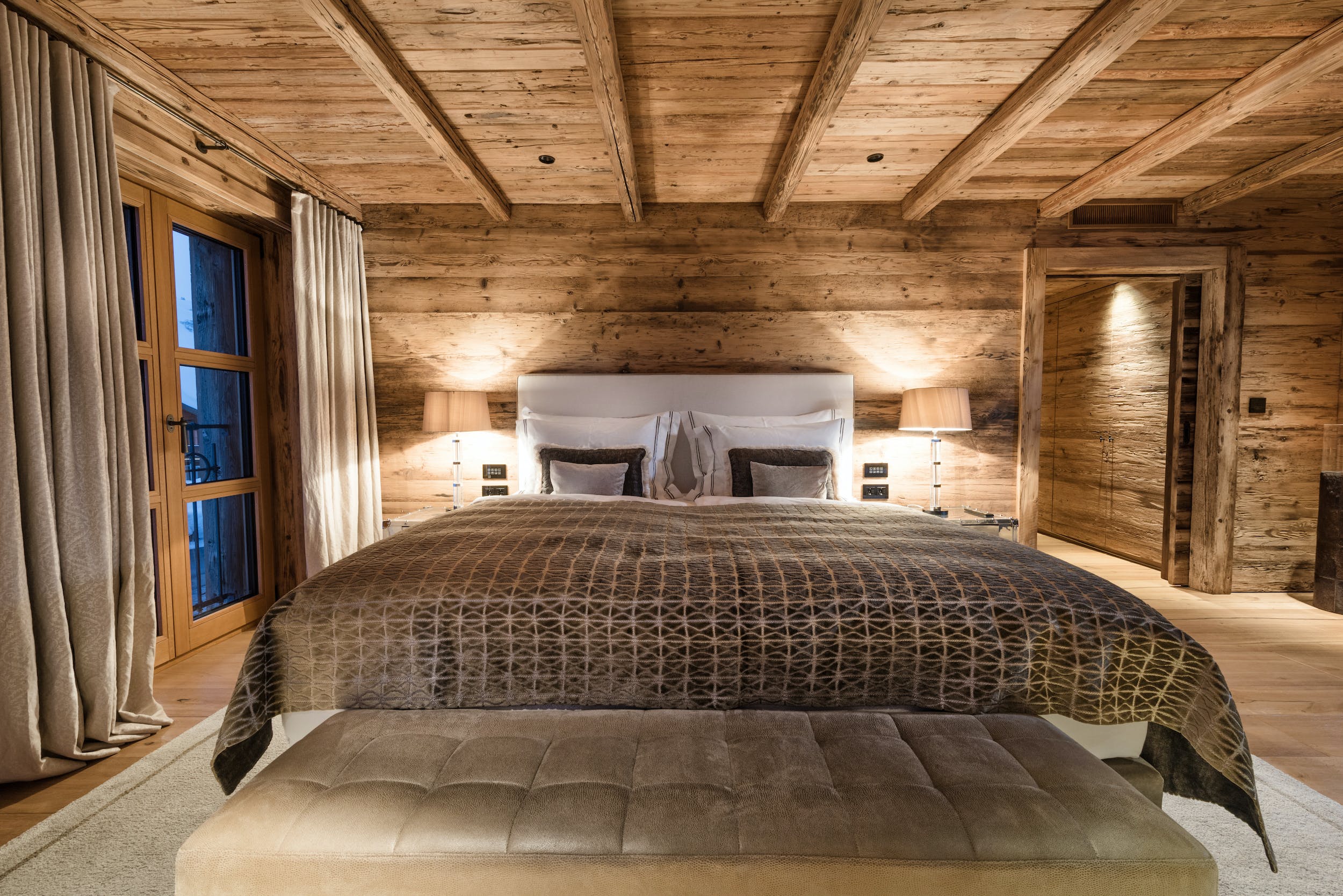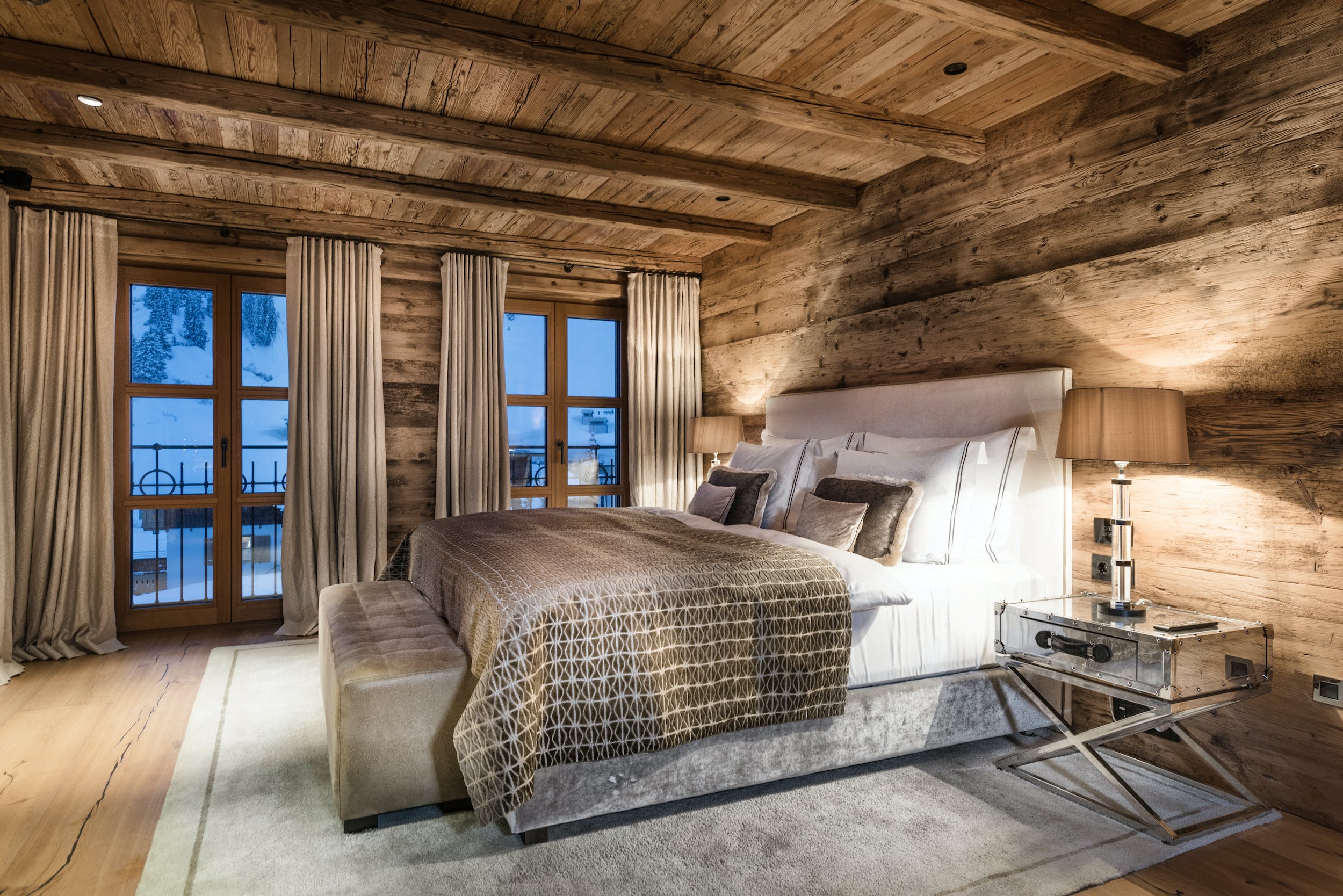 In the bedroom suites, rustic pine walls and plush neutral furnishings create a tranquil ambiance, while the opulent bathrooms are a stylish mix of timber and natural stone. As well as the master suite, six king-size doubles and two twin rooms, the chalet?s children?s bunk room sleeps four little ones, treating them to the same breathtaking vistas of Lech and Oberlech and the same high-quality entertainment options provided in the other bedrooms.
