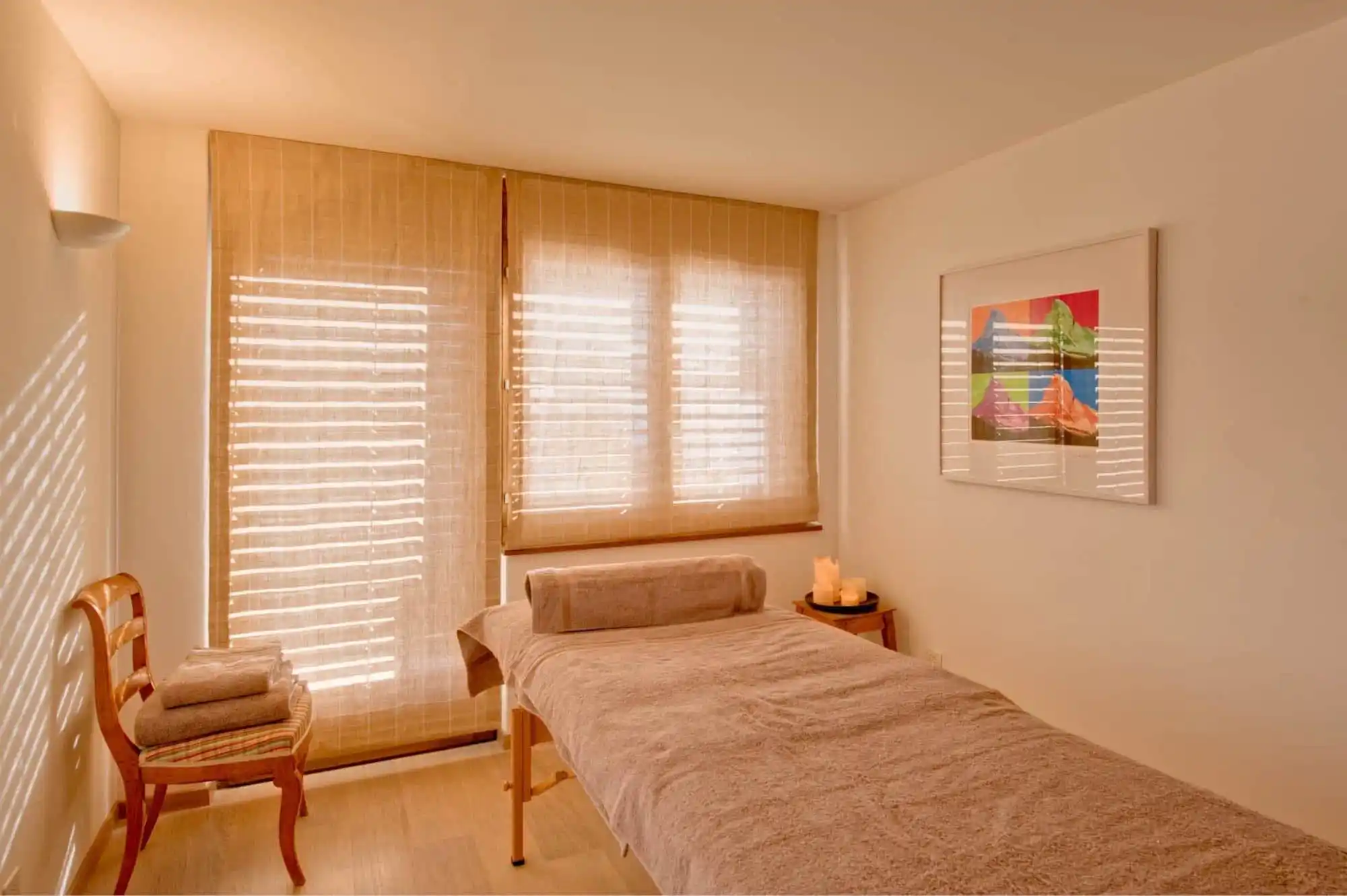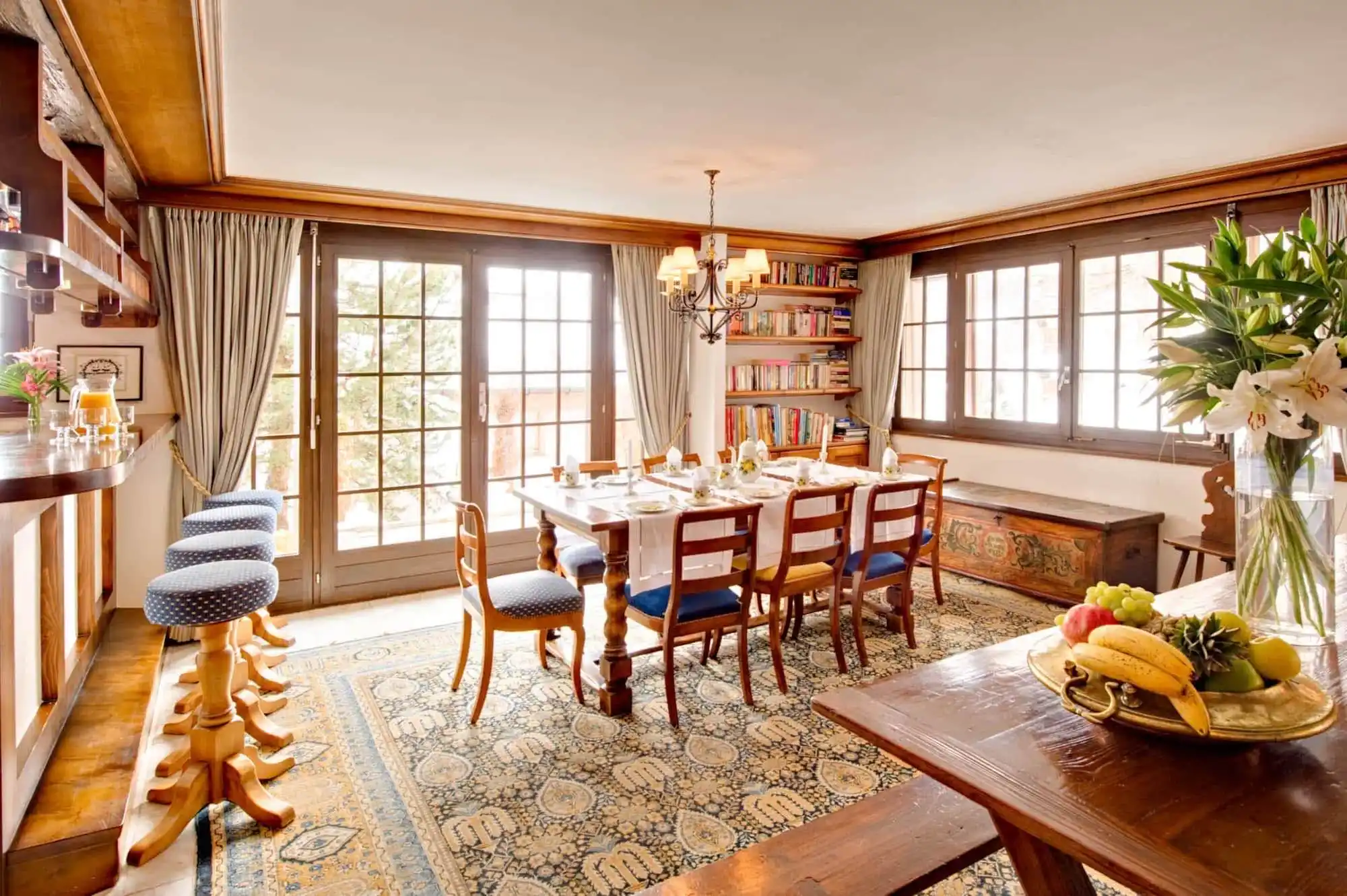Chalet Orchidea exudes a classic Swiss chalet charm, complete with essential post-ski amenities such as an impressive outdoor terrace, recently renovated to include a brand new hot tub, an outdoor gondola sauna, and a massage room. Additionally, Wi-Fi, satellite and cable TV channels, Apple TV, and a Sonos music system are available.
