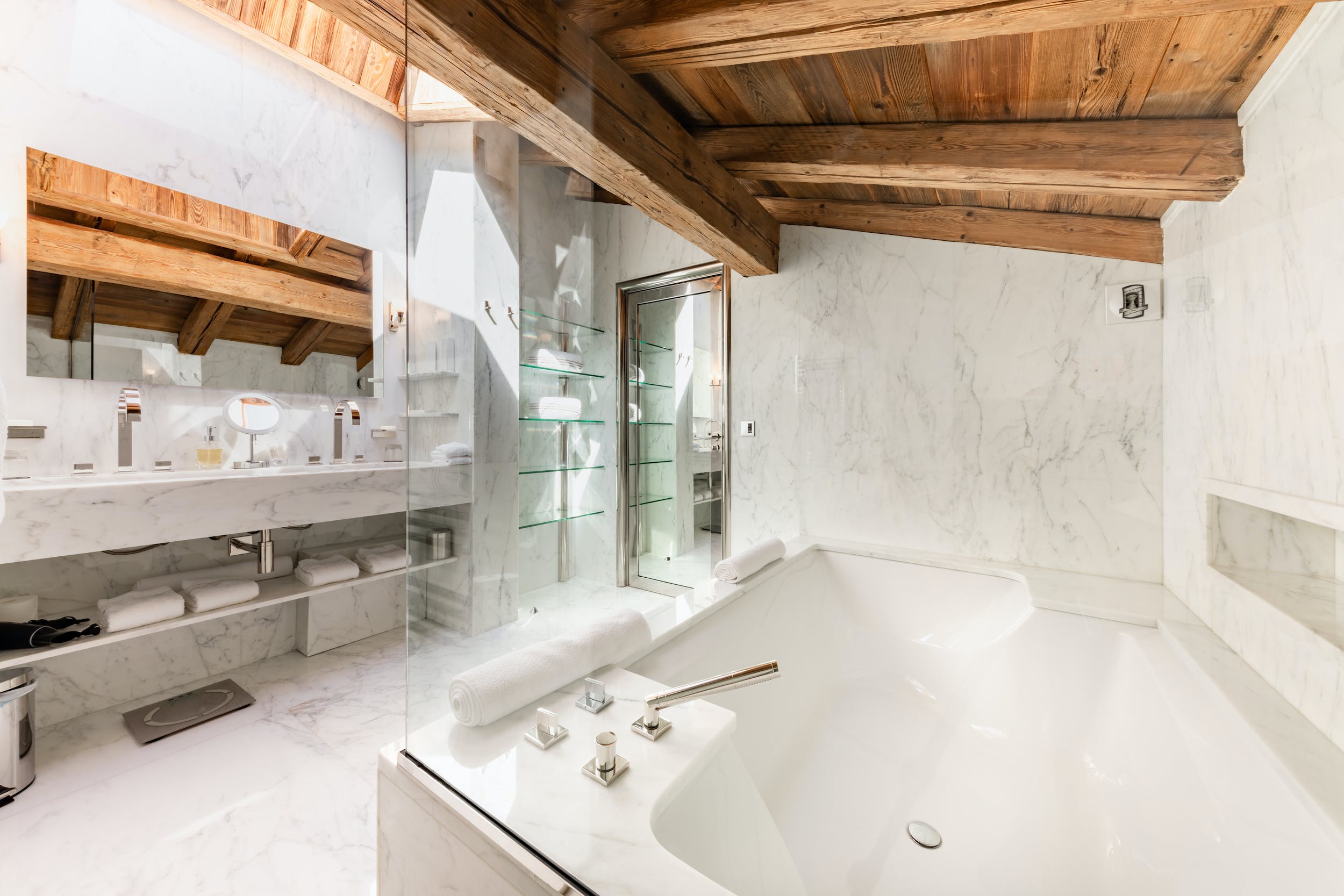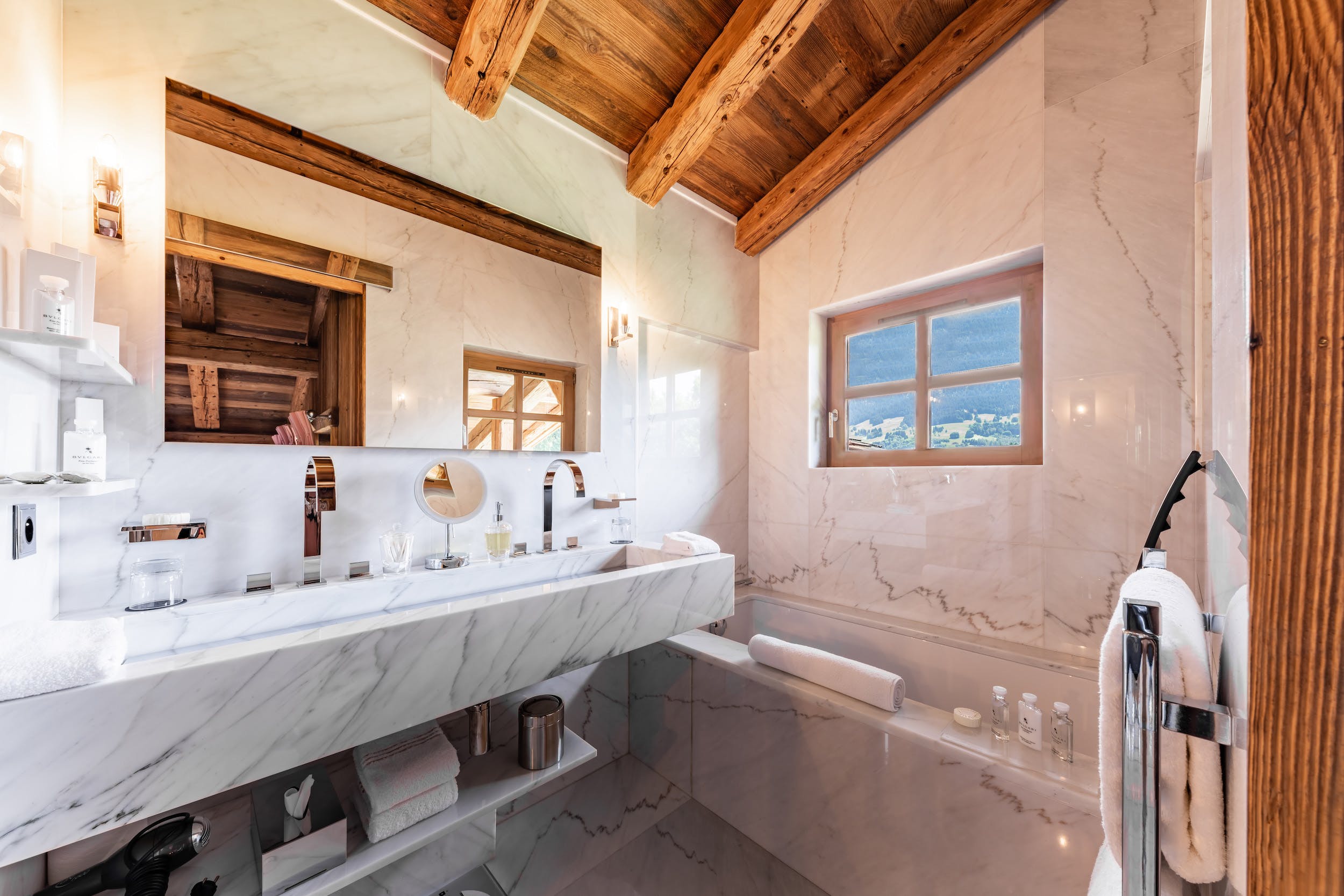 With seven double rooms in all ‘ five in the main house, two in the spa building ‘ plus a children’s bunk room, the Chalet offers flexible accommodation. Each of the bedrooms benefits from serene mountain views and a sanctuary-like marble bathroom.