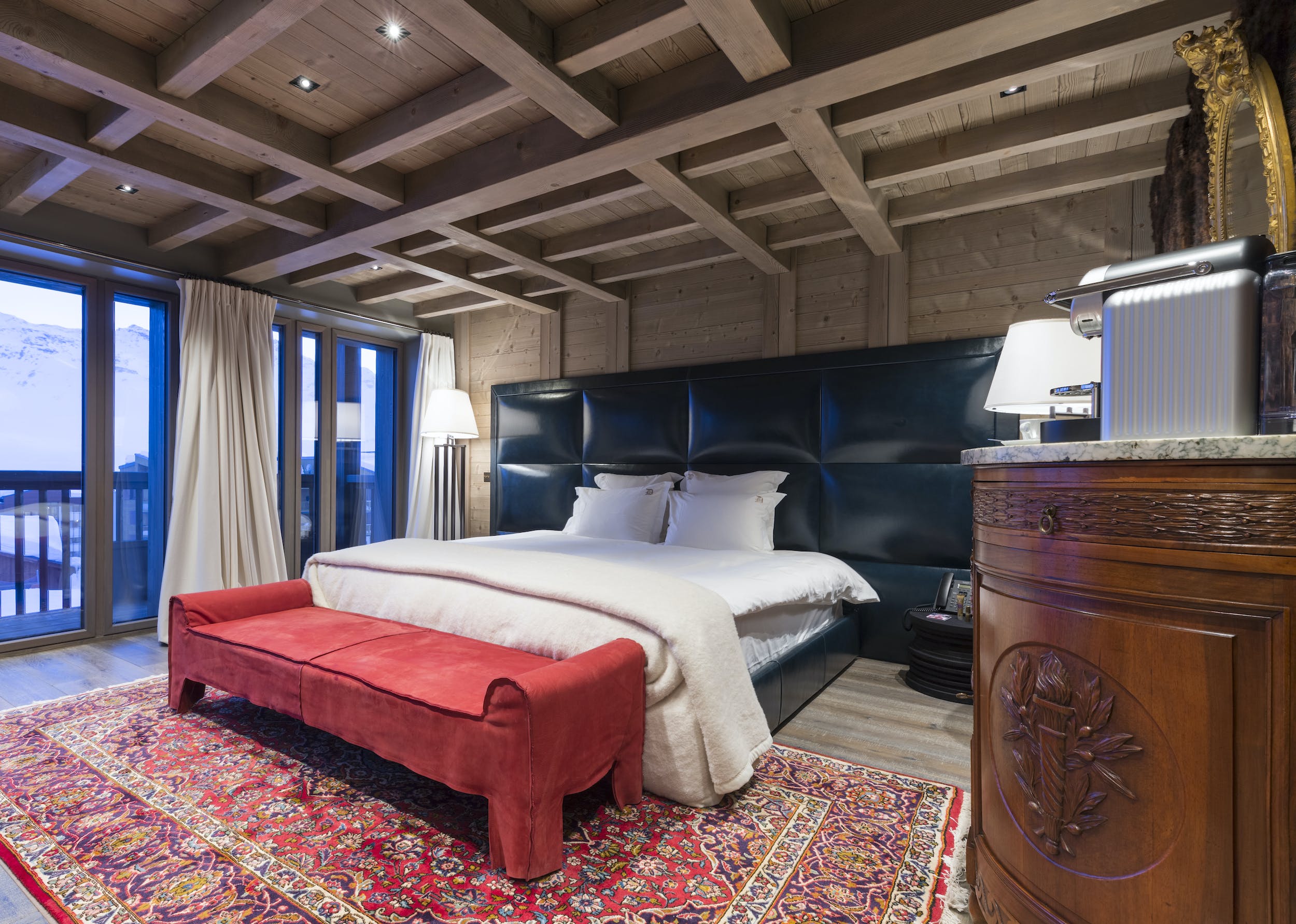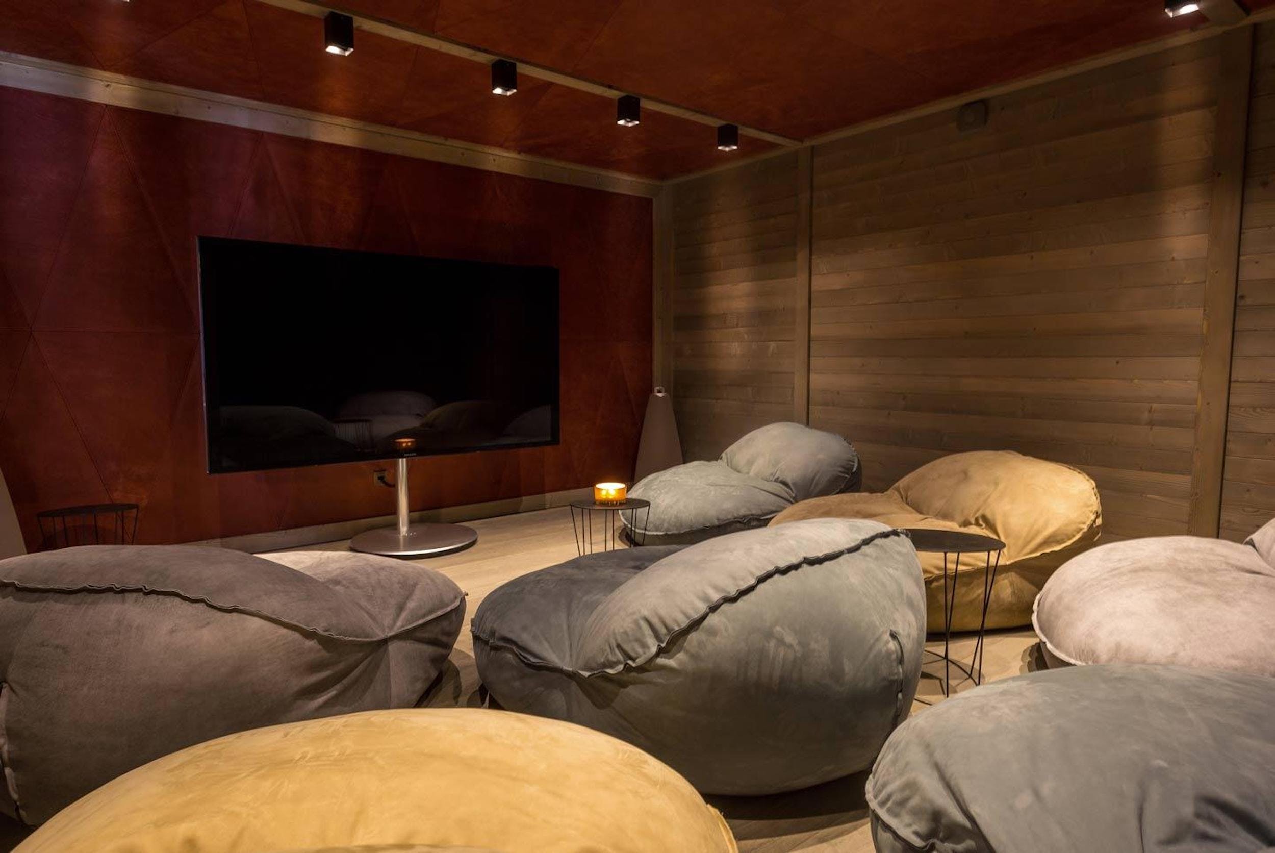 If you don’t fancy heading out to enjoy Val Thoren’s famous après-ski scene, there’s plenty to keep you entertained inside. Take a race around the track in the Formula One simulator, challenge your friends to a game of simulated golf or pull up a beanbag and enjoy a movie in the cinema room. Then all you need do is retire to the romantic bedrooms with timbered ceilings, private balconies and spa-like bathrooms. Heaven!