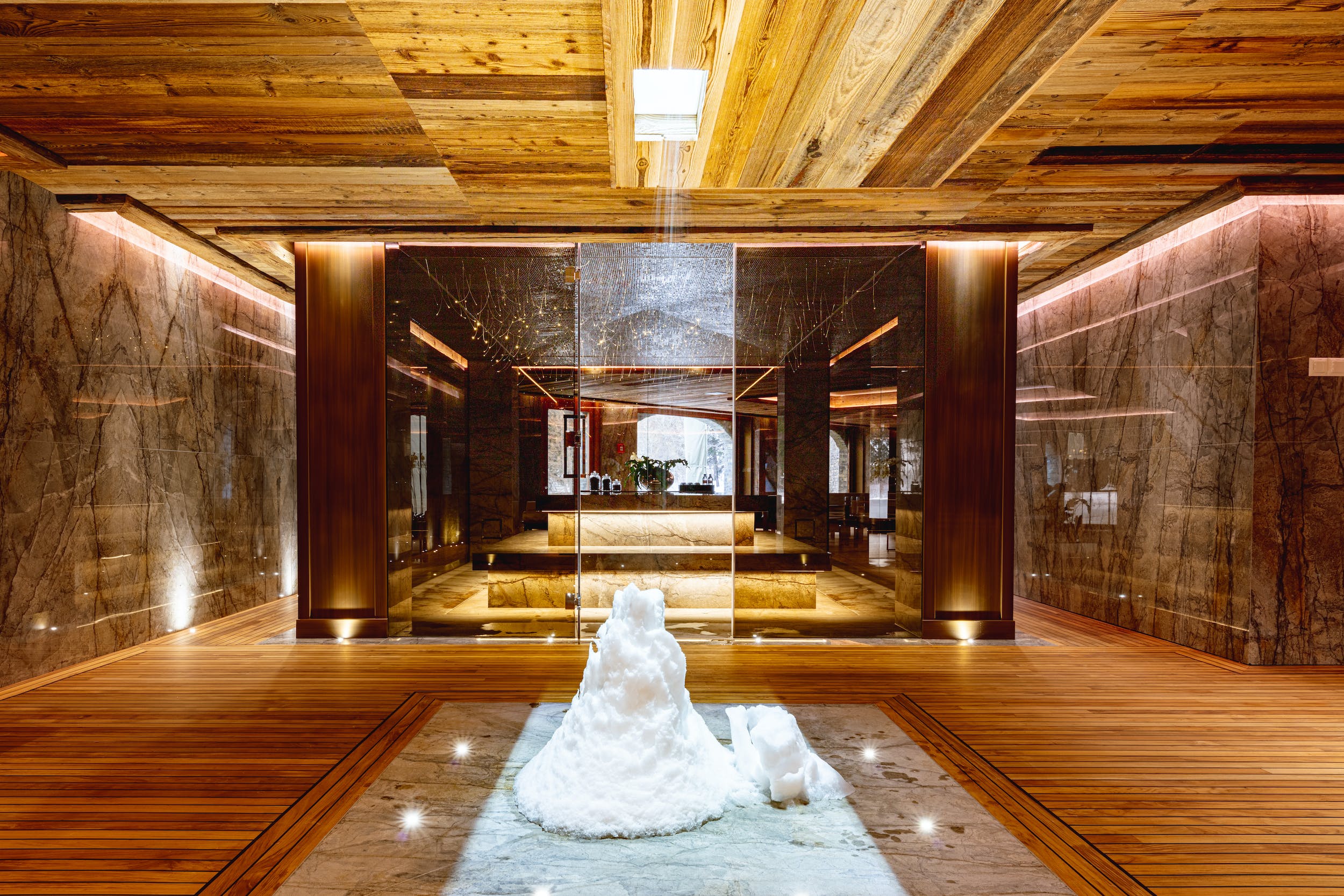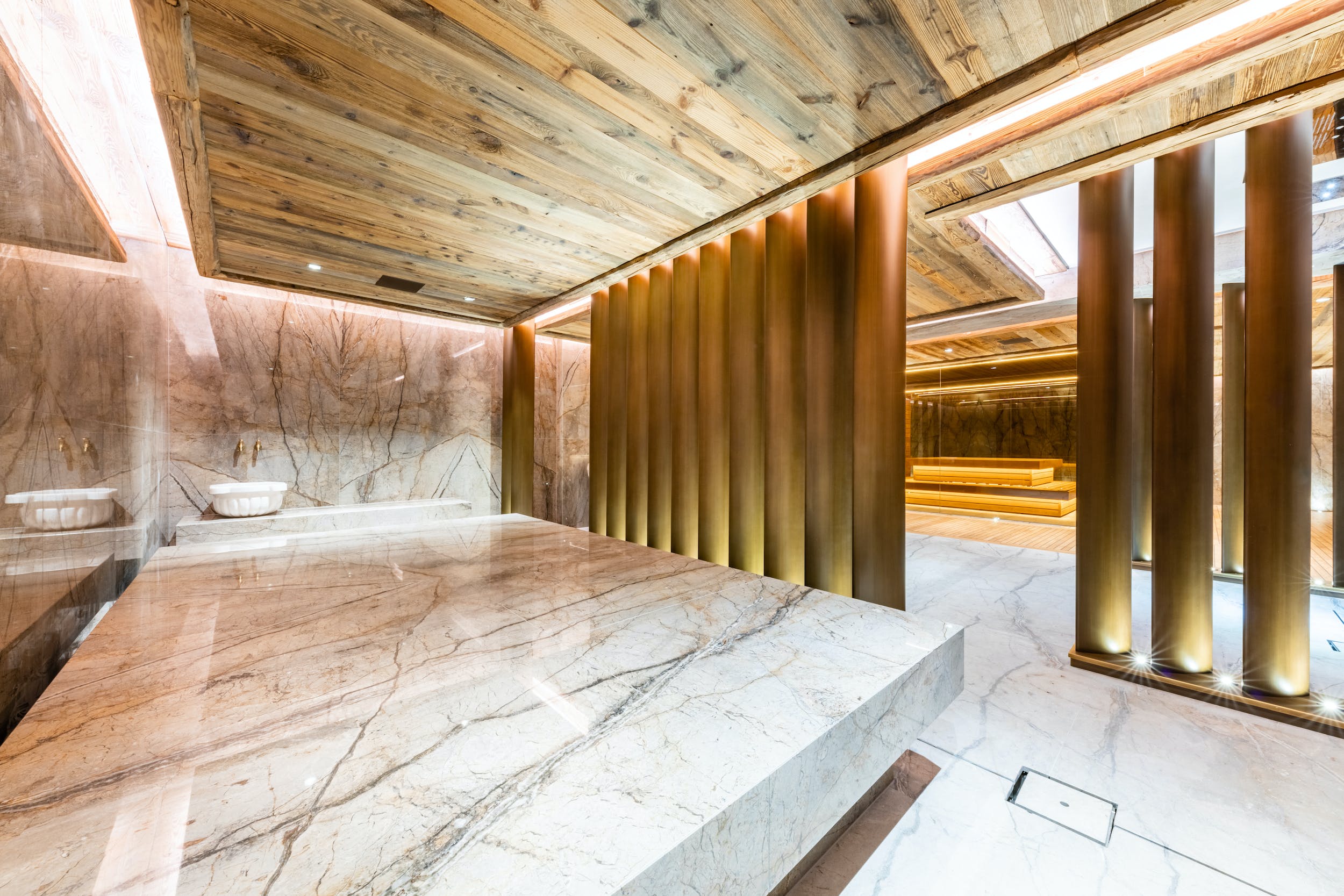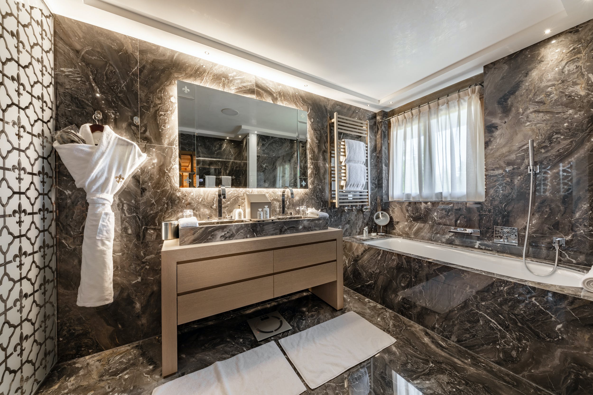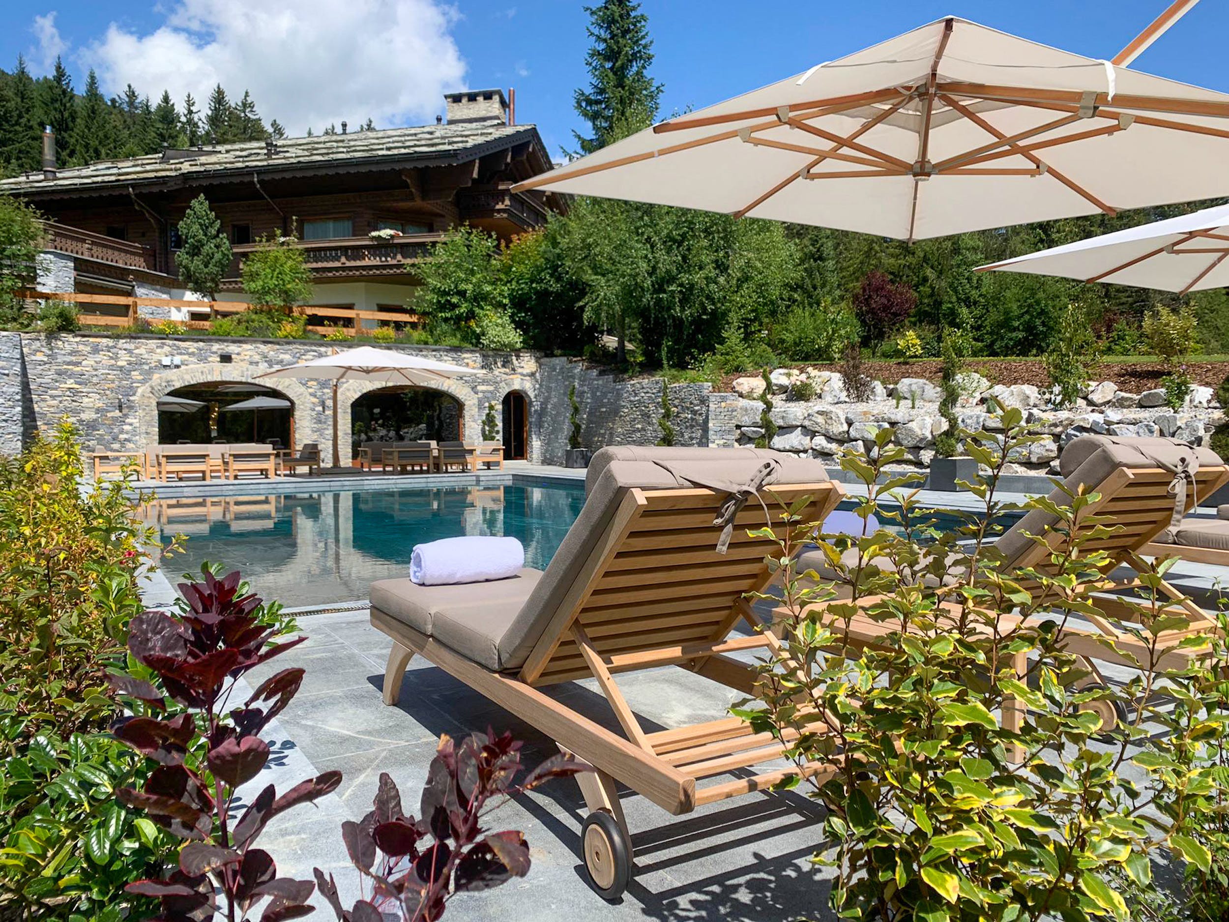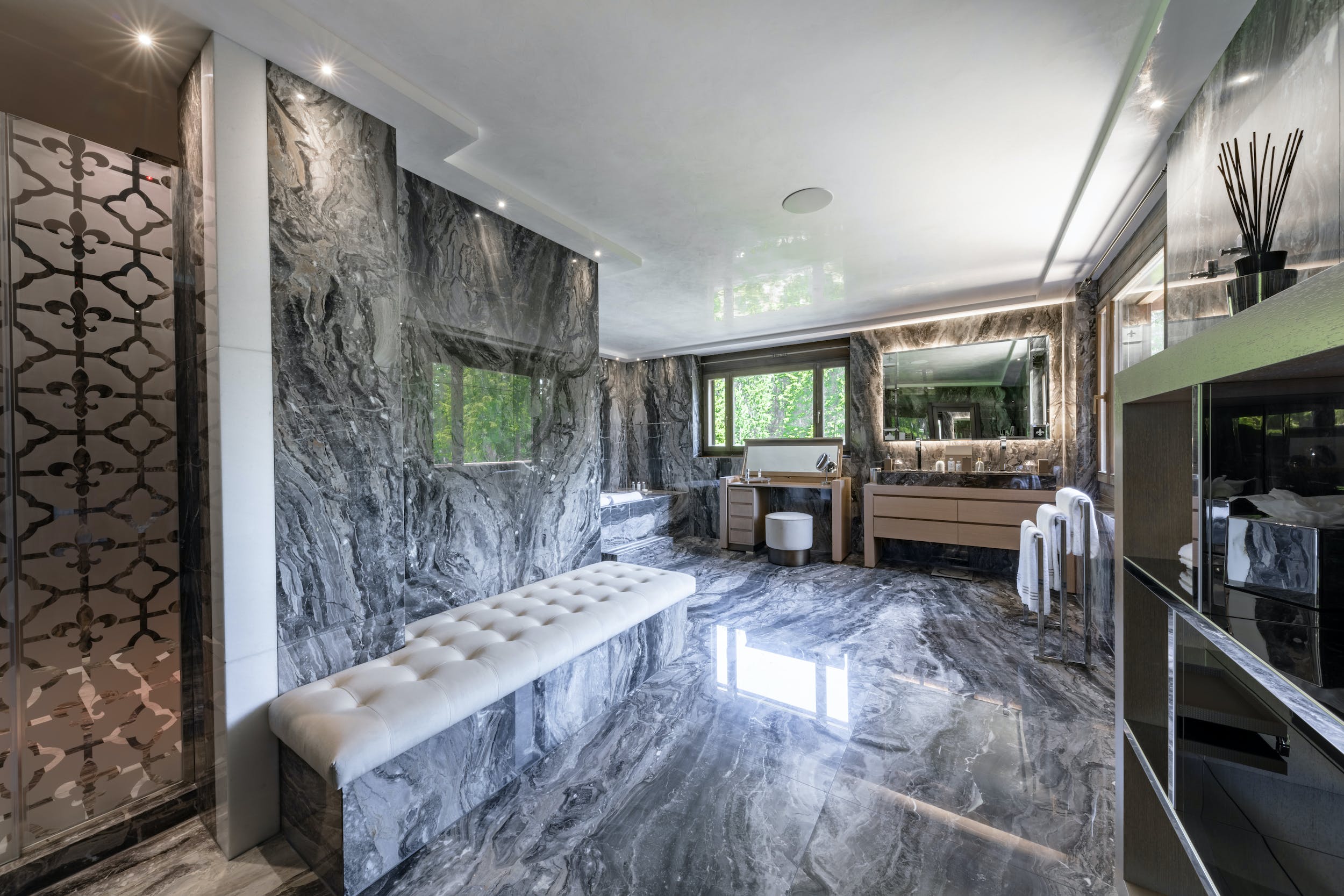 The highlight of the property is the impressive spa complex, dominated by the beautiful heated outdoor pool. Shared with the neighbouring Chalet Valais II (sleeps up to sixteen), it offers a superb way to relax after a day out on the slopes. This 1,000m spa space is a heavenly haven of Bahia Blanca marble, glossy teak and Baccarat crystal chandeliers. Head outside to the bubbling Jacuzzi and idyllic swimming pool. Inside, you can soothe those tired muscles in the sauna. Or continue your work out in the fitness room or yoga studio. This shared space also boasts a bar area, cinema room and a billiard room for further apr?s ski options.