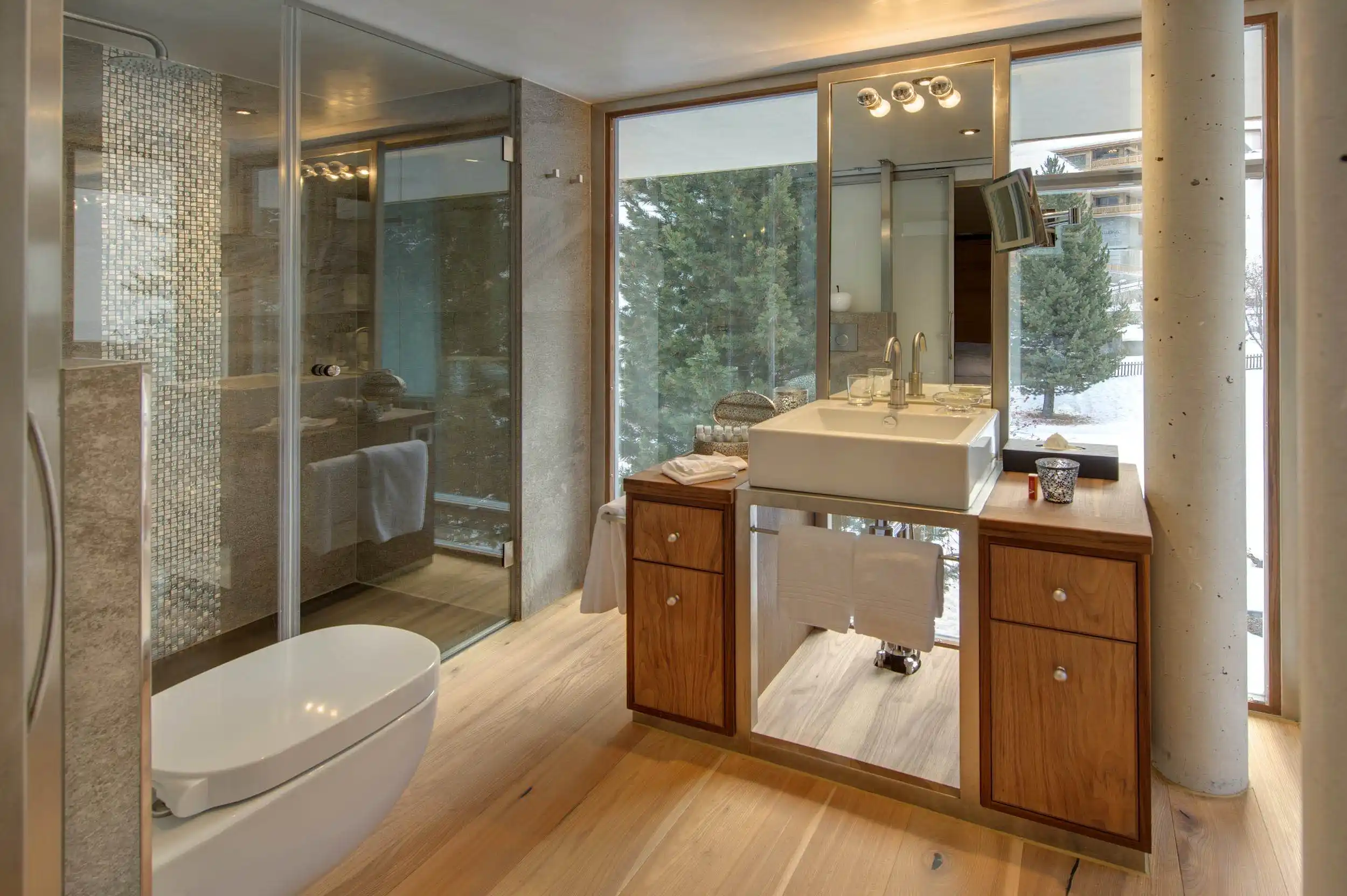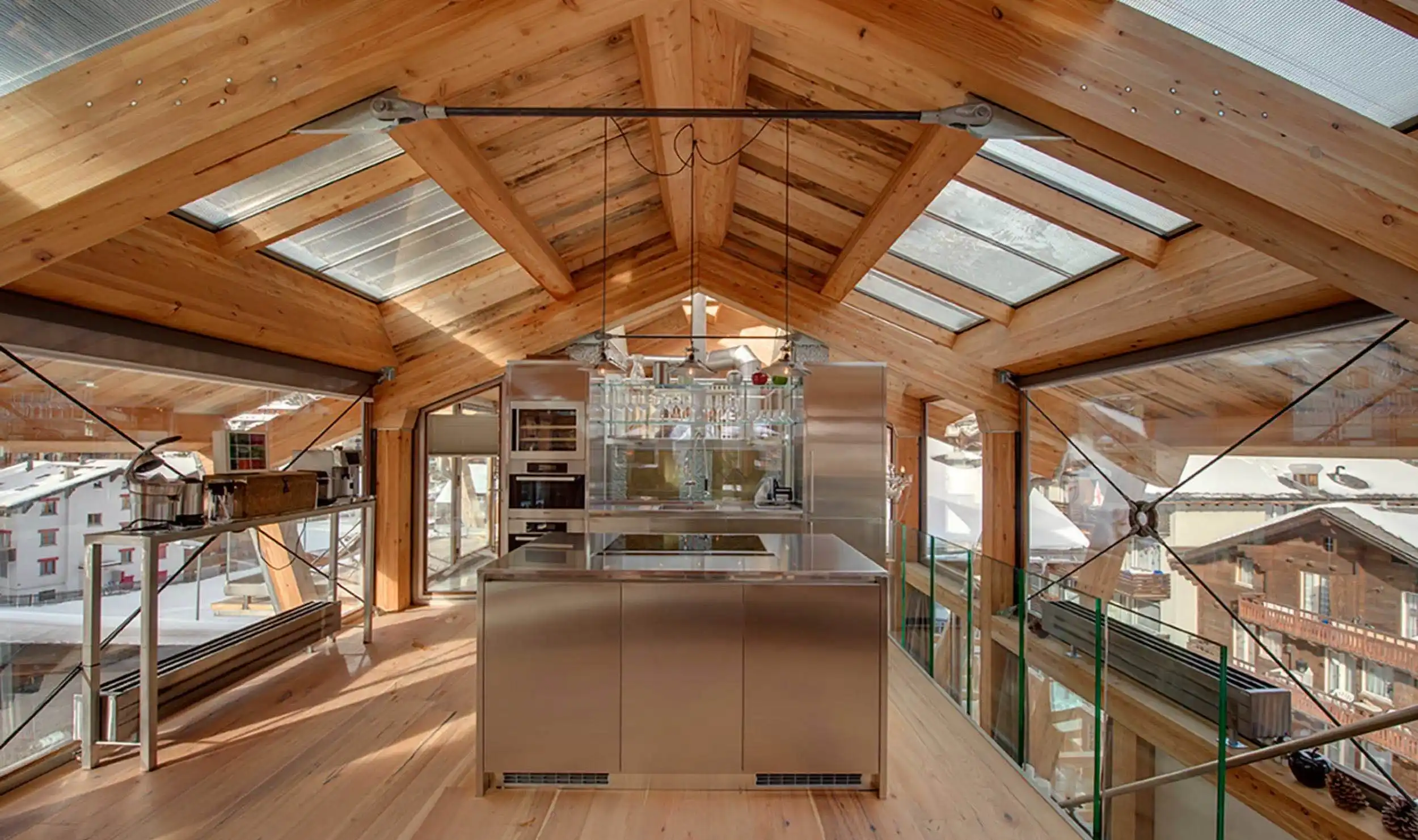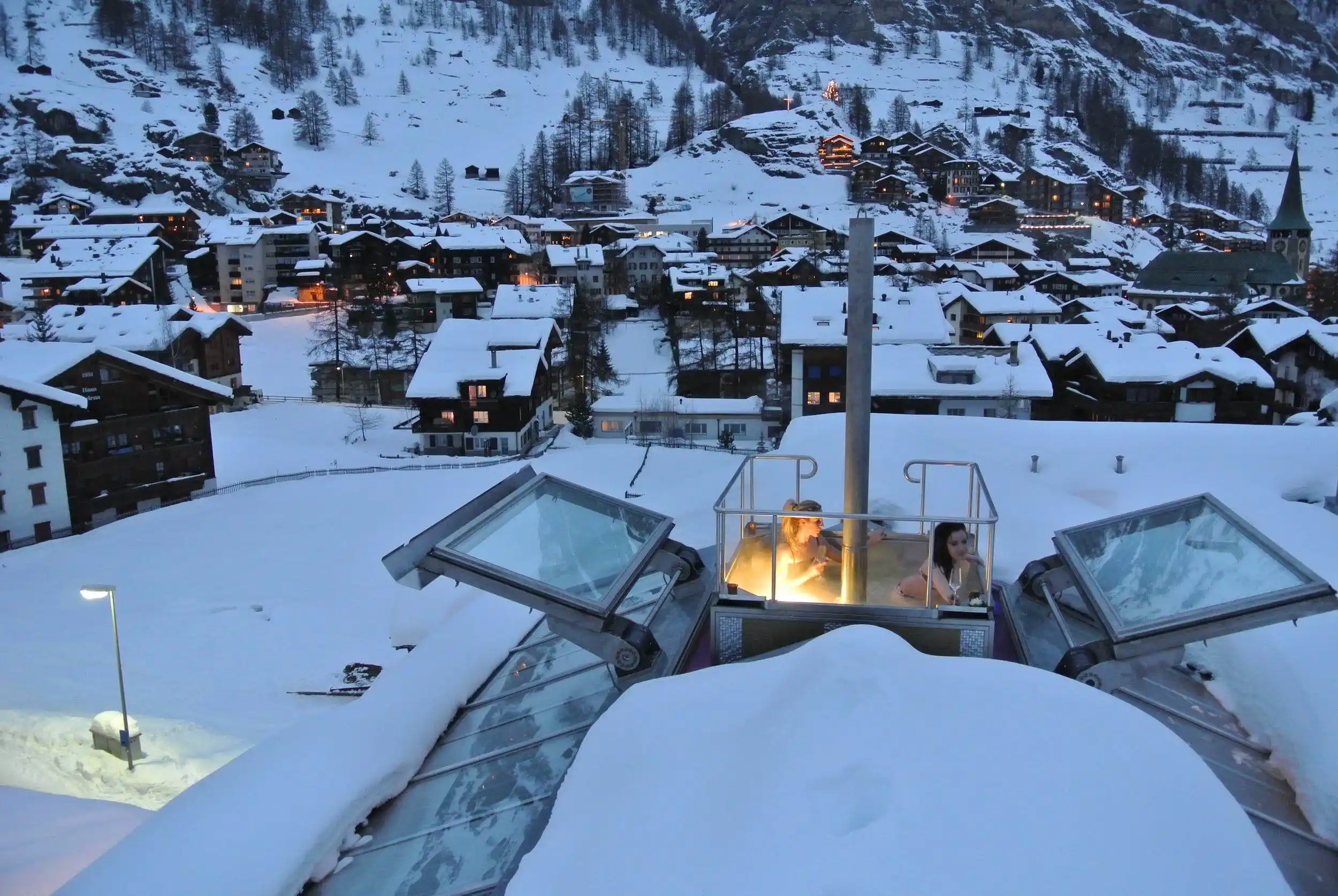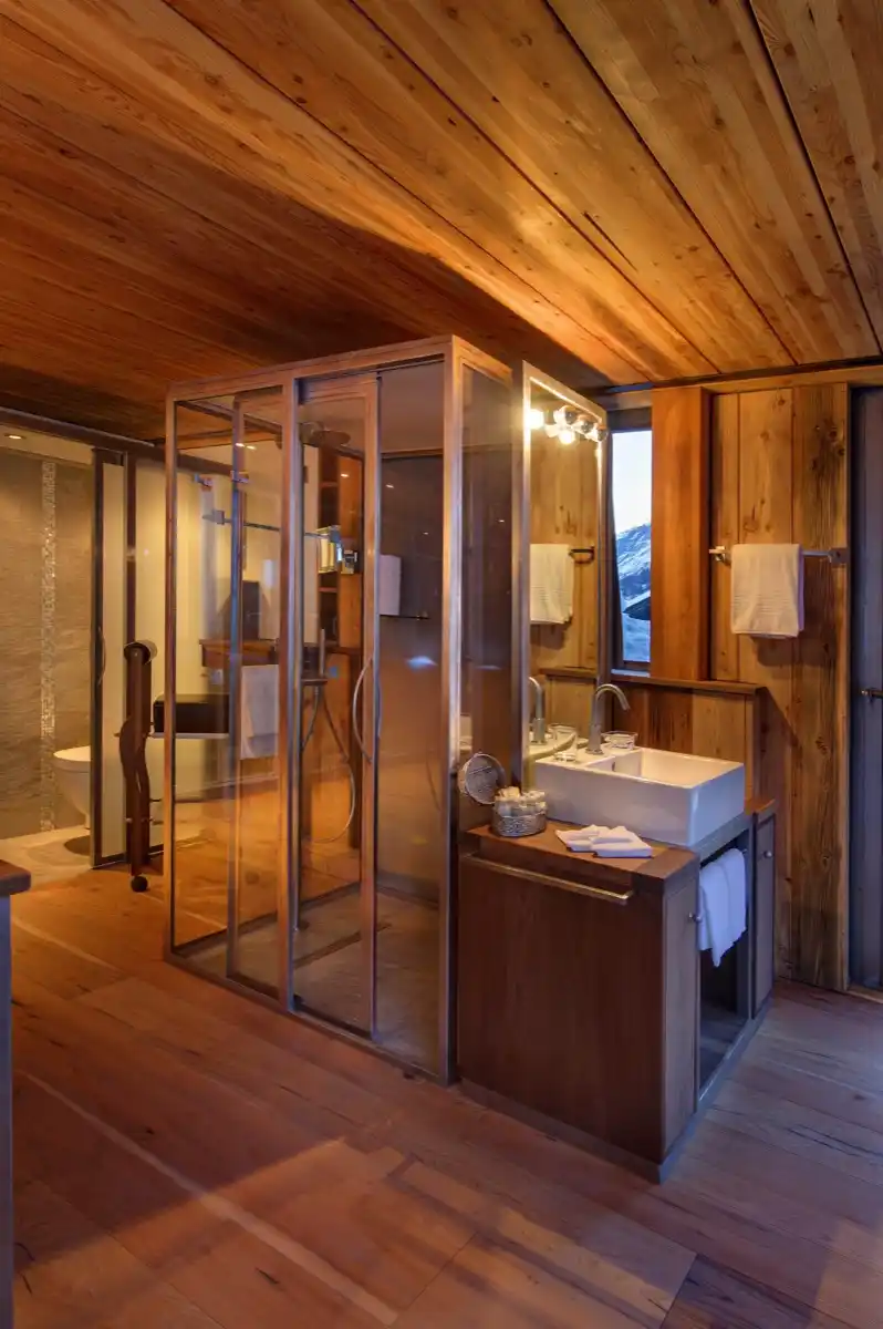 However, the pi?ce de r?sistance of this exceptional chalet is undoubtedly the awe-inspiring rooftop jacuzzi. This luxurious amenity promises an unparalleled pool experience, allowing guests to unwind while marvelling at the breathtaking surroundings. This ingeniously crafted engineering marvel stands out as a likely one-of-a-kind creation on a global scale. With a capacity for up to six occupants, this pool offers a remarkable feature: at the mere touch of a button, the roof gracefully unfurls, and the pool is effortlessly raised hydraulically above the building’s roof. The vista from this elevated position atop the chalet is genuinely awe-inspiring, ensuring an experience in Zermatt unlike any other.