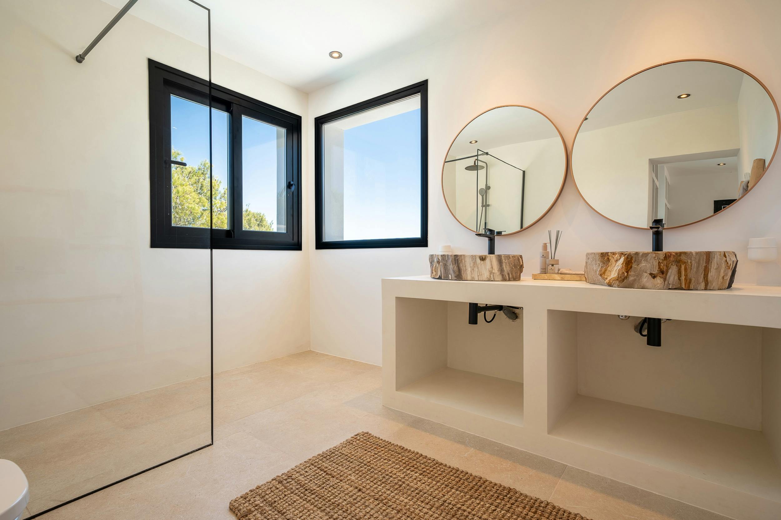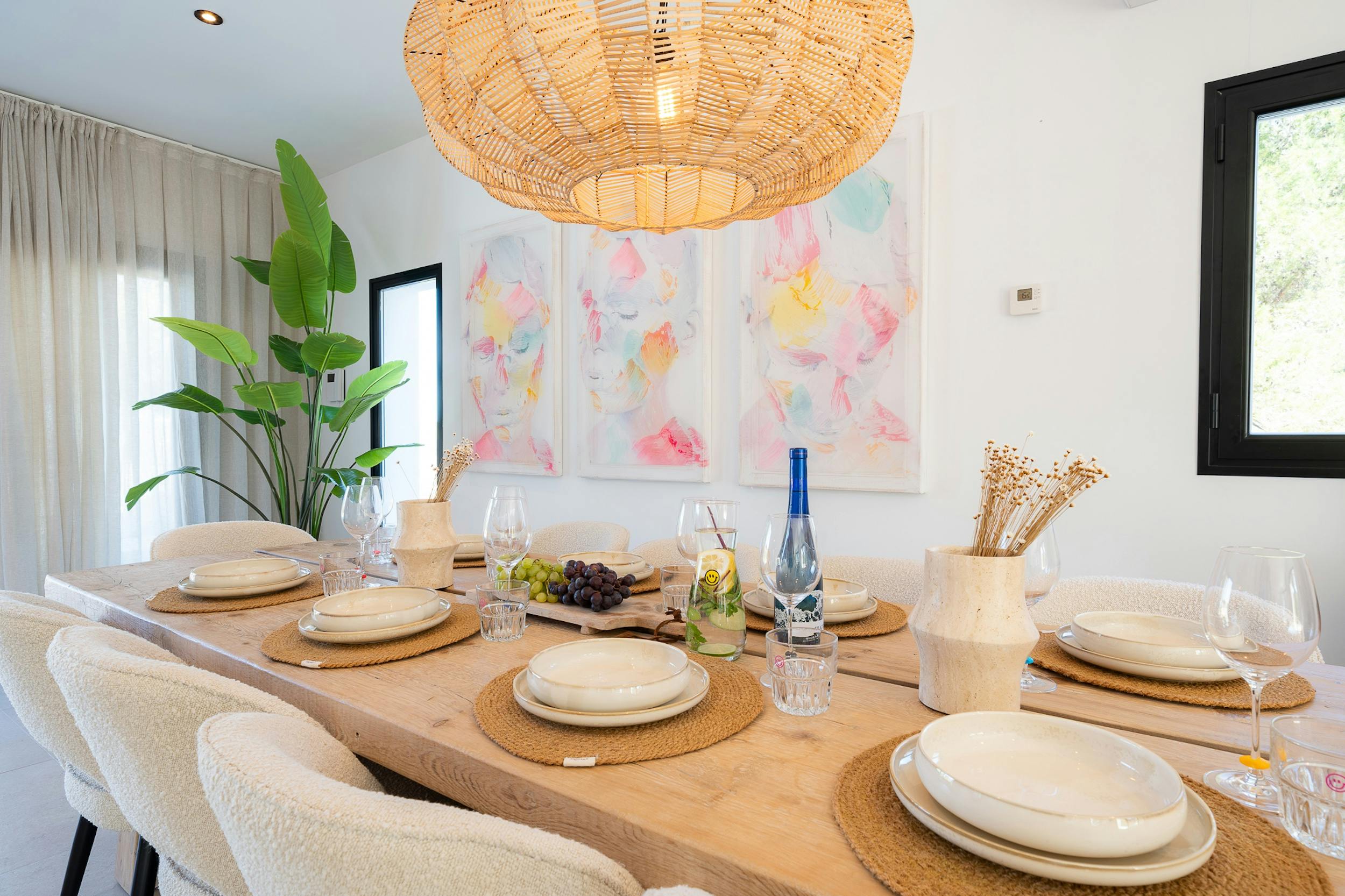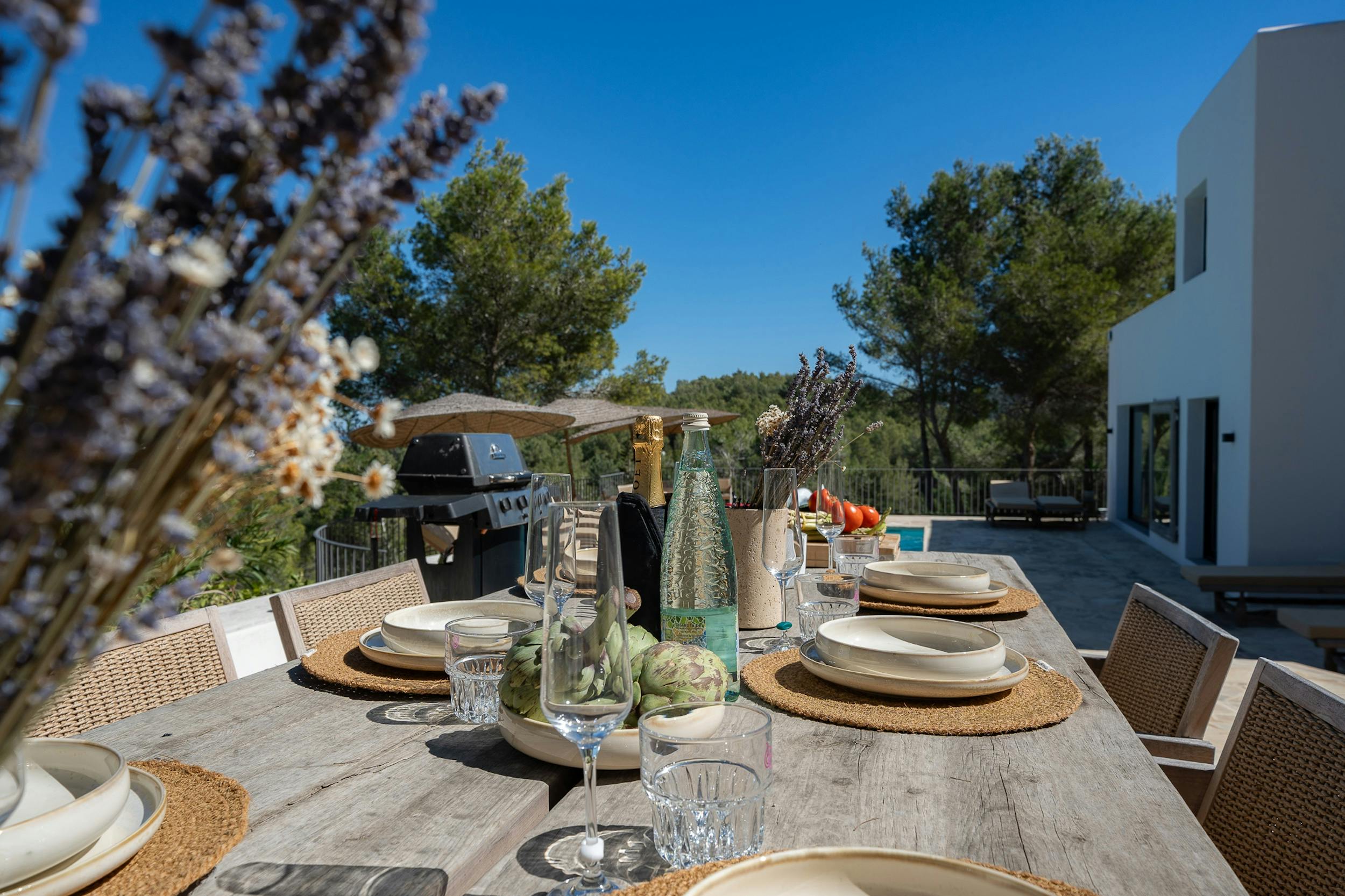 Ibiza Town lies a mere 15-minute drive away, with the airport reachable in 20 minutes. Nearby coastal gems such as Santa Eularia, Cala Llonga, and Talamanca beckon, offering sandy shores and azure waters to explore. The eastern coast unveils picturesque coves, with Aguas Blancas standing out as a must-visit locale. Santa Eularia exudes a vibrant ambiance along its waterfront promenade, brimming with additional dining and shopping options.