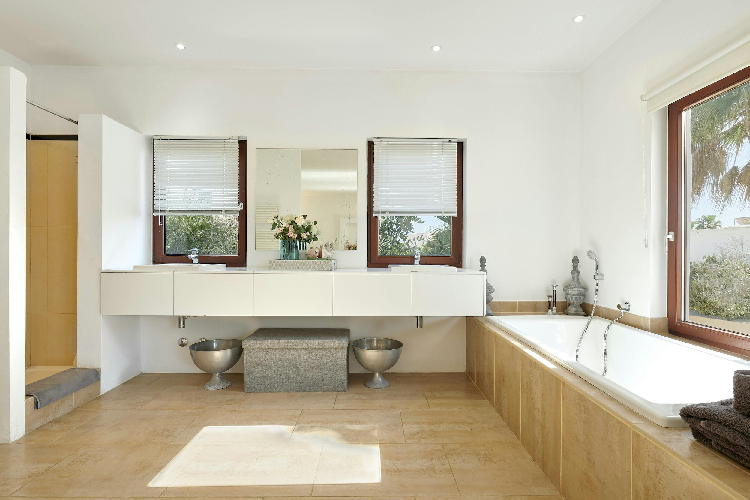A luxury villa in a fantastic location only 450m from the beach and 200m from the centre of Santa Eulalia. The location couldn’t be better, within a quiet residential area and just a few minutes stroll into the centre of Santa Eulalia with its restaurants, shops and of course the beach!