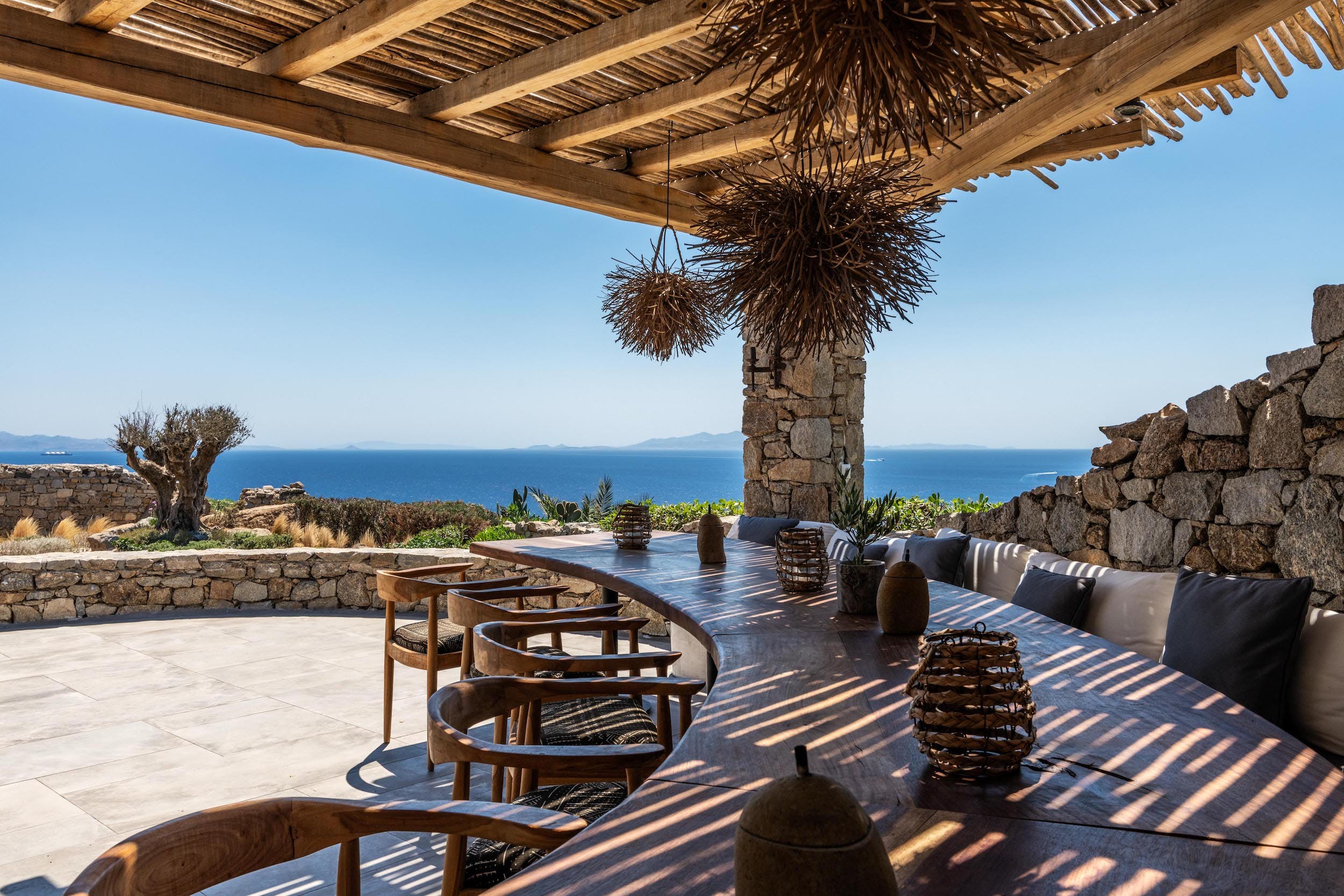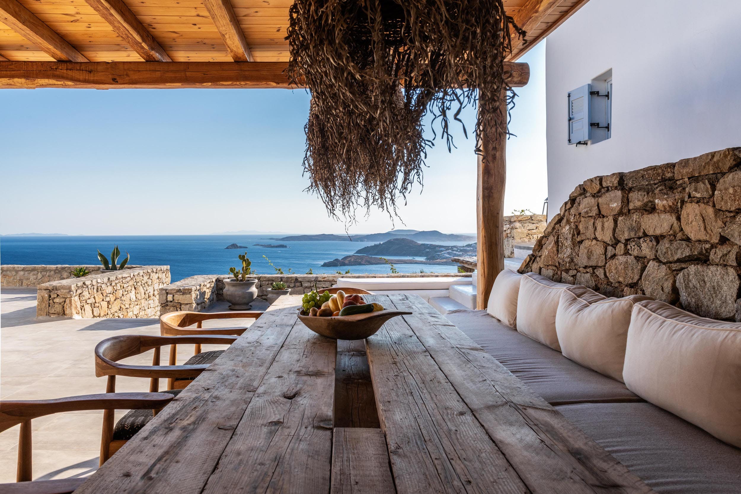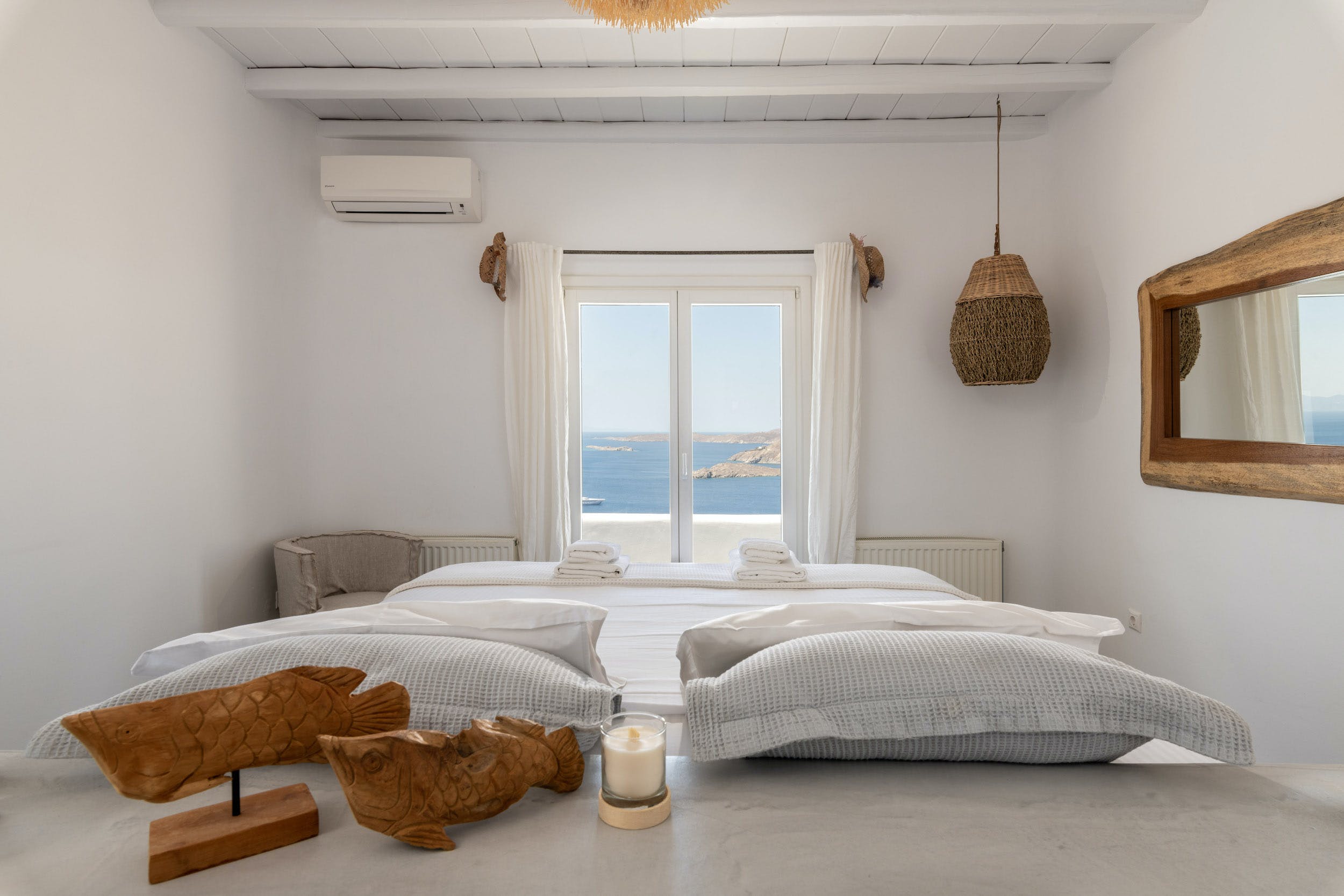 From every angle of the villa, you have spectacular views over the Aegean Sea and depending on the weather you can see Siros, Serifos, Sifnos, Paros, Naxos and of course Delos and Rinia.