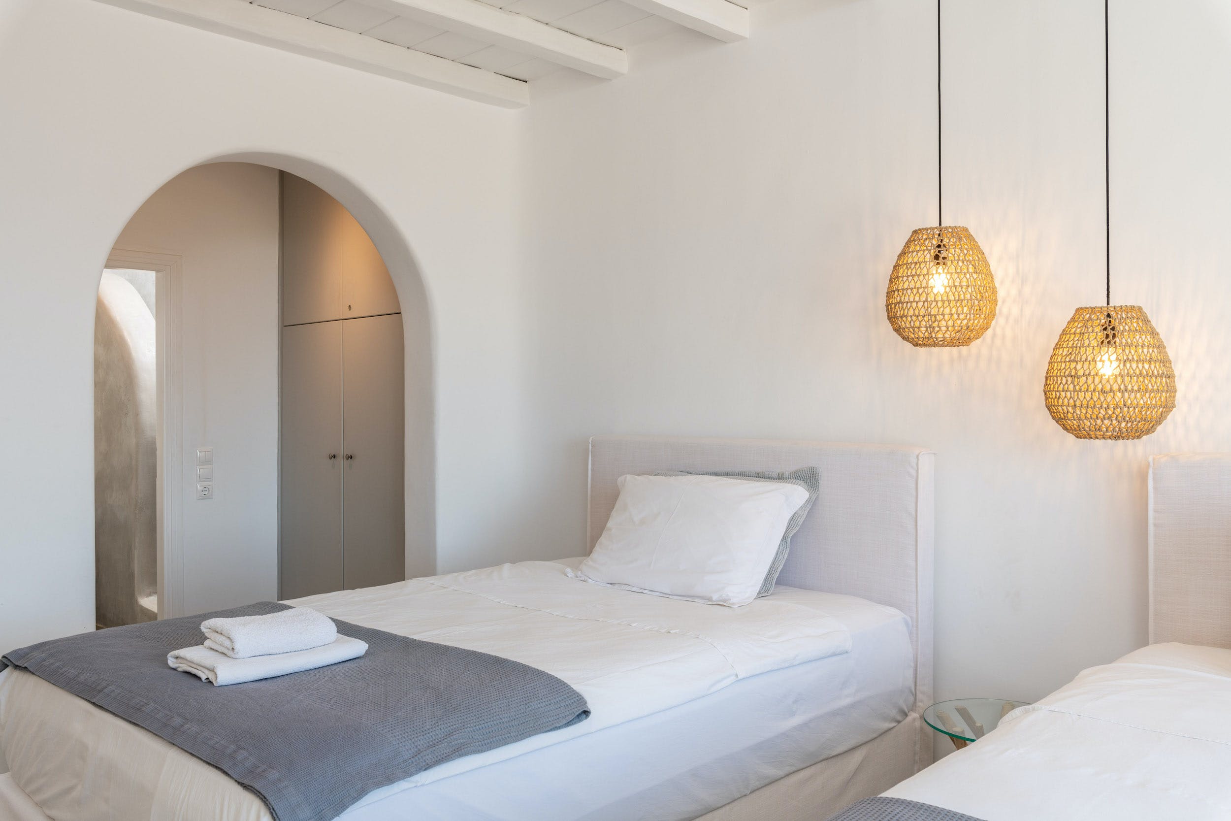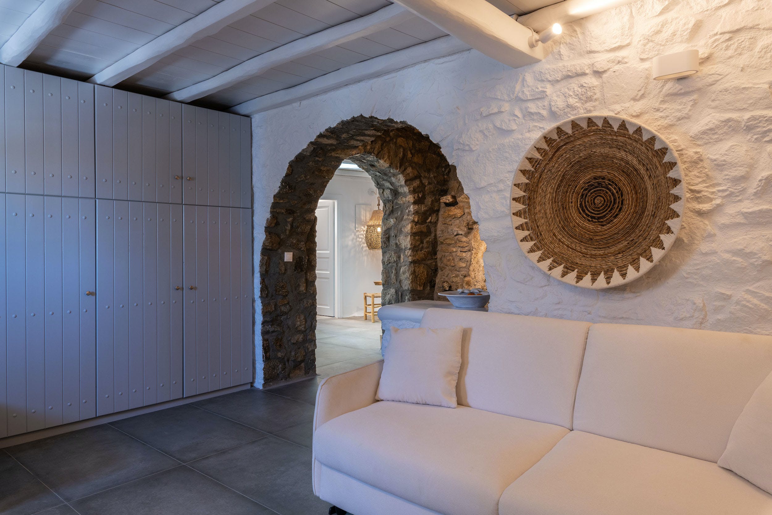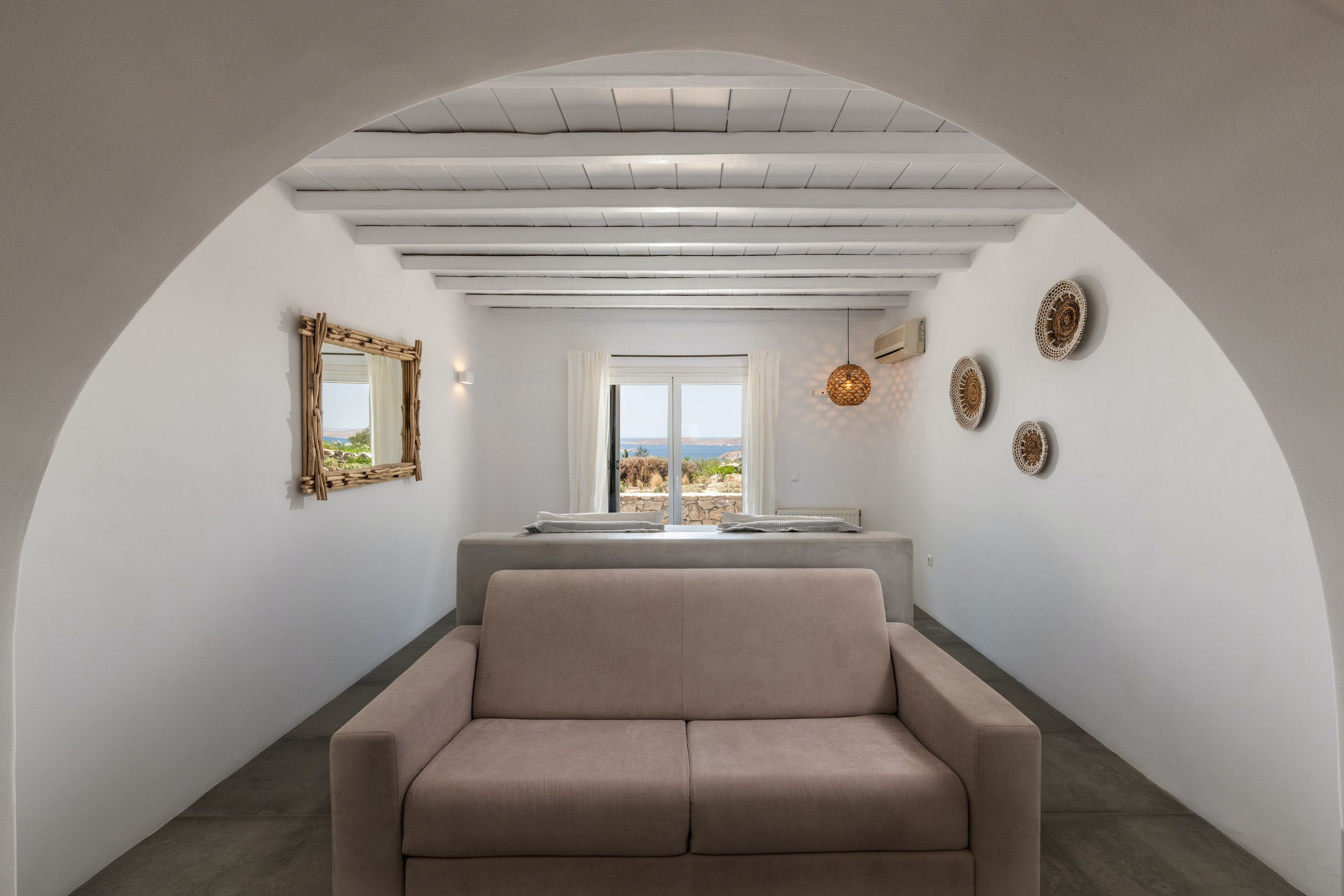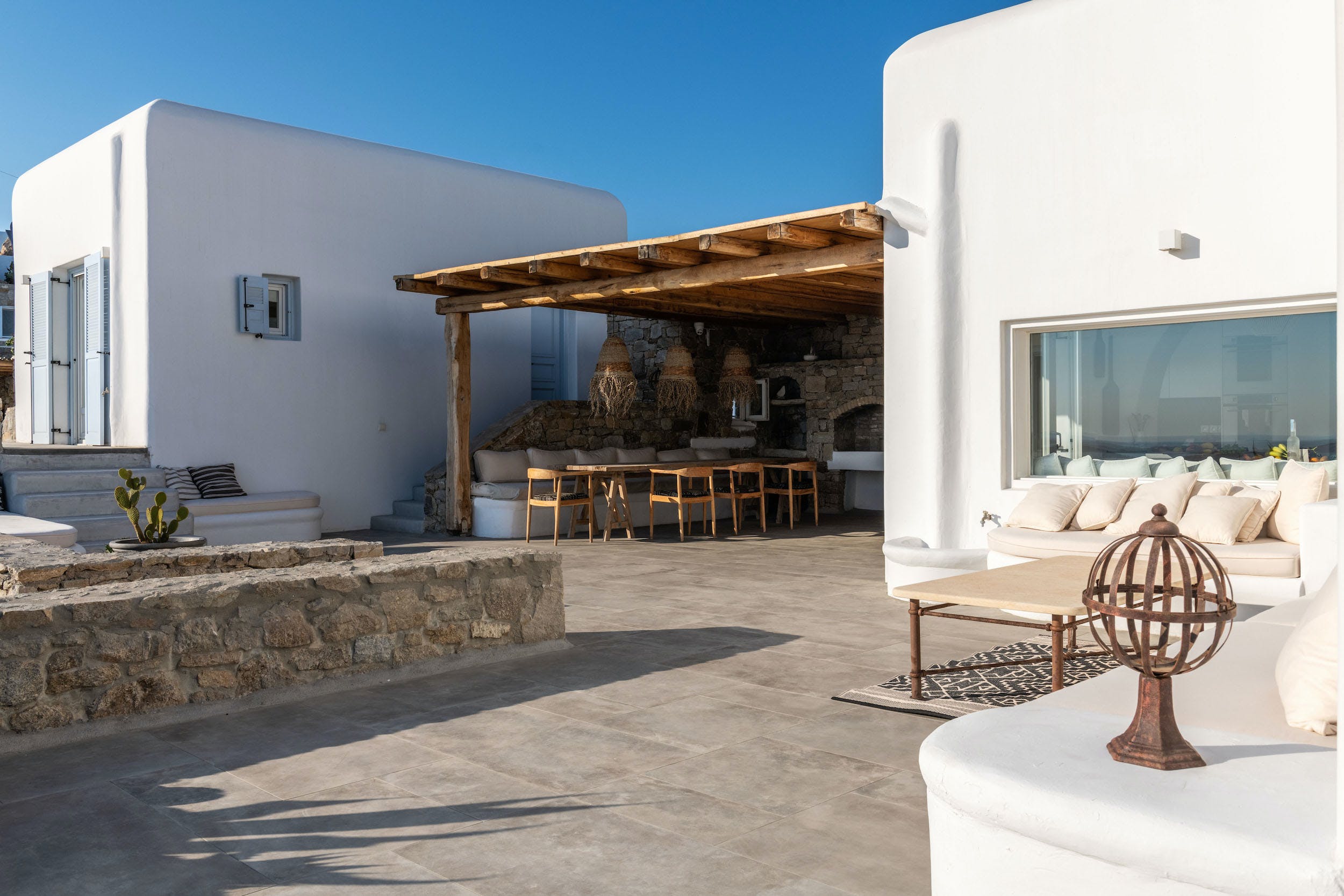 From every angle of the villa, you have spectacular views over the Aegean Sea and depending on the weather you can see Siros, Serifos, Sifnos, Paros, Naxos and of course Delos and Rinia.