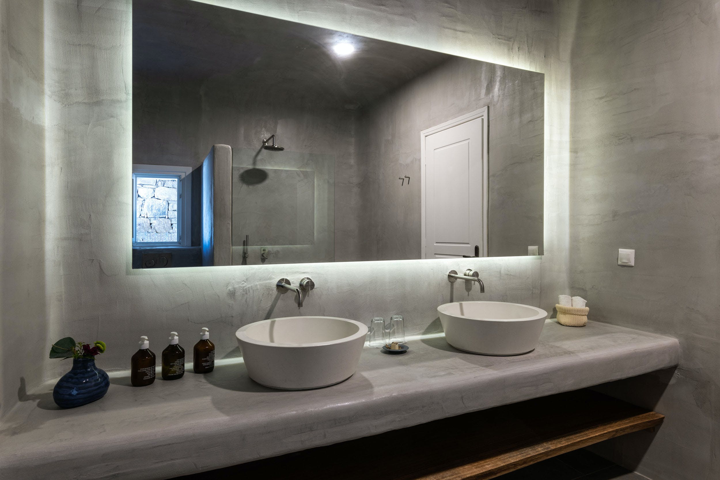 Main House Garden Level – 2 Luxury double beds (140x200cm), air conditioning, large wardrobe featuring a safe box, en-suite bathroom with shower, sea and garden views, direct access to garden. (2-4 guests)