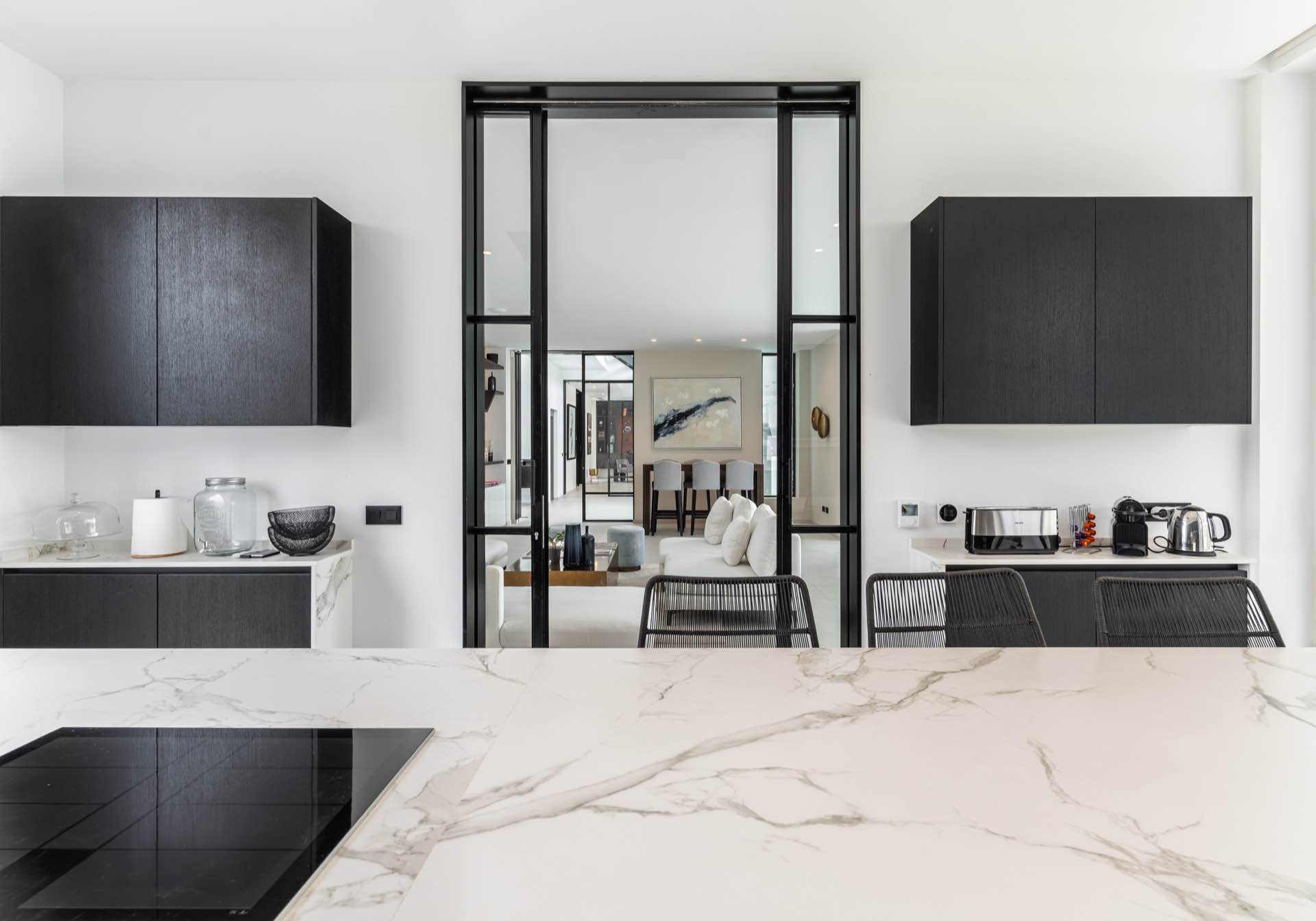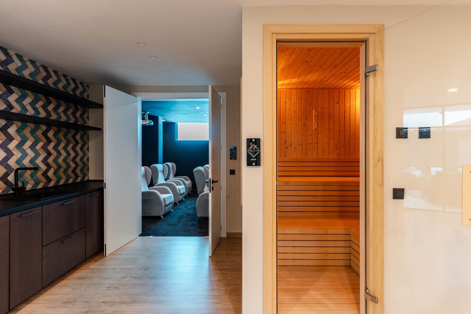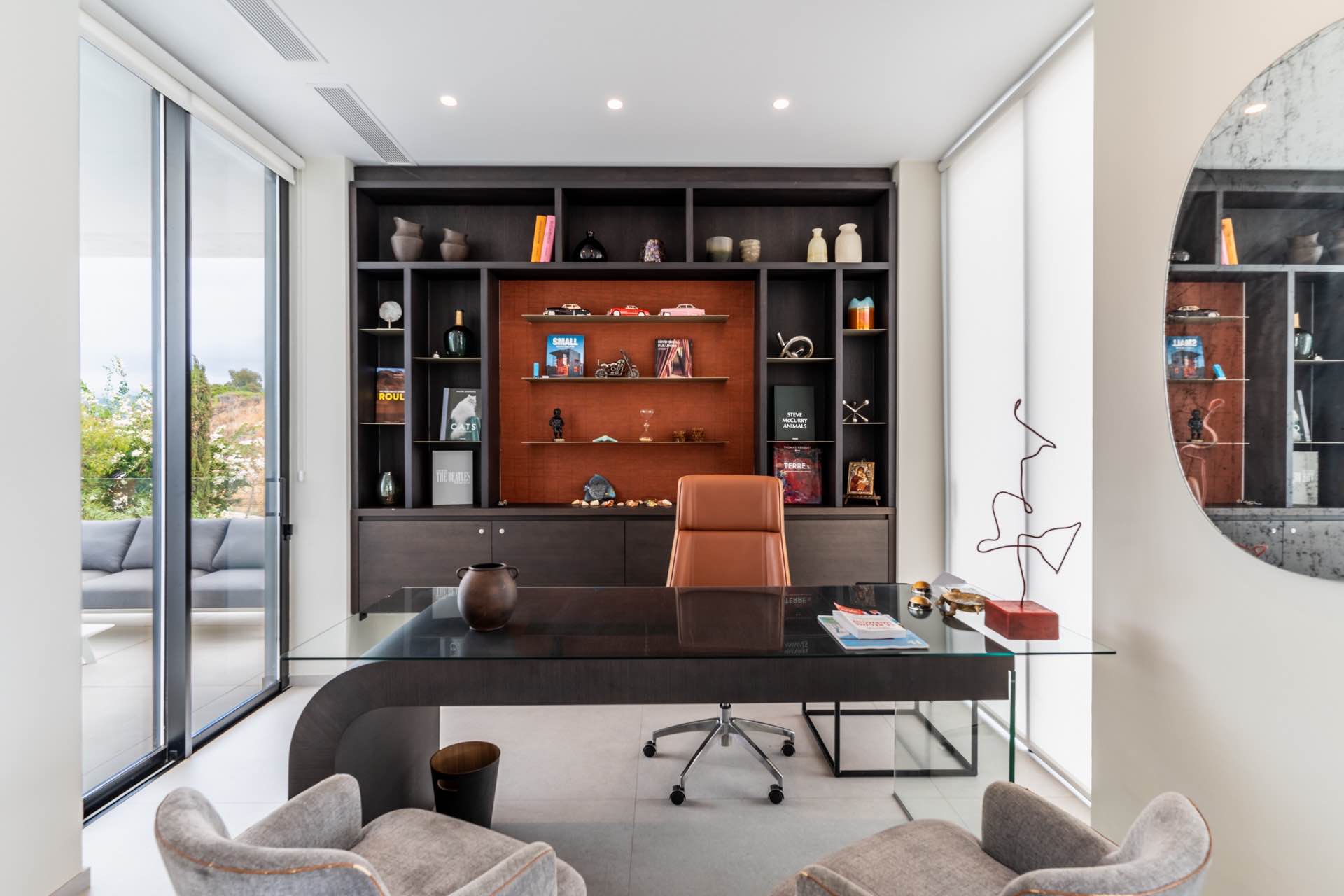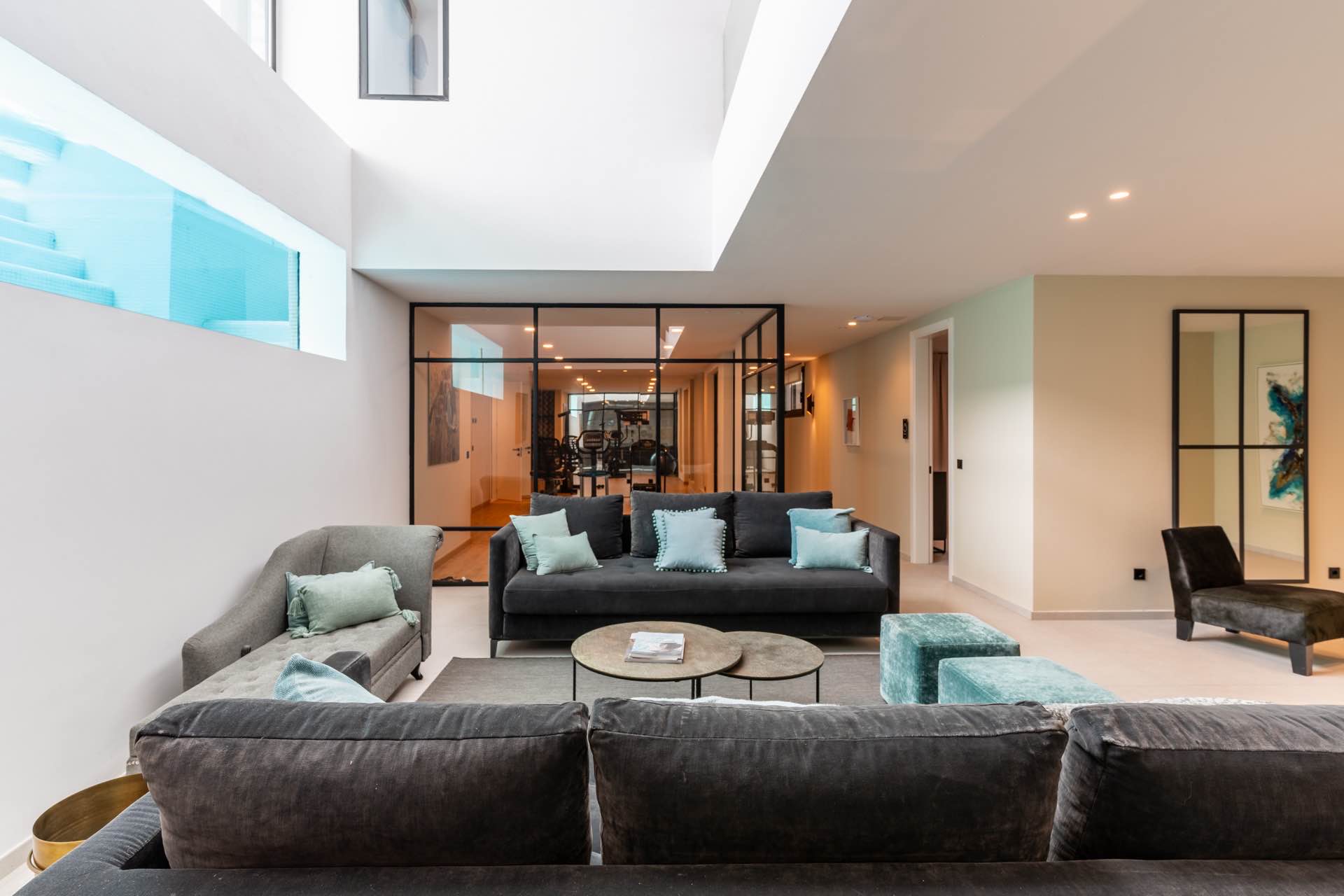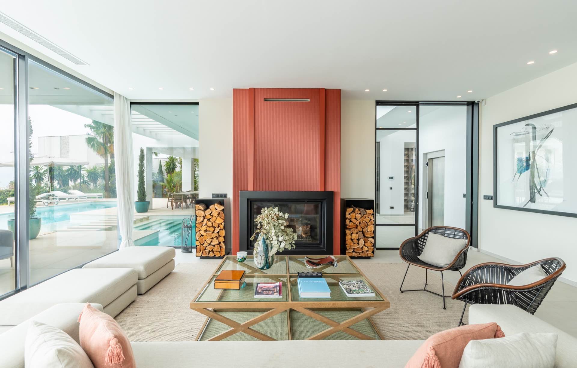 ✔ Grand open-plan ground floor designed for seamless entertaining and relaxation.✔ Formal dining area for 12, with an elevated wine corner for pre-dinner moments.✔ Elegant living room with fireplace and access to the south-facing terrace by the pool.✔ Cozy media lounge with 80″ TV and access to an east-facing terrace bathed in morning light.✔ Dedicated work area for reading or remote work in peace.