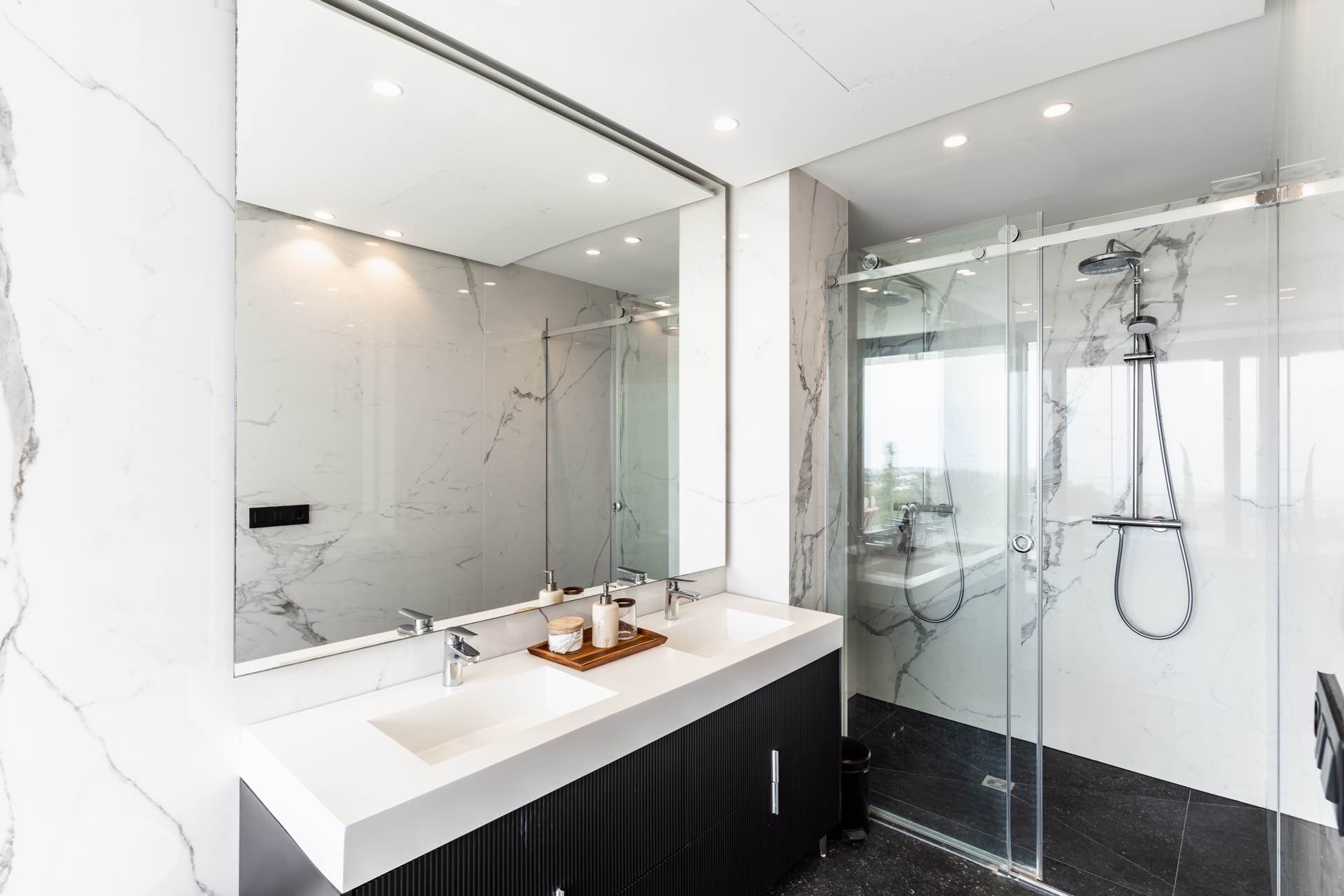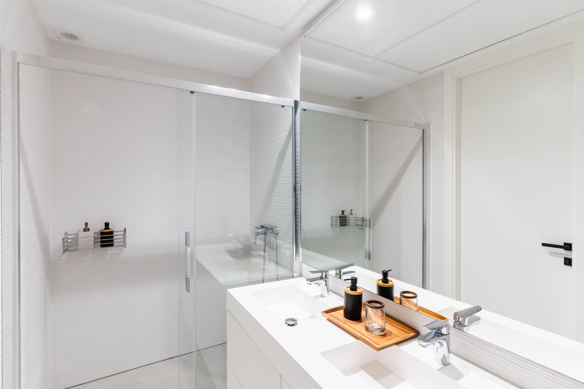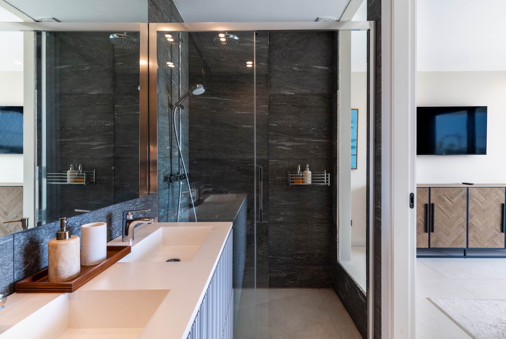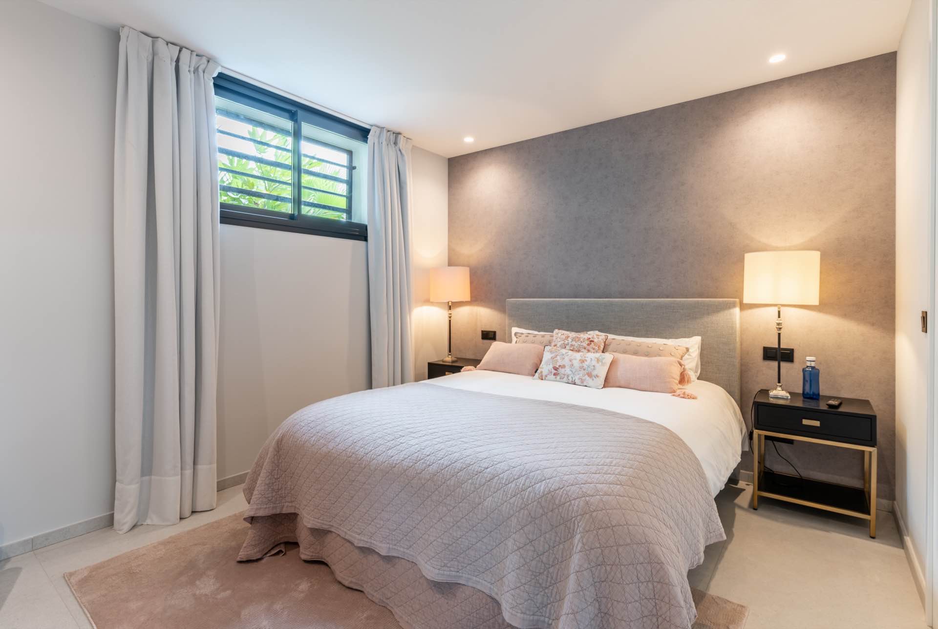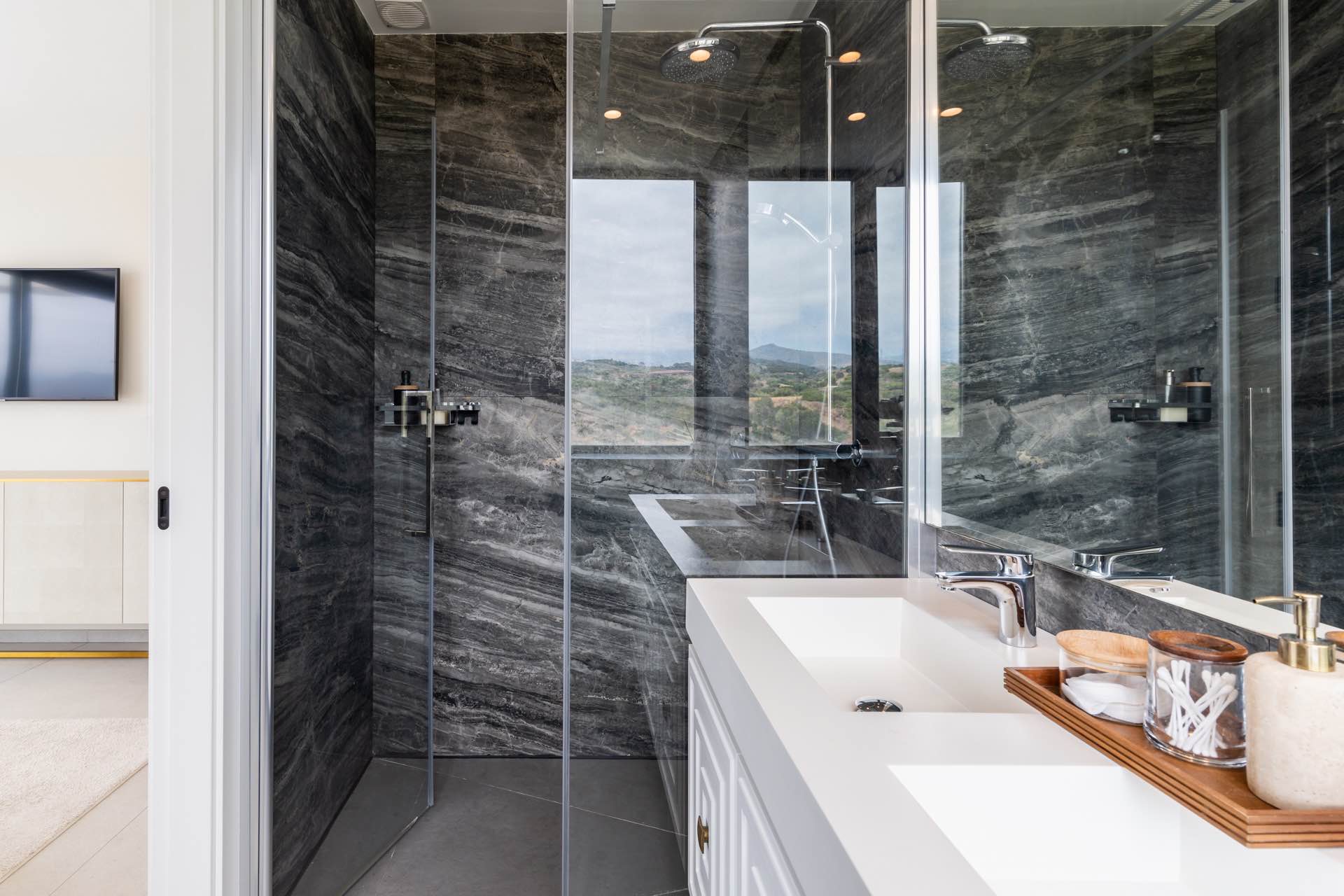 ✔ Six en-suite bedrooms on the first floor, all with private terraces and refined décor.✔ Master suite with panoramic sea-view terrace, walk-in closet, and spa-style bathroom.✔ Rooftop bedroom ideal for staff or guests, offering direct access to the upper terrace.✔ Two more en-suite guest rooms on the basement level for added privacy and flexibility.