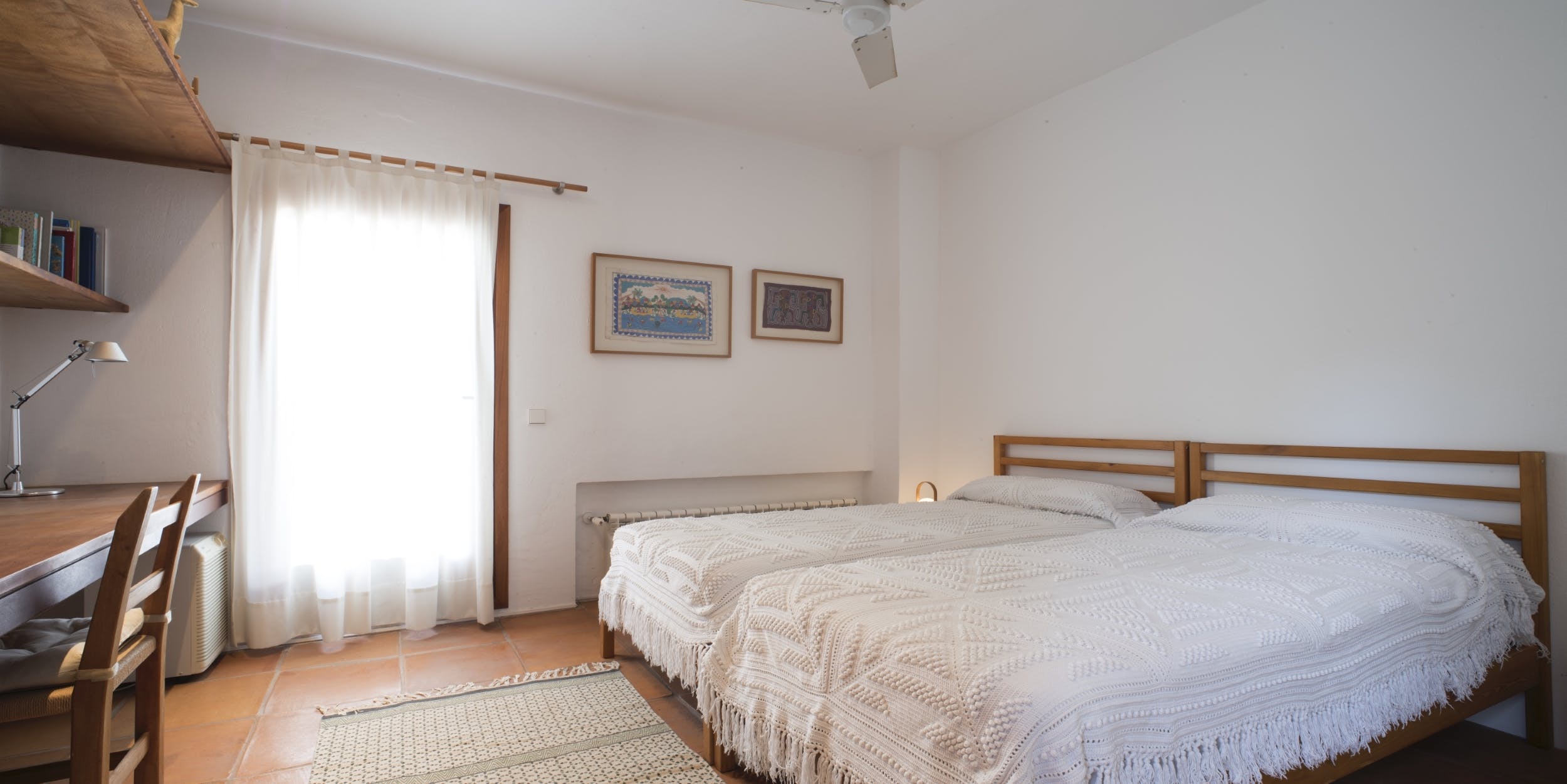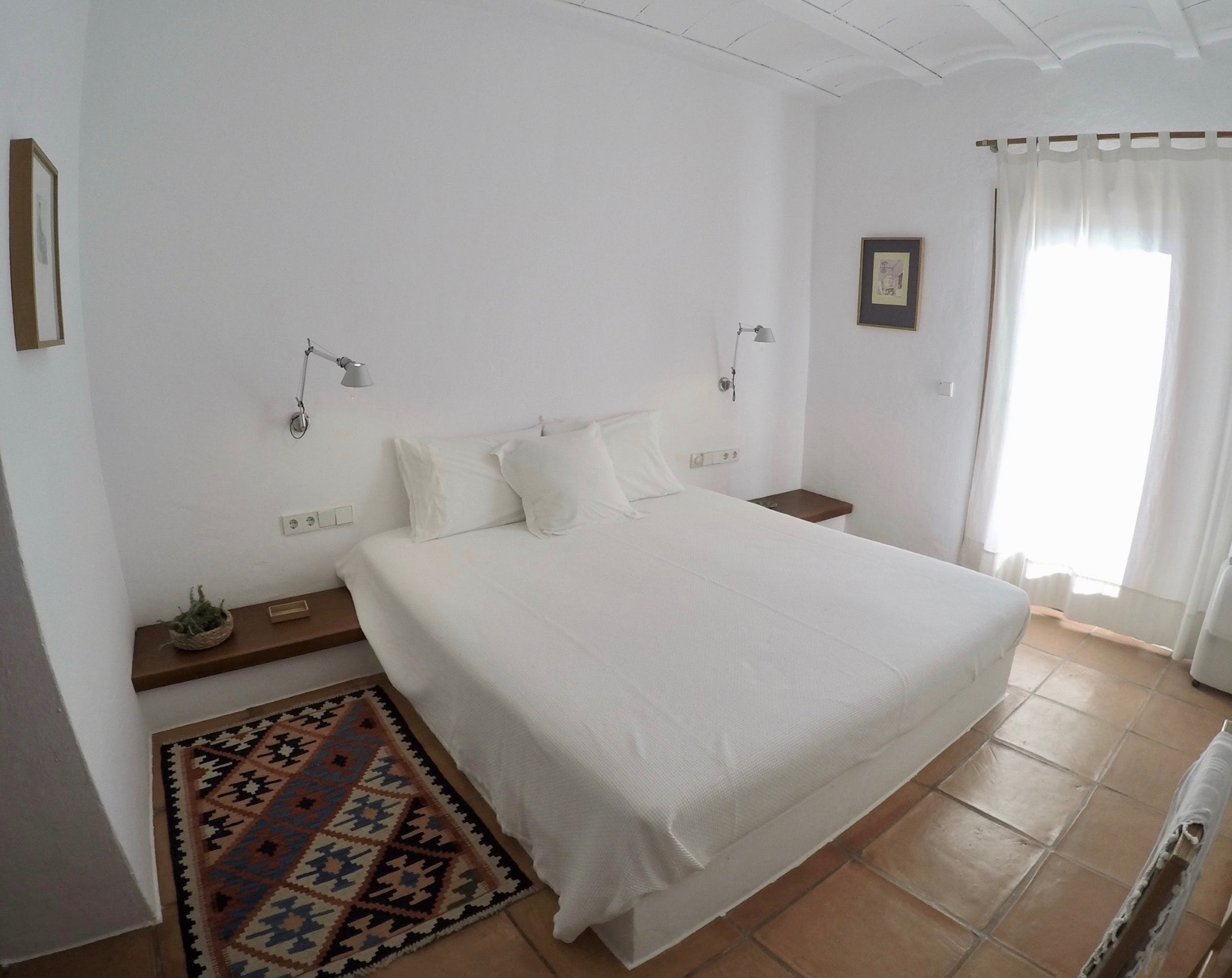 Main building First floor – Double bedroom with en-suite bathroom. Super king size bed (200×180). Air conditioning. Private terrace with sea views.