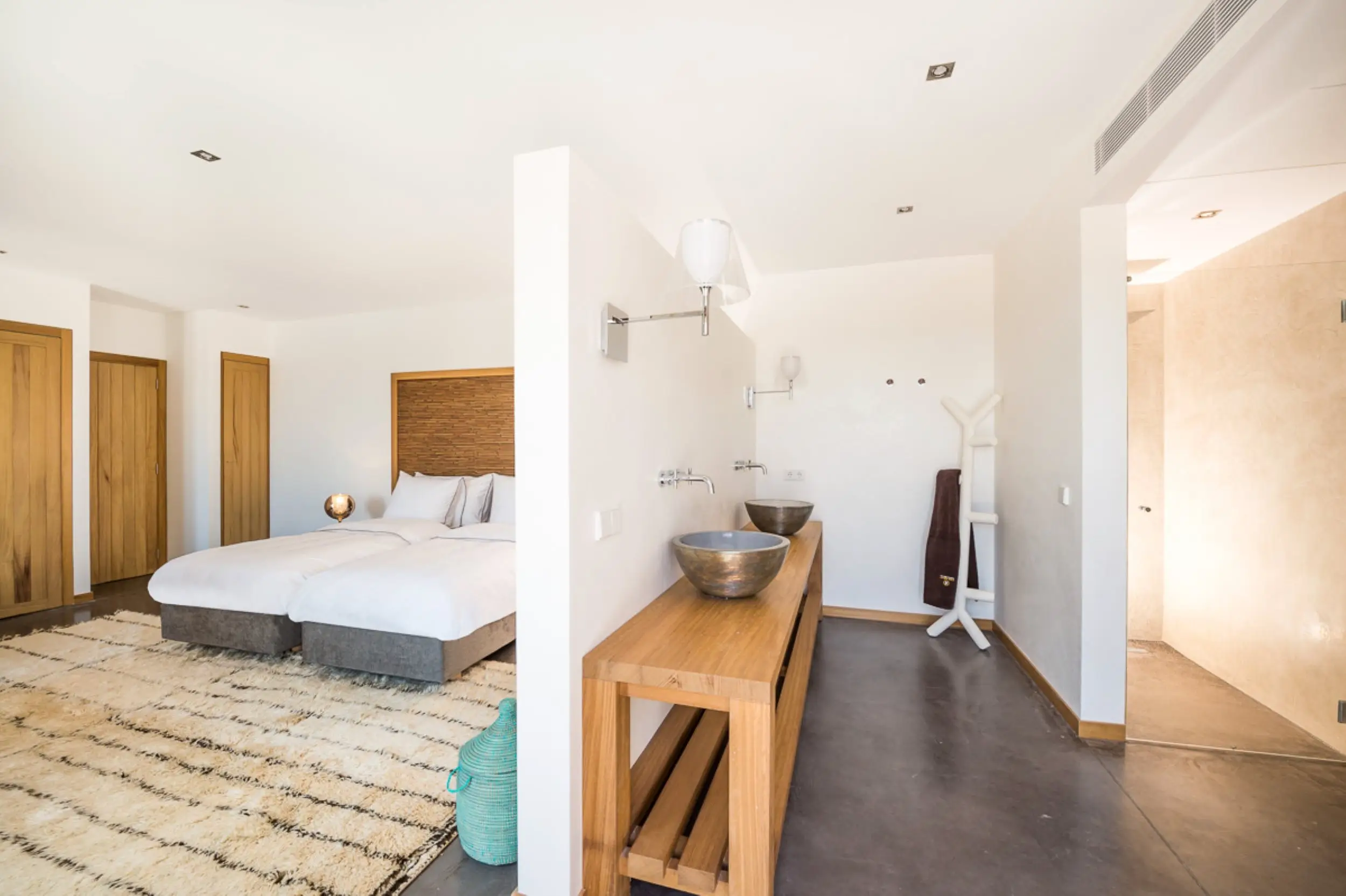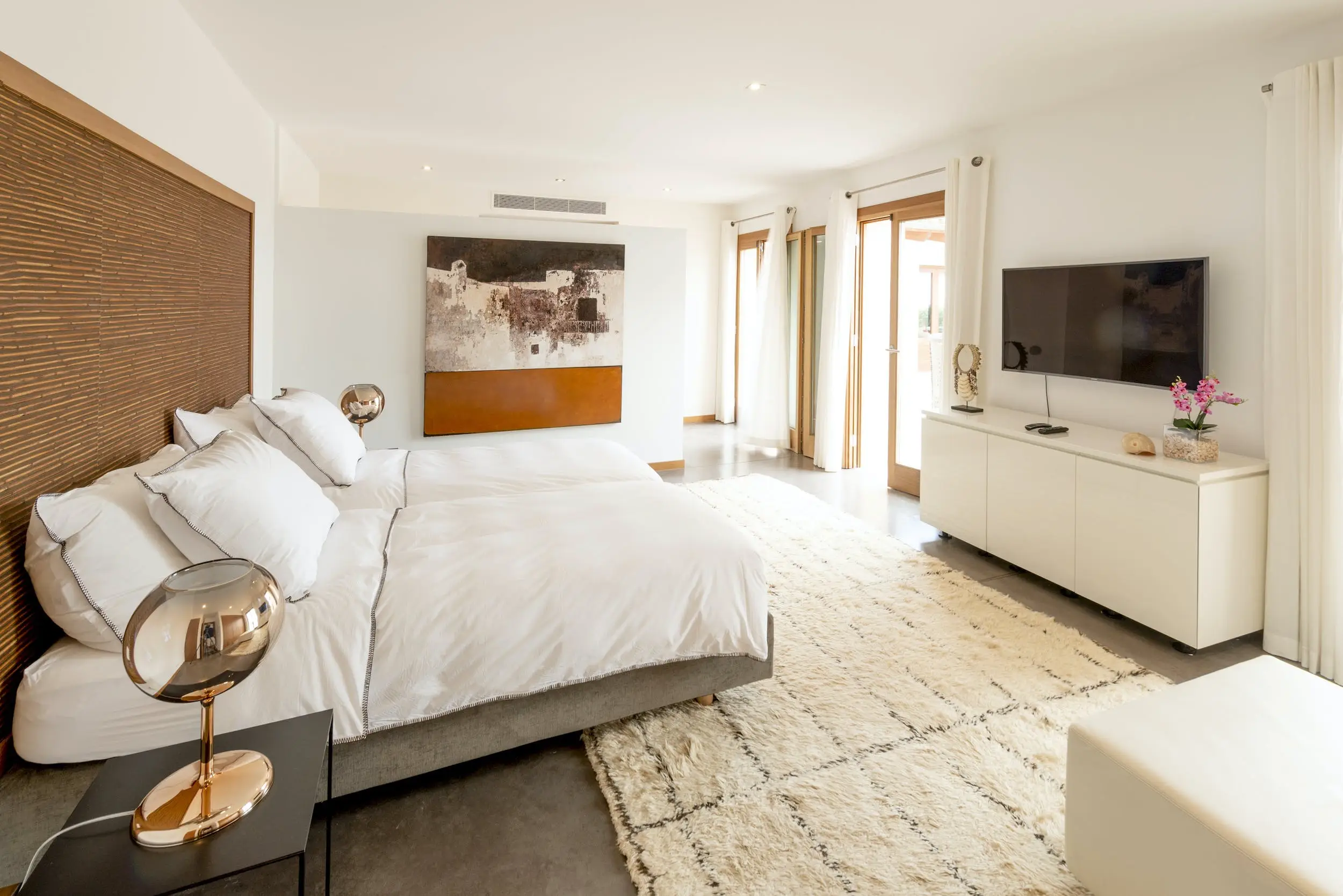 With five stunning suites, Finca Dionisio offers privacy and harmony for up to ten guests. The layout is ideal for families or groups, with bedrooms distributed across two floors and direct access to gardens and pool areas.