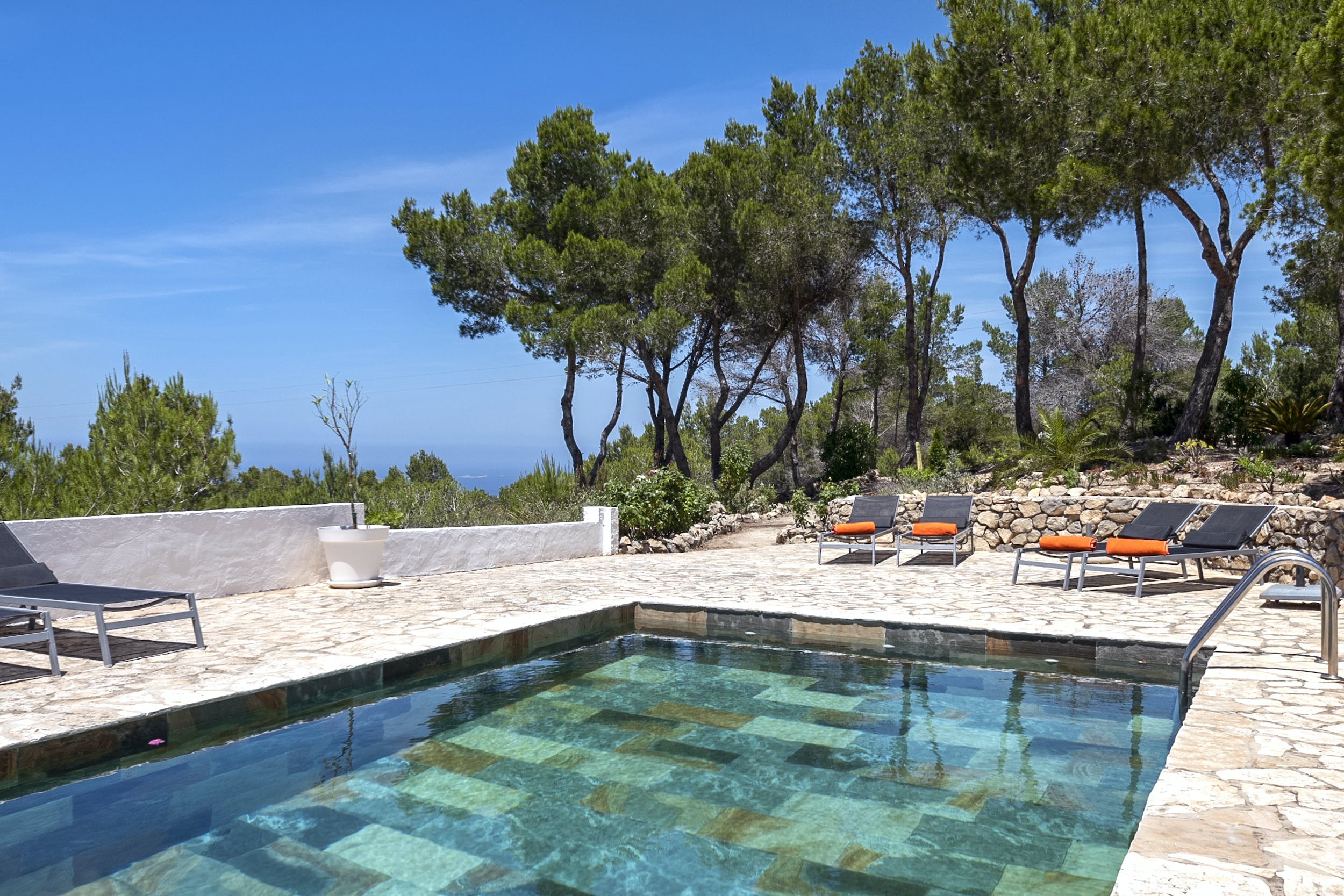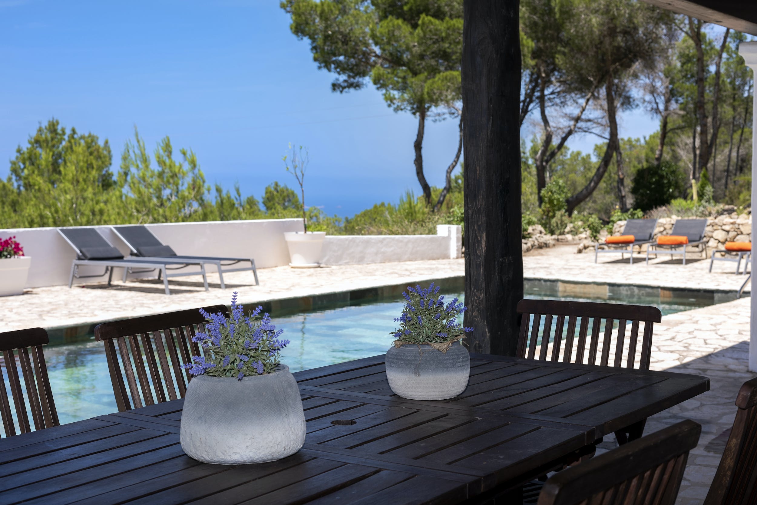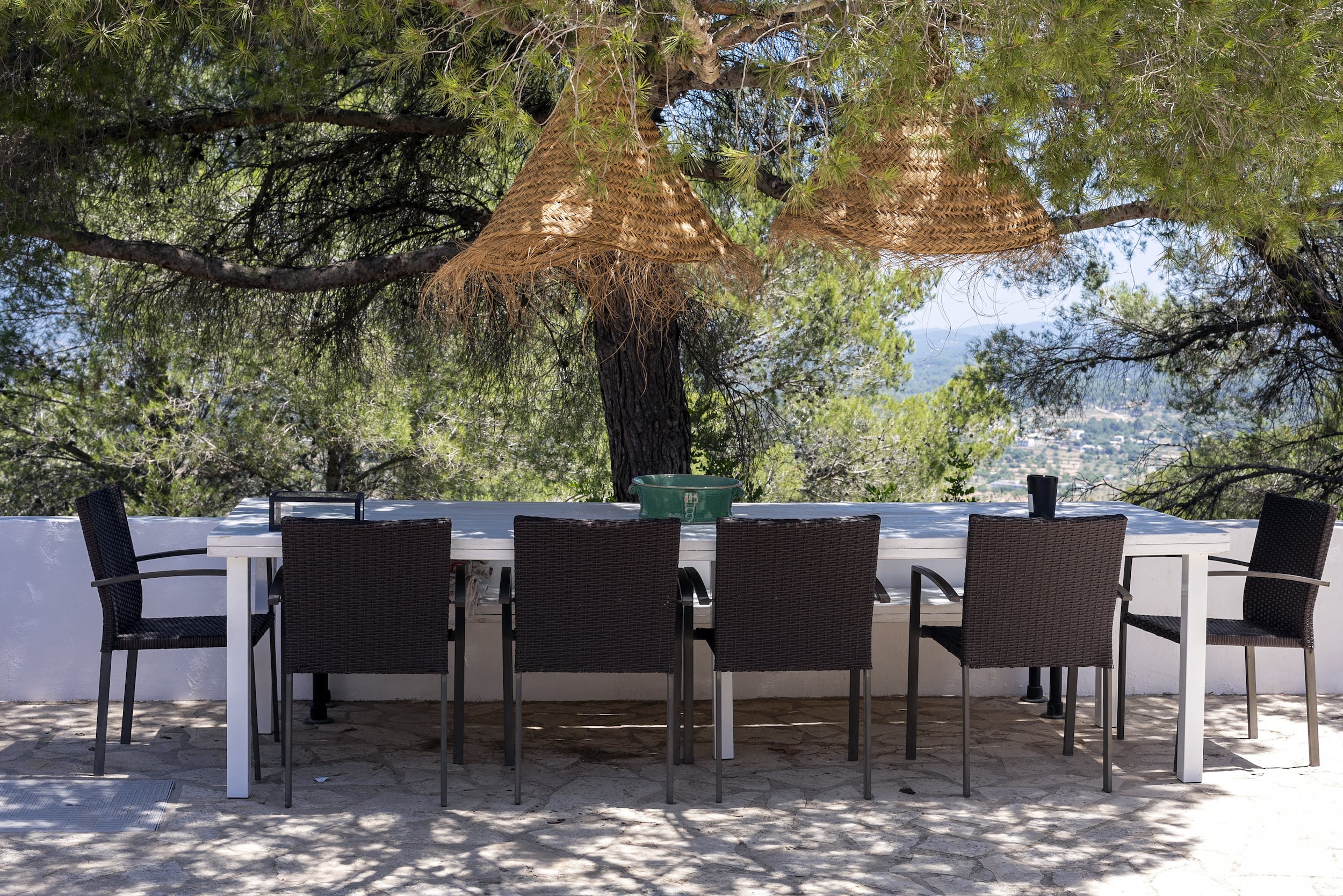 Located on the top of an hill overlooking the Mediterranean sea, the house offers beautiful views and tranquility, and it’s not far from the gorgeous beaches of Cala Moli and Cala Tarida.