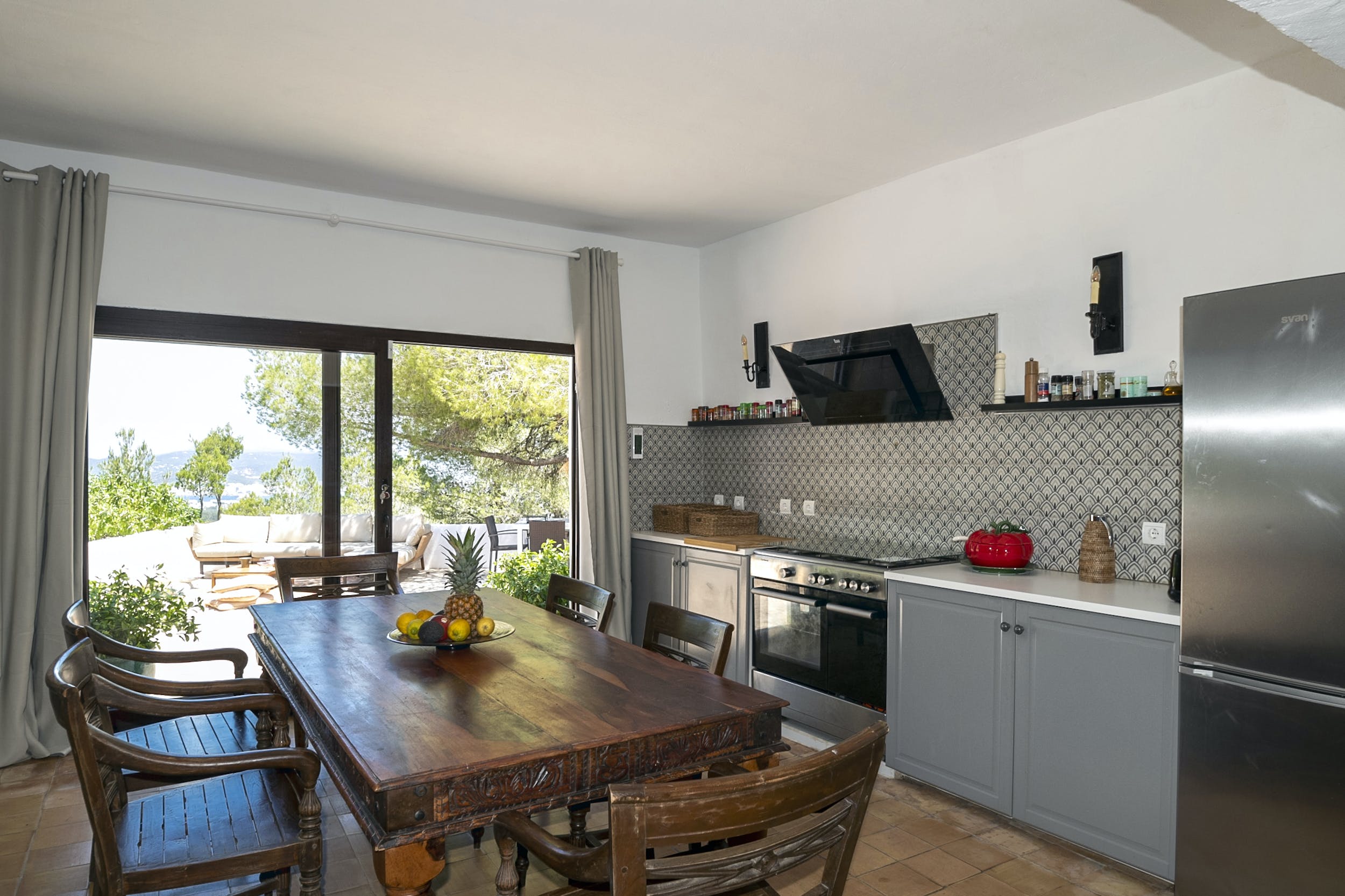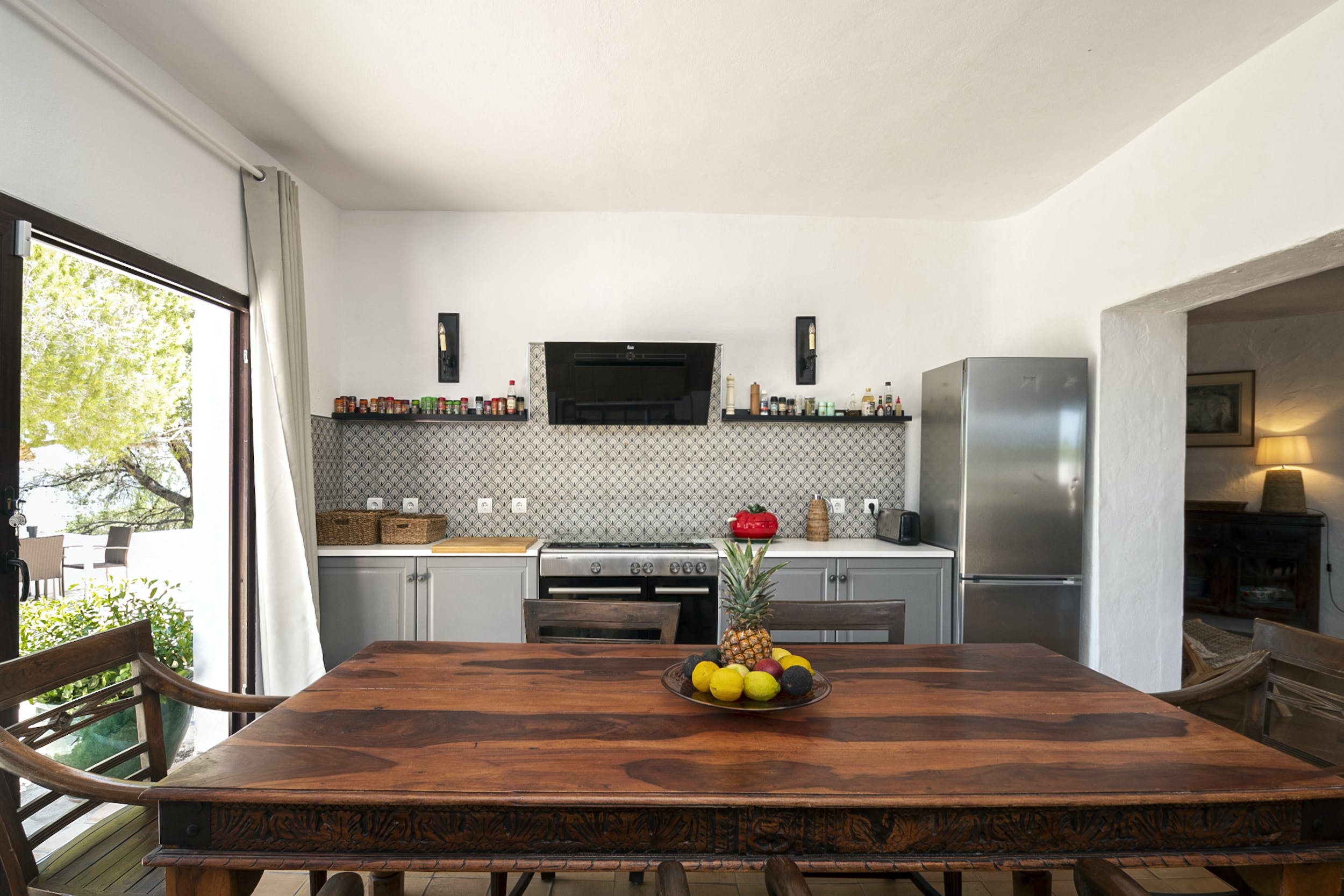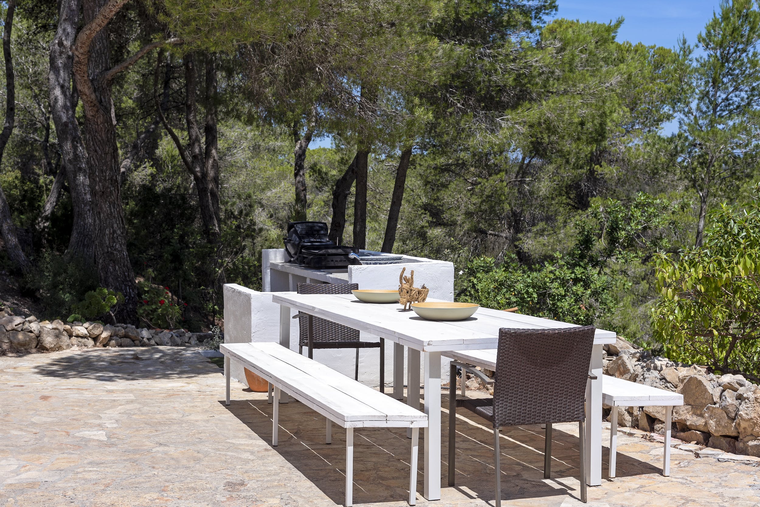 Located on the top of an hill overlooking the Mediterranean sea, the house offers beautiful views and tranquility, and it’s not far from the gorgeous beaches of Cala Moli and Cala Tarida.