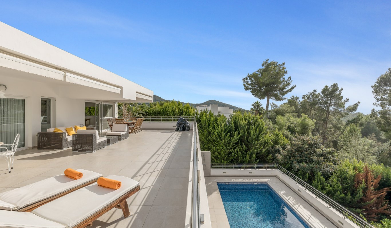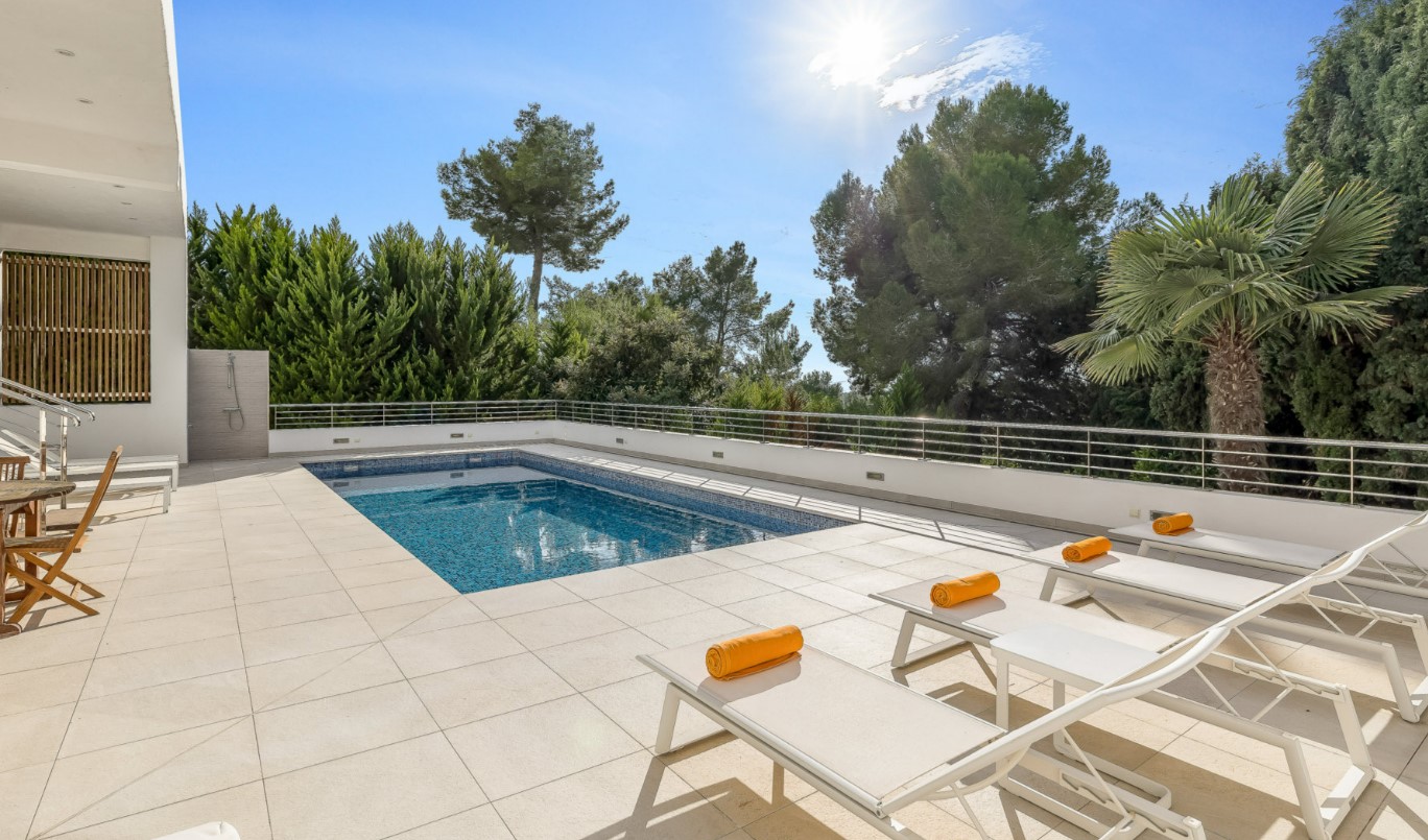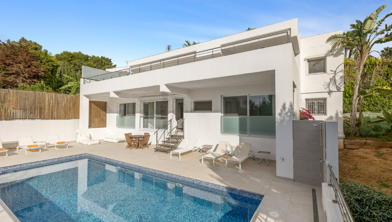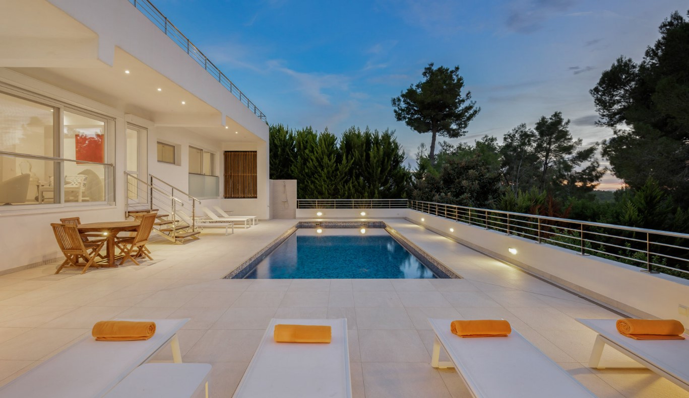 This fabulous villa with capacity for 10 people is located in the Can Furnet neighborhood, very close to the town of Jesús and the center of Ibiza.
