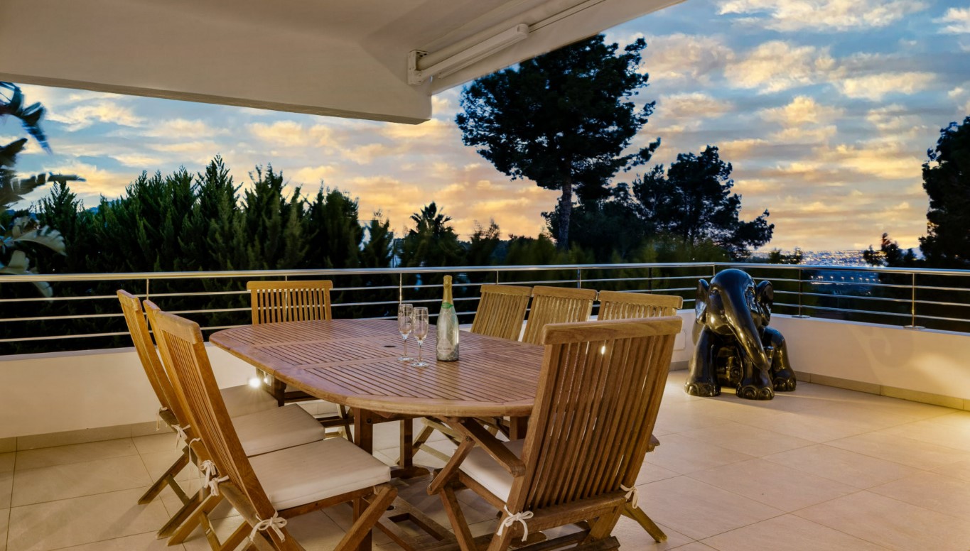 Access to the house is from the first floor, where we find the living-dining room with Smart TV and access to a large terrace with an outdoor dining area, lounge area and sun loungers. Also where you can see beautiful views and fantastic sunsets. Open and fully equipped kitchen. 2 double bedrooms with matrimonial bed and 2 separate bathrooms.
