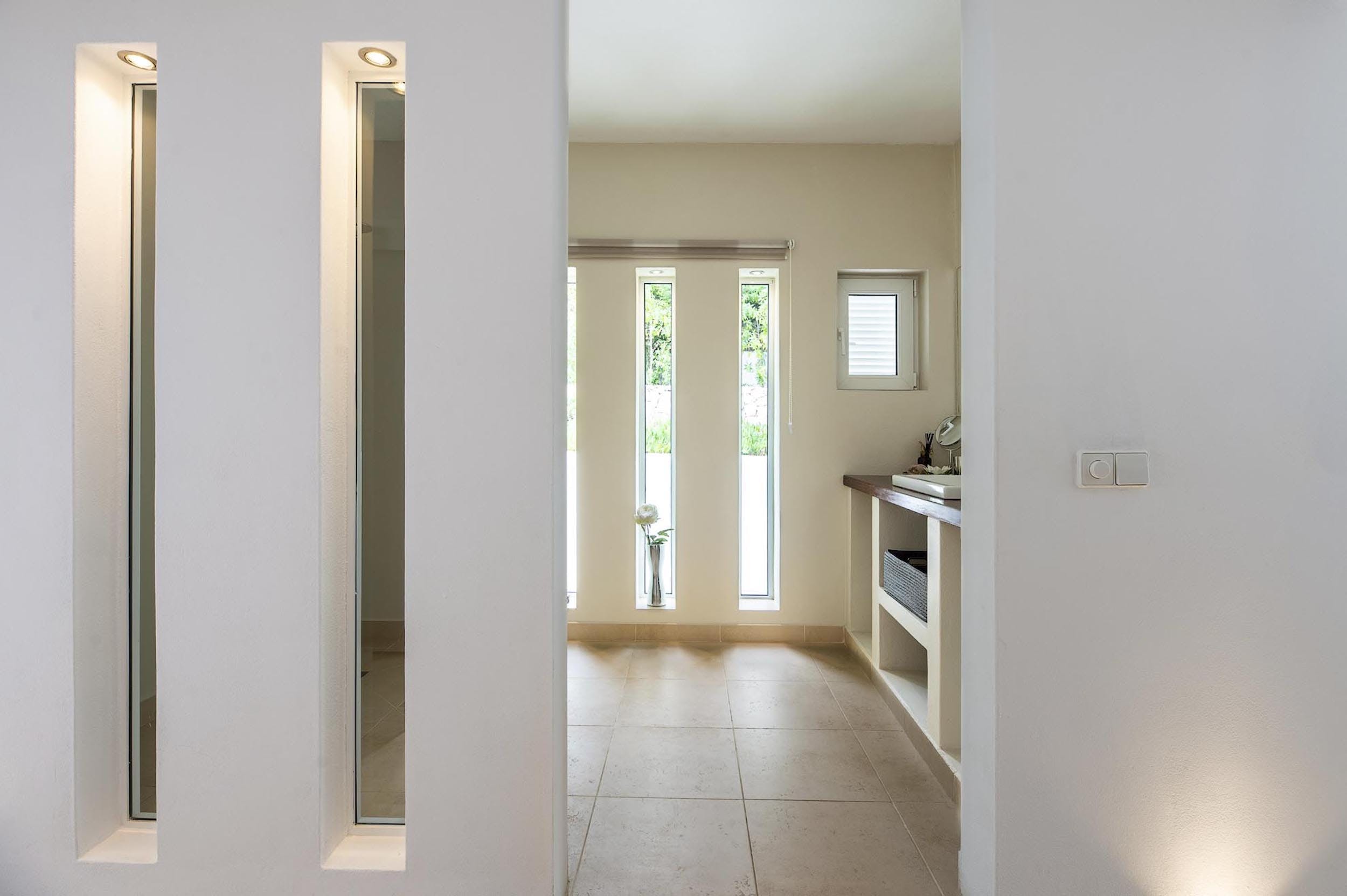 There are 3 bedrooms with double beds and underfloor heating, 2 bathrooms with shower (one of them is en-suite) and 2 toilets. There is air conditioning throughout the villa, Wi-Fi, an alarm system, and a safe box.