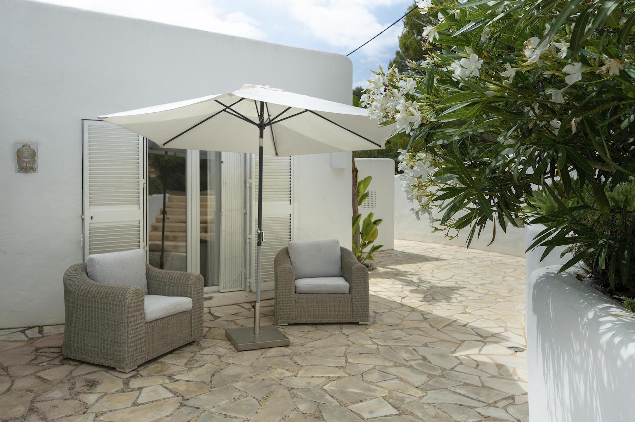 The villa of 160m2 within a plot of 1,300m2 (with covered parking for 1-2 cars) offers ample space to enjoy your holiday in Ibiza comfortably.