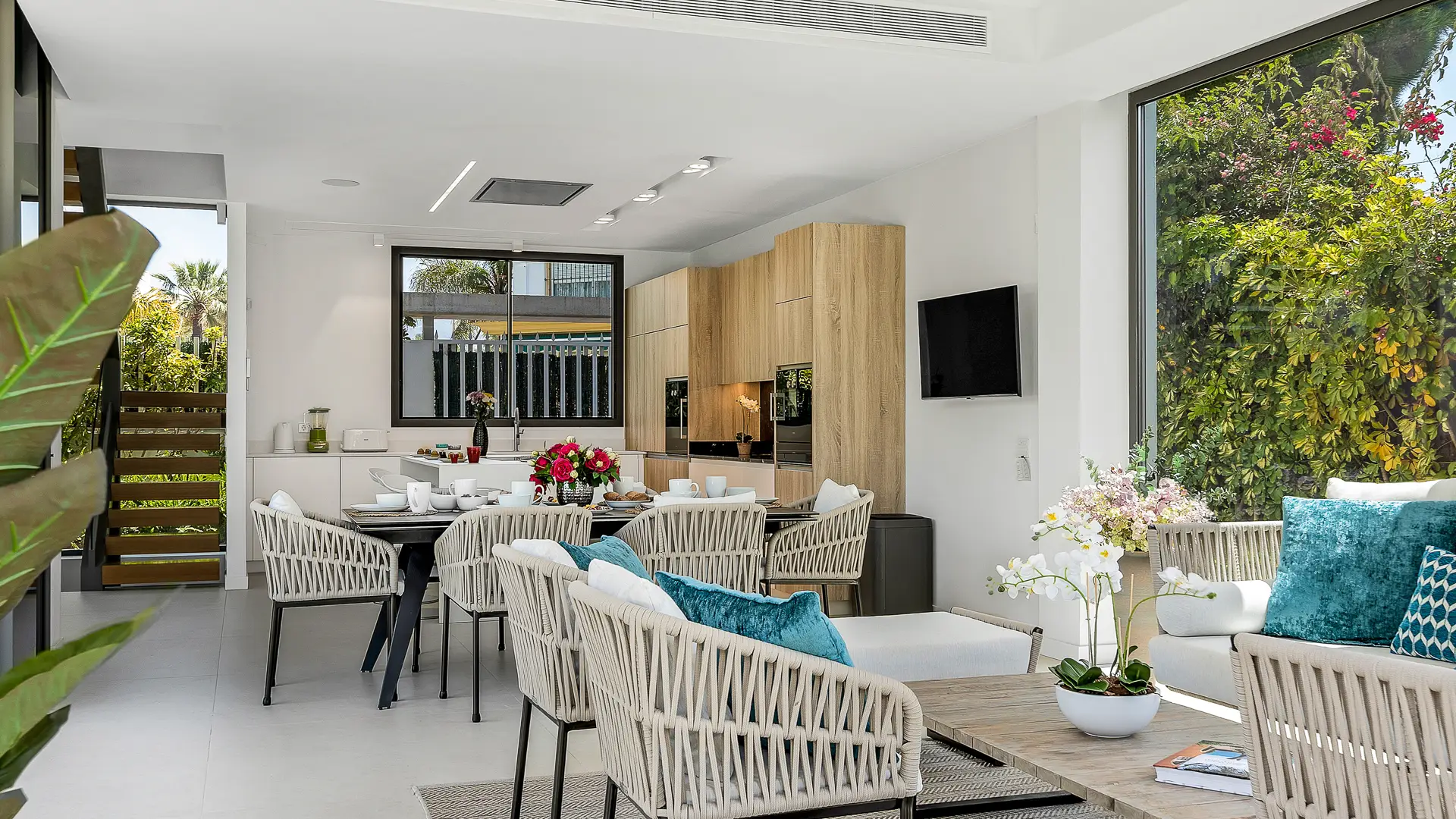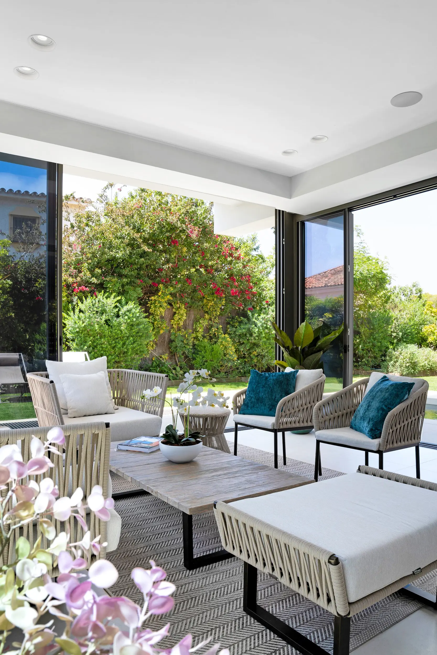With its open-plan design and expansive sliding glass doors, Gilded Gardenia blurs the line between indoor comfort and Marbella’s lush, sun-kissed outdoors. Every space flows seamlessly into the next, creating an effortless ambiance for entertaining, relaxing, or simply enjoying the gentle sea breeze with your loved ones.