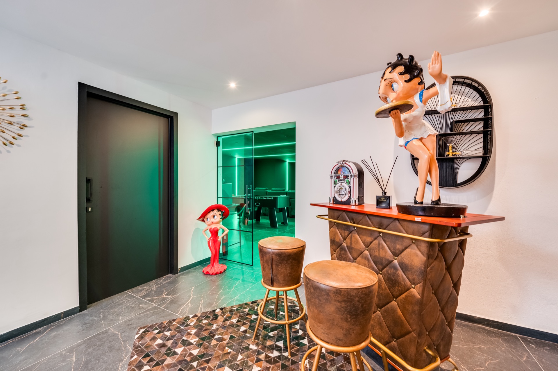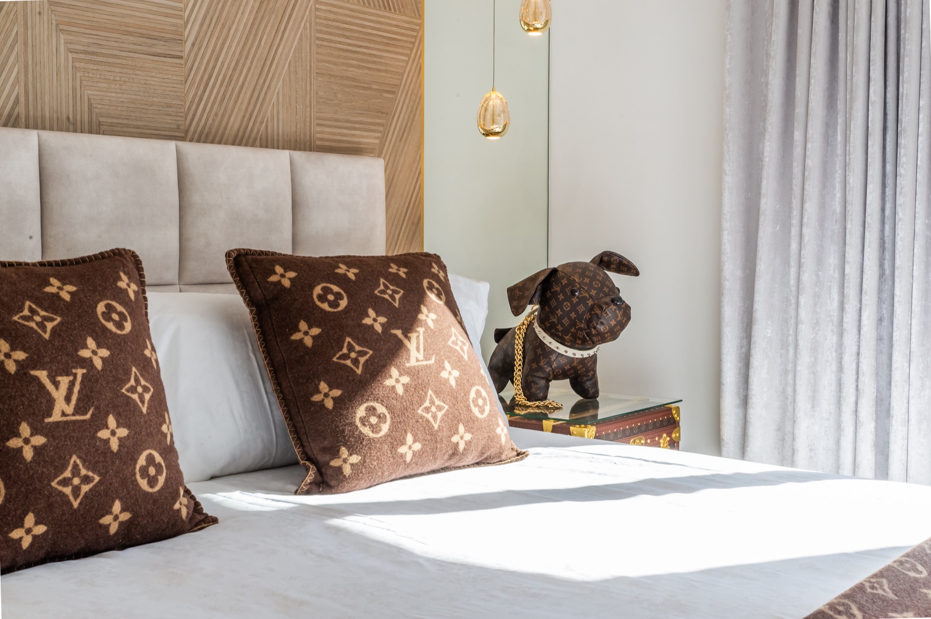 Each of the four en-suite bedrooms is an immersive world of its own. Inspired by the refined charm of Louis Vuitton, the playful elegance of Takashi Murakami, the dramatic flair of Versace, and the timeless soul of Plein Philippe, Golden Star invites you into a world where luxury meets imagination.