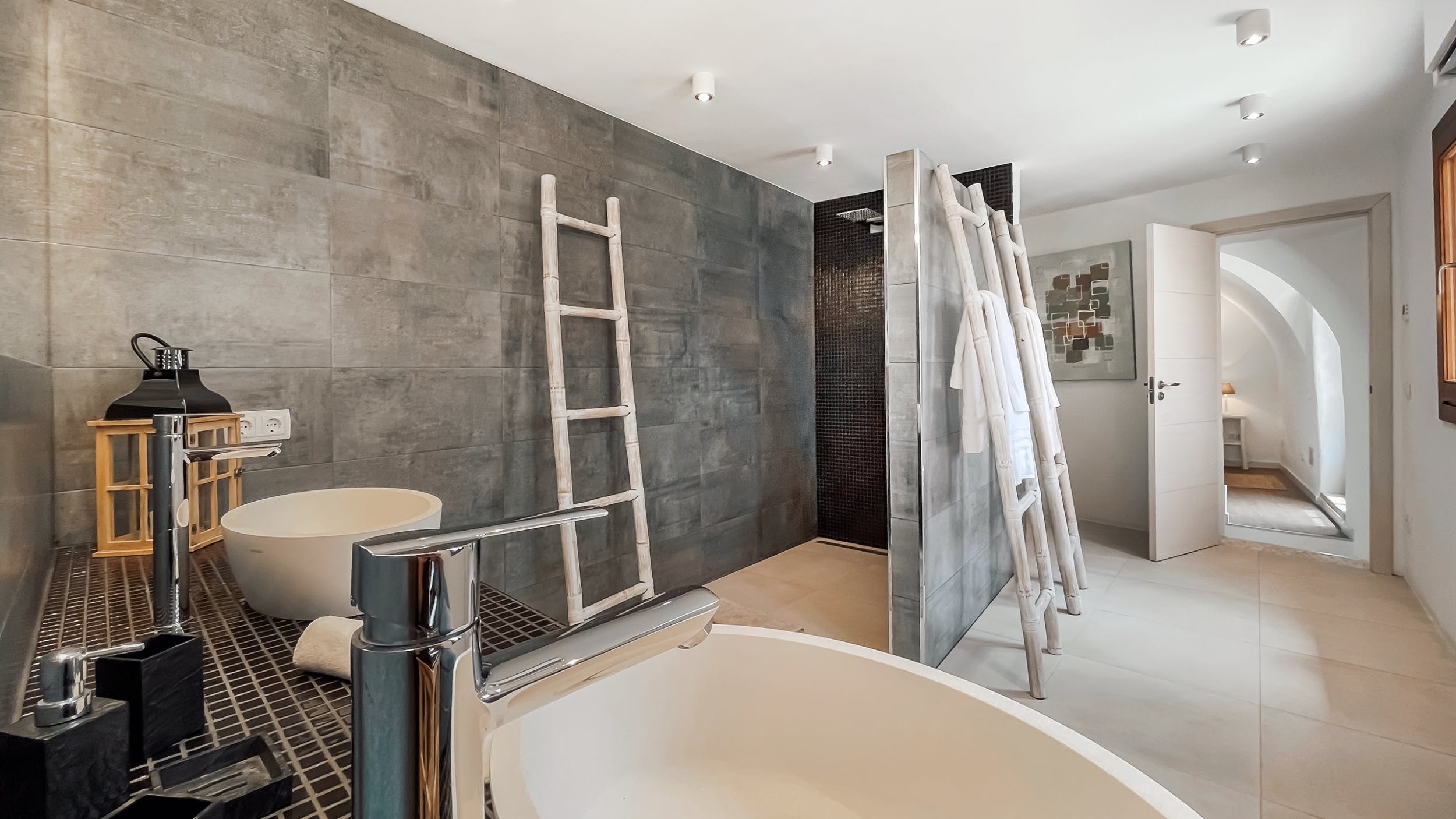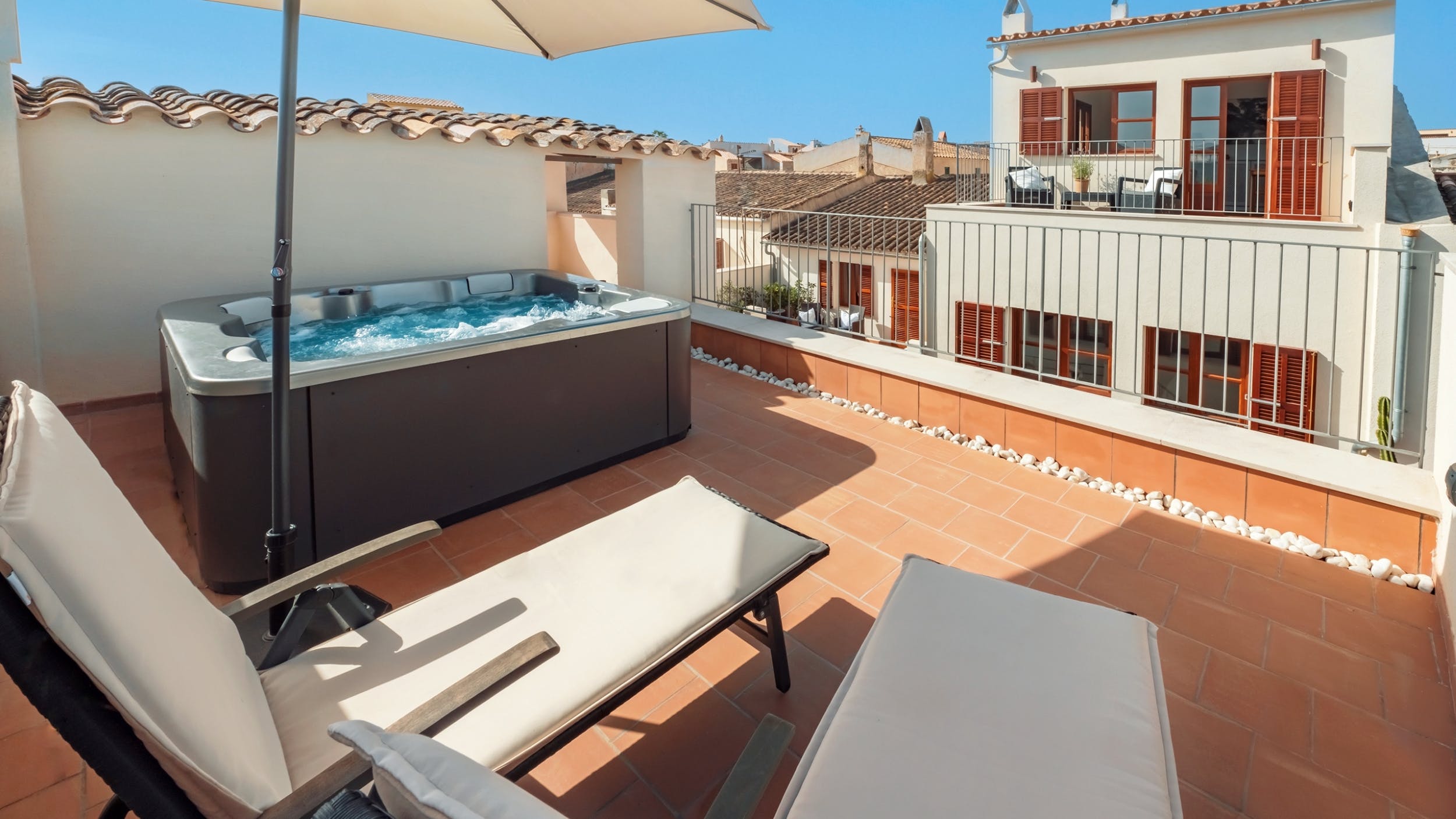 Emperor size bed (200 x 200 cm), private terrace, private bathroom with walk-in-shower, double sink, radiant floor heating.