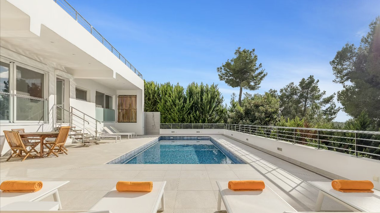 This modern stylish villa is equipped with a suggestive veranda and a day-dreaming swimming pool, awarding the ideal destination for all Ibiza lovers that want to enjoy the beauty of it’s surroundings.