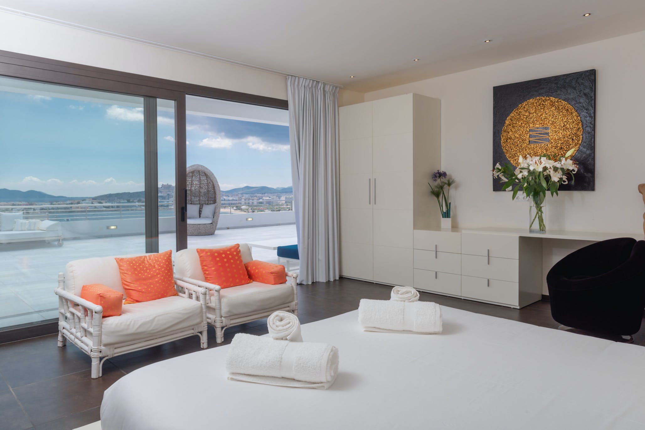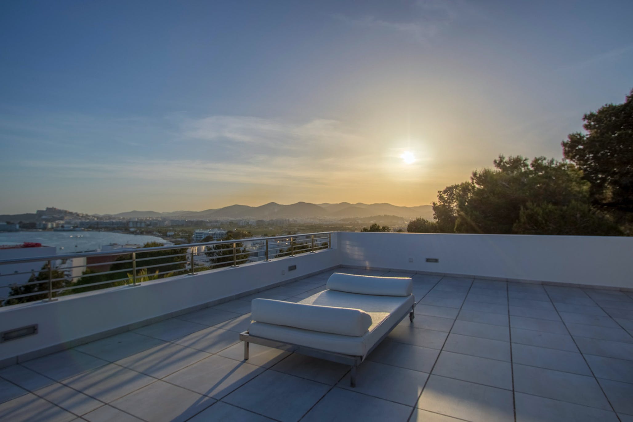 It offers stunning views of Dalt Vila in Ibiza town, Formentera and the sea, and is only 5 minutes drive from Ibiza town center and a little less from Pacha, Destino, Lio and Talamanca beach.