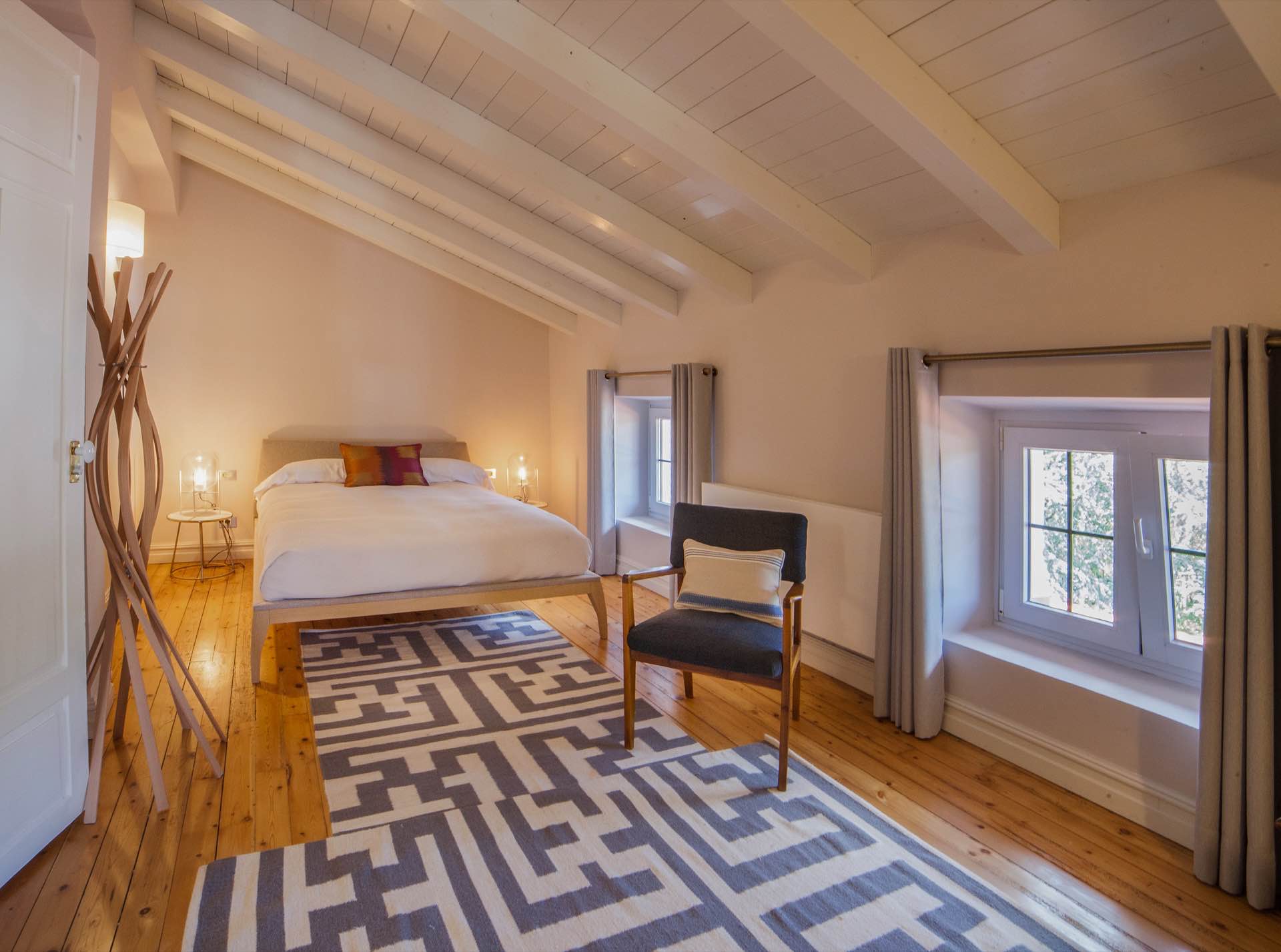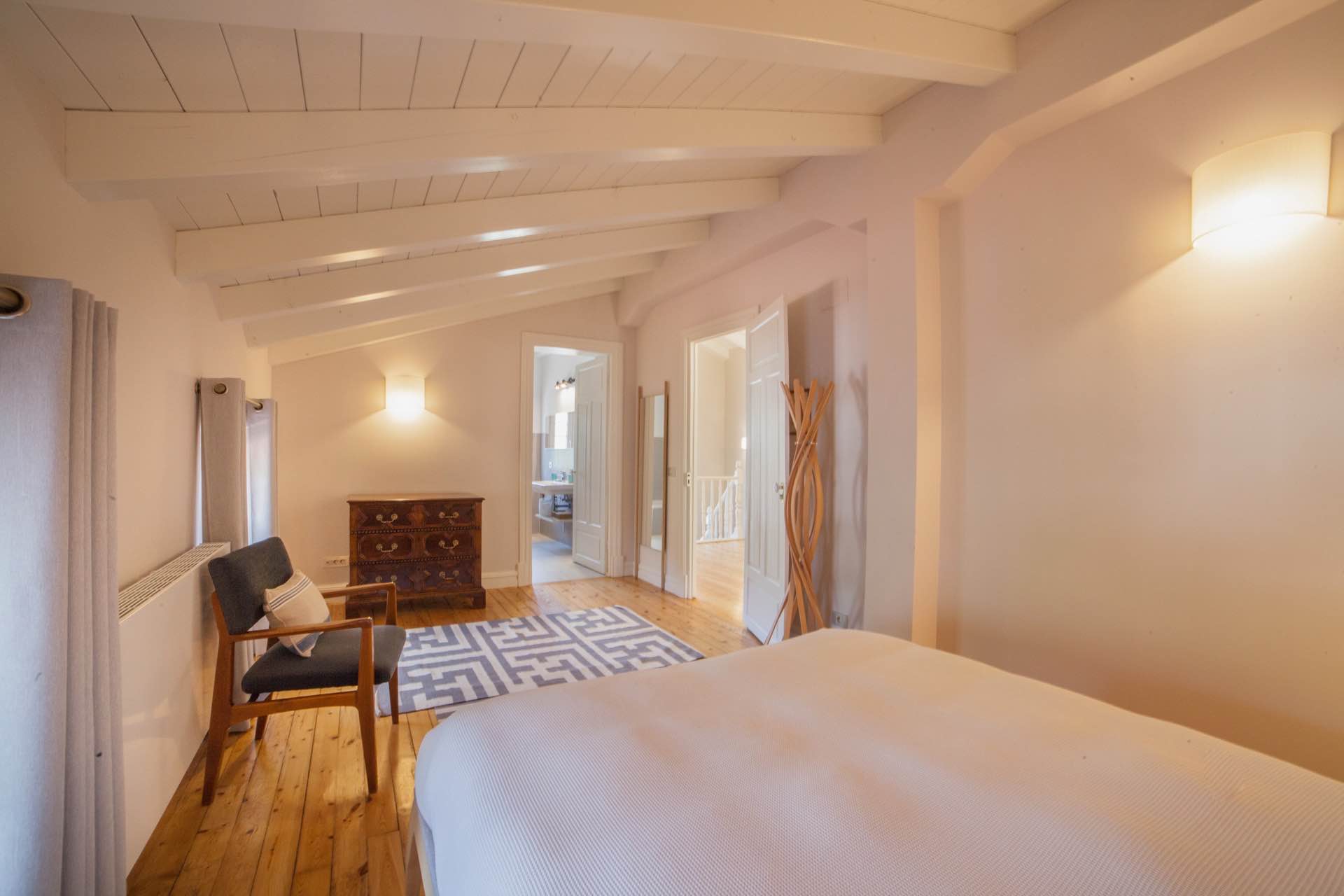 A gift for the senses. The house is totally renovated. The interior design has been projected respecting the traditional style of the house. And generating more modern, spacious and bright interior spaces. The rooms have an austere and elegant style that fills with life with the people and details that surround life. Three floors and a white marquetry staircase that deserves more than one photograph. The house is a small palace where you can enjoy a few days in a group.