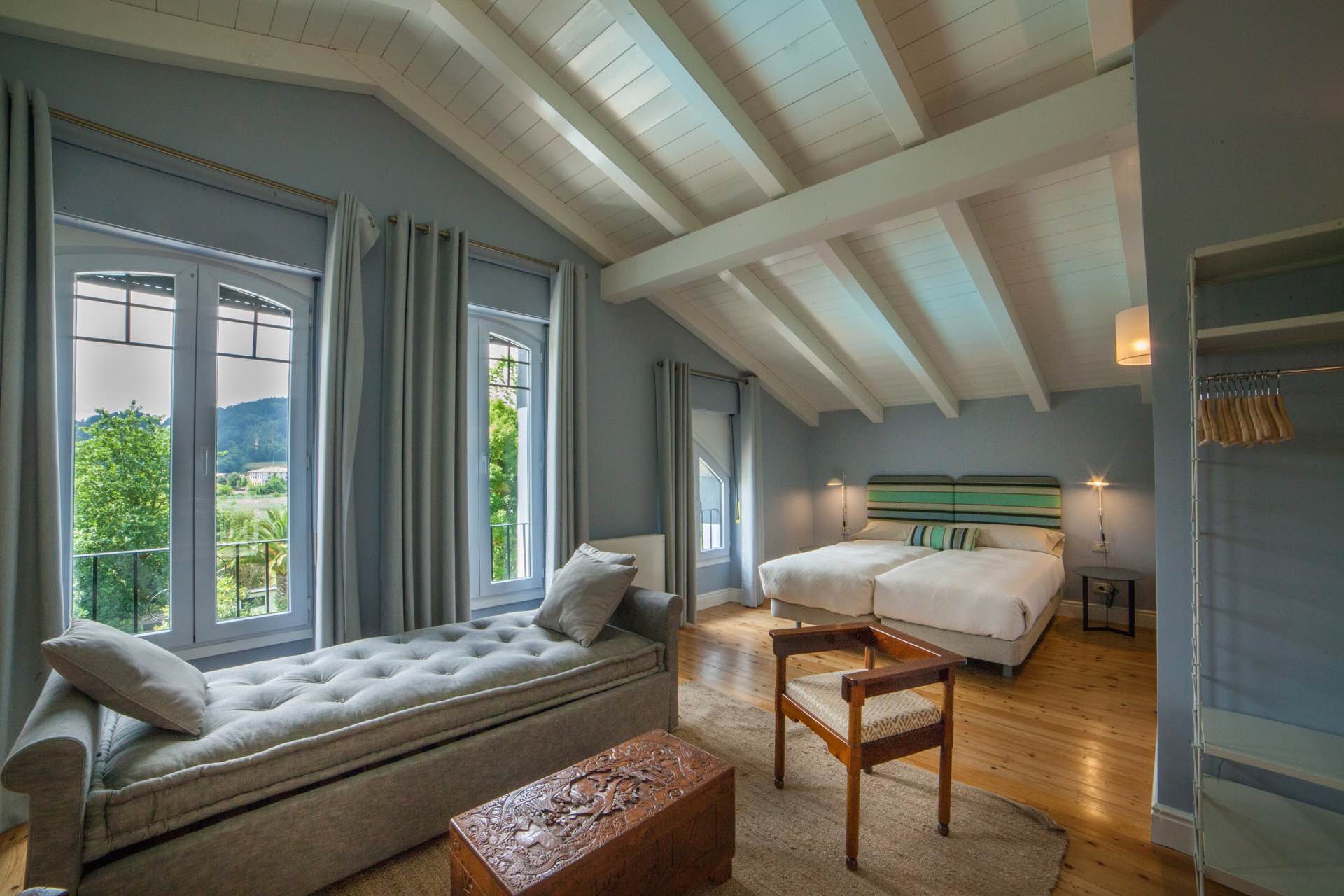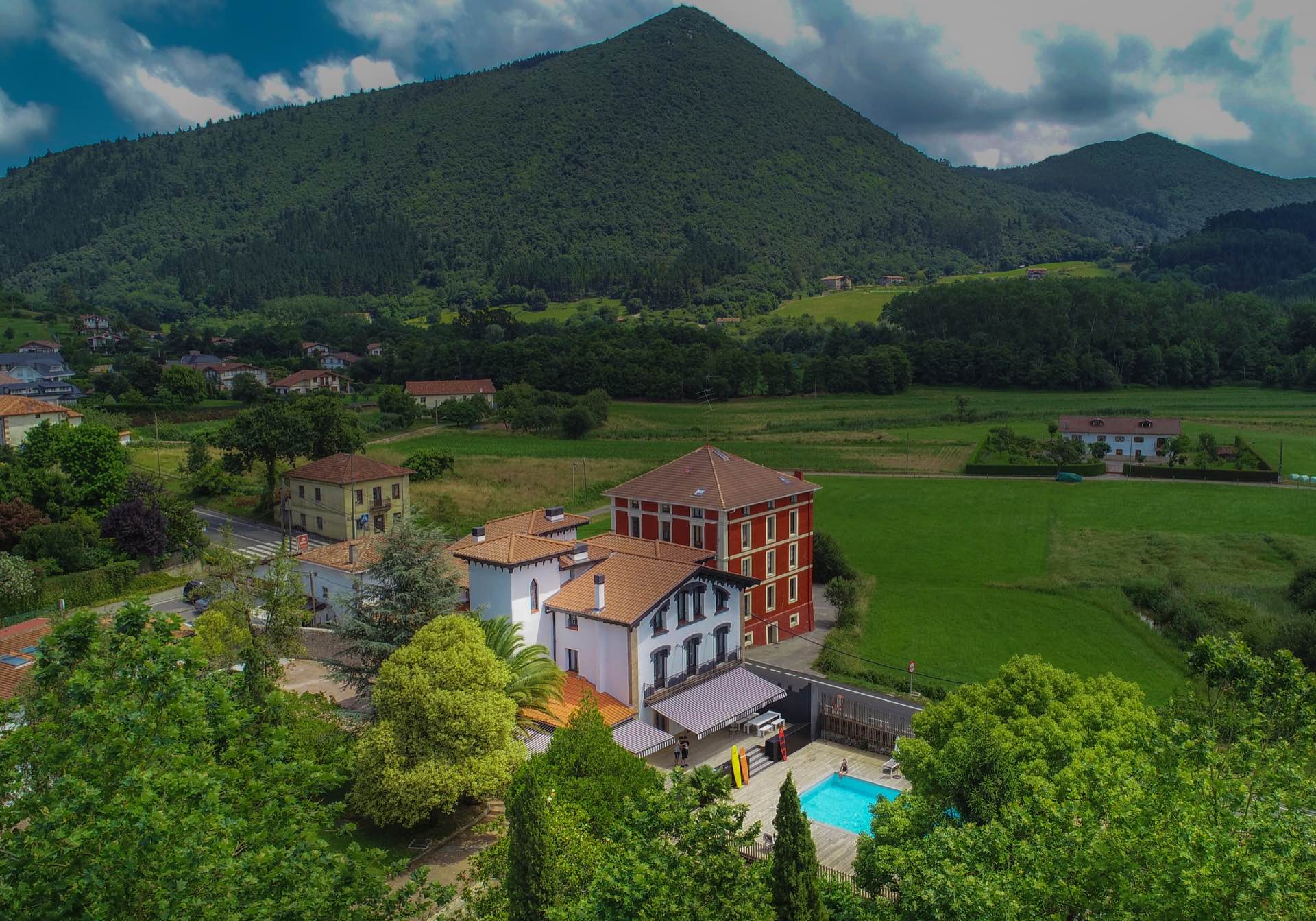 Located in a privileged natural setting – the Urdaibai biosphere reserve -. This beautiful house has a large outdoor space where you can walk, read or simply relax in the fresh air of the large trees in the garden. The swimming pool located in front of the entrance provides a refreshing view of this beautiful traditional construction. Laga Blue has 8 bedrooms, 7 bathrooms, 2 living rooms, a swimming pool, a large terrace, a garden, wi-fi, a library and a large, perfectly equipped kitchen. It can accommodate up to 18 people. Laga Blue is a charming accommodation located in the Basque Country; an ideal house for groups of friends or large families.