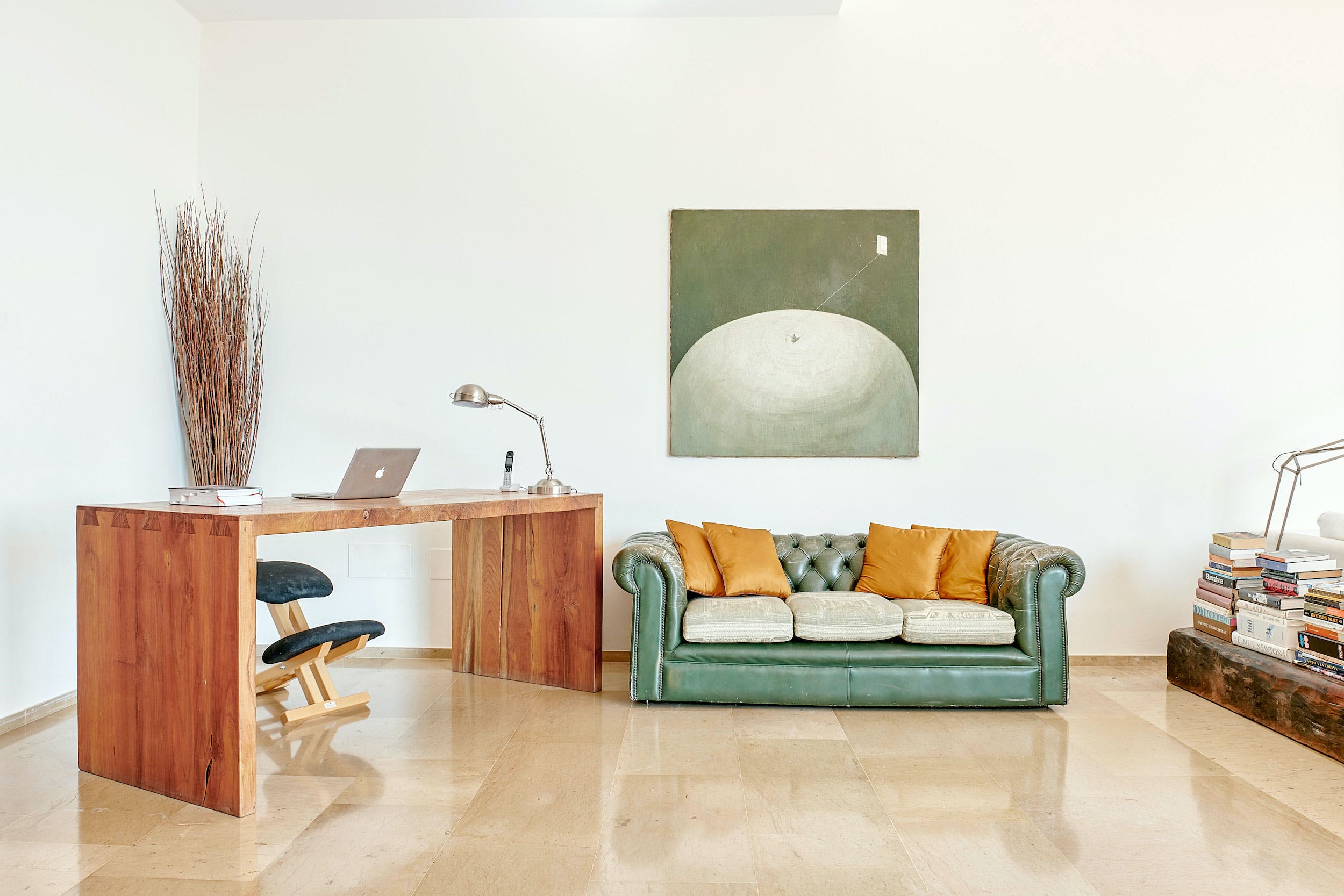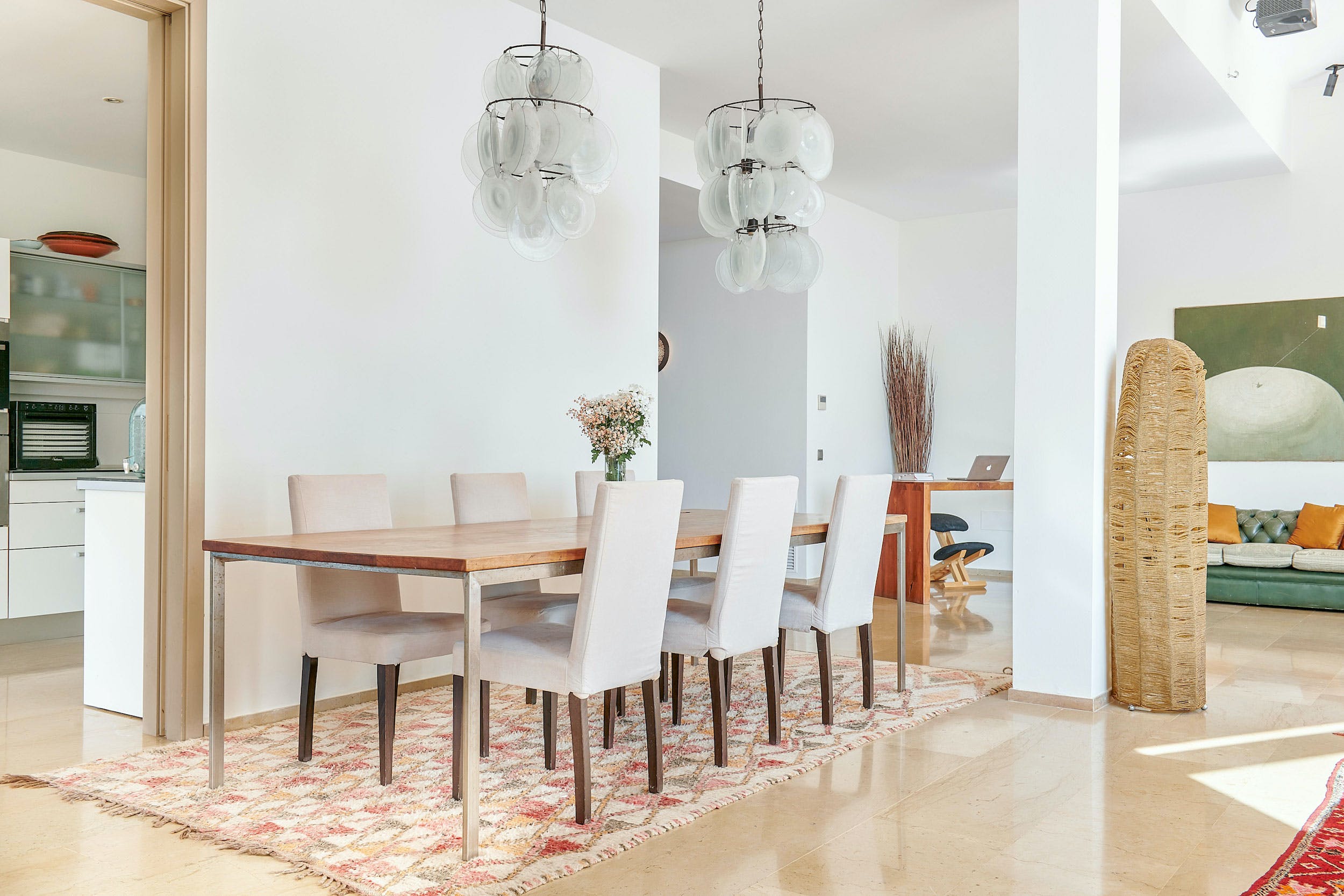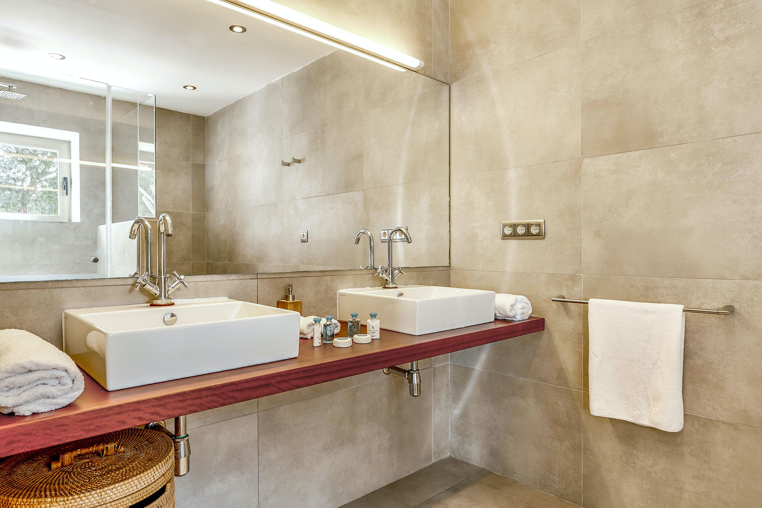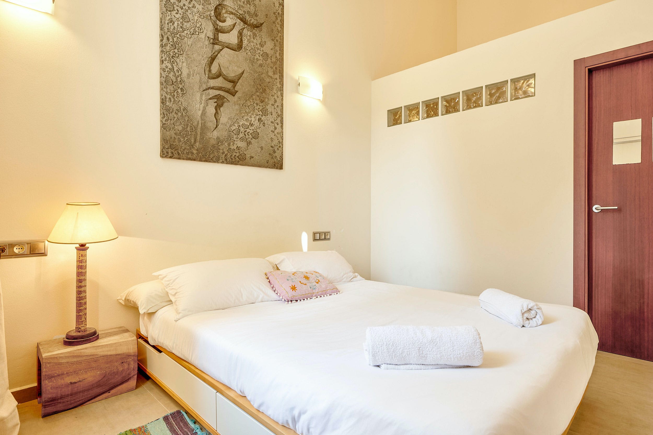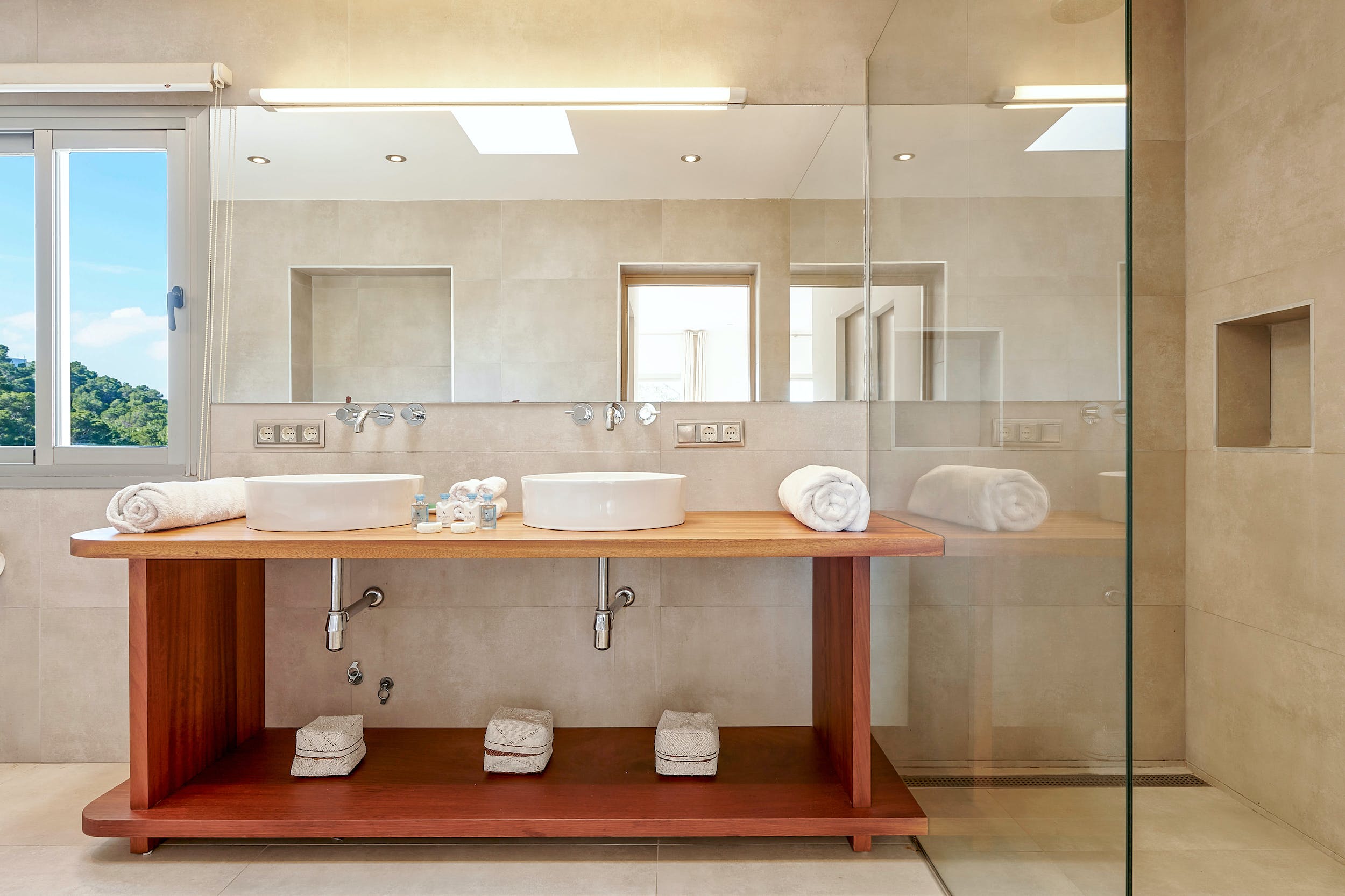 The first floor consists of a large open plan social area, which enjoys large windows overlooking the pool, the coast and the island of Formentera. This space has a very high ceiling and is tastefully decorated with neutral tones and beautiful furnishings from around the world, constantly updated with new inspirations from the owners many travels creating a stunning modern and luxurious home.