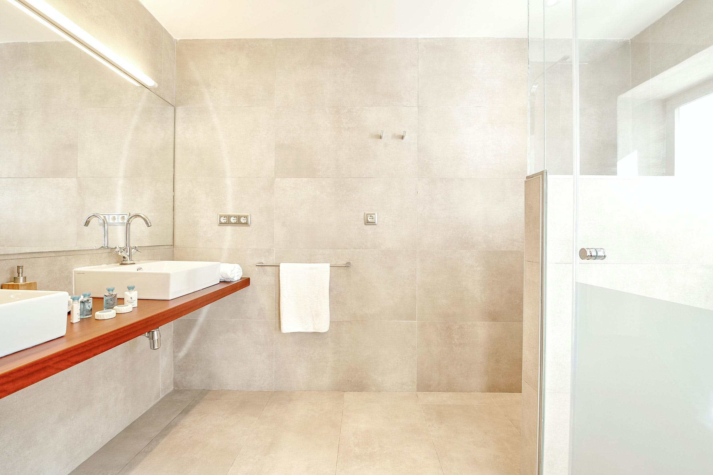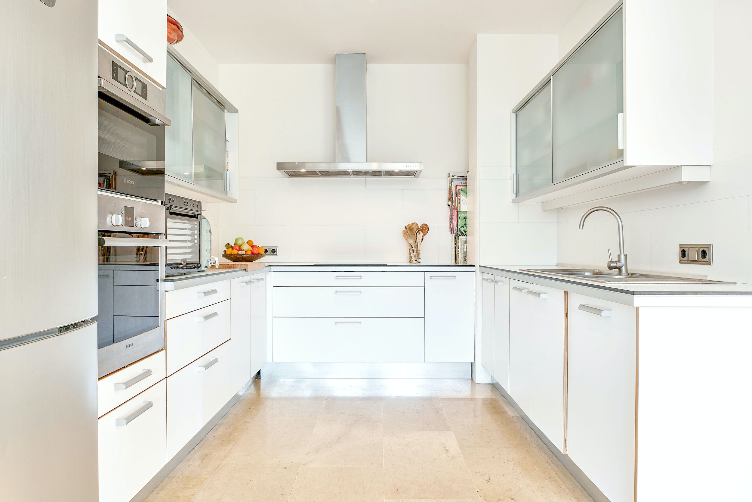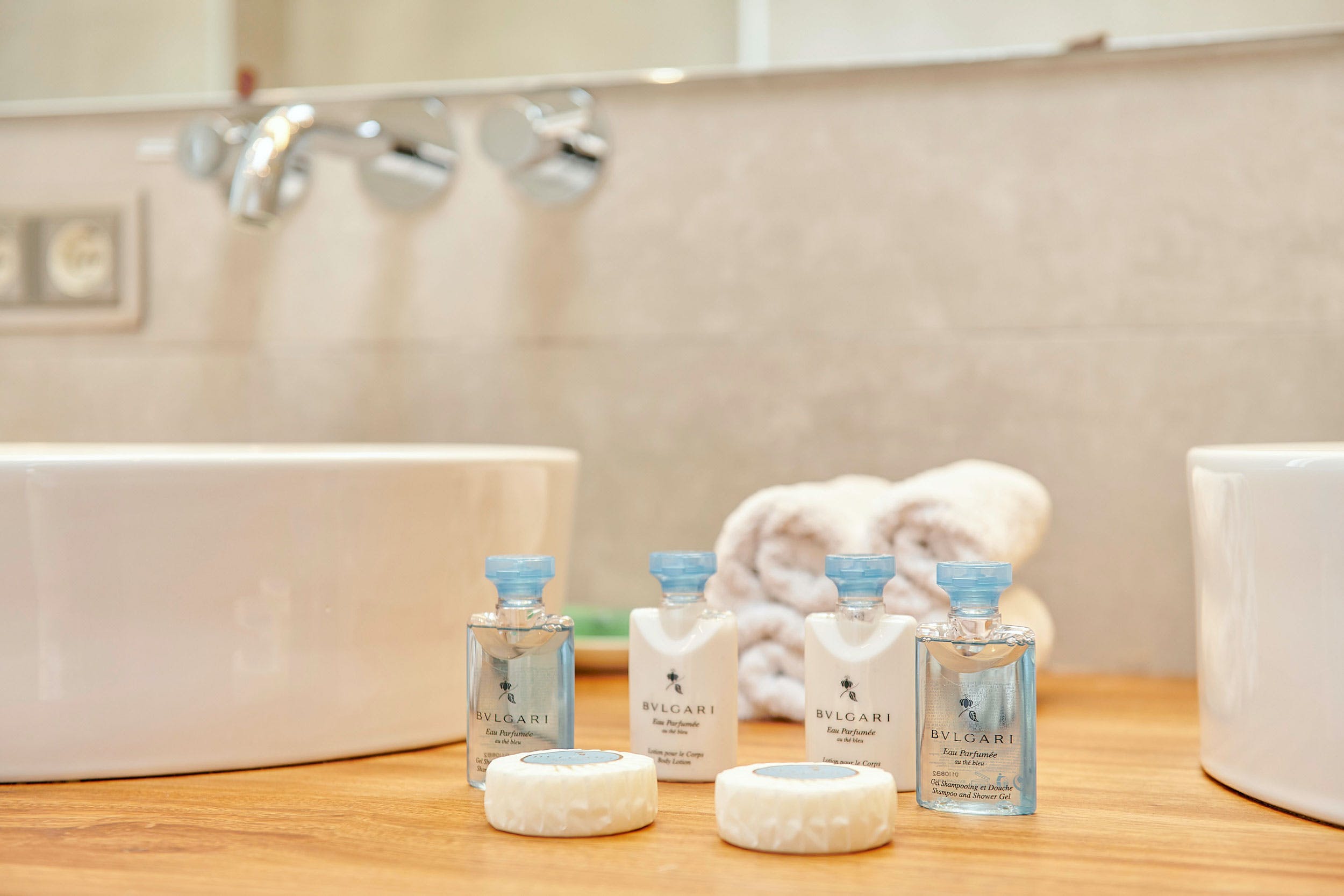 The elegant sofa area features a large fireplace, HD wall projector and flat screen TV with Apple TV and all satellite channels. The dining area is located next to the fully equipped kitchen, where you will also find access to an additional bedroom consisting of a single bed and a staff/nanny bathroom.