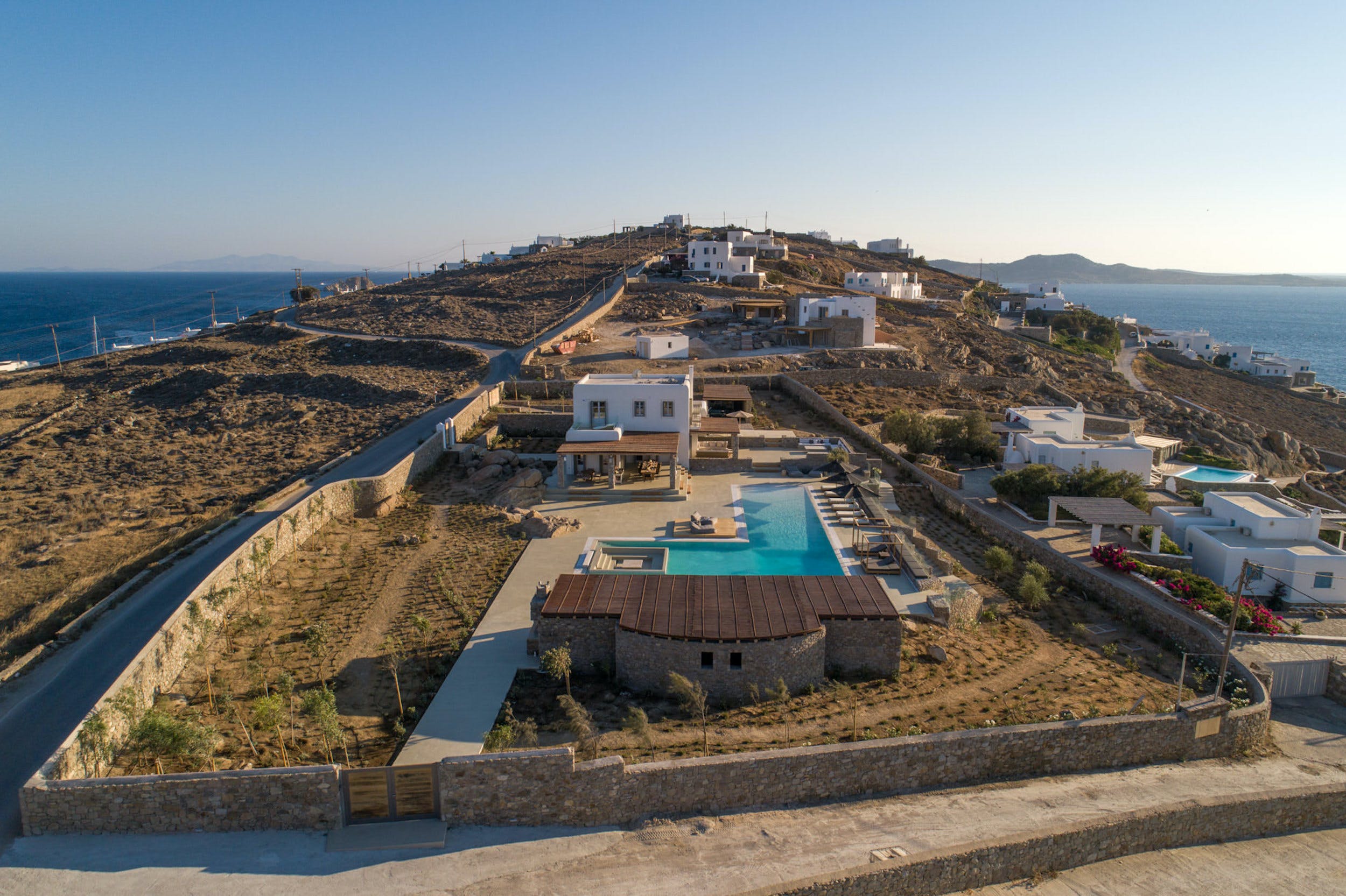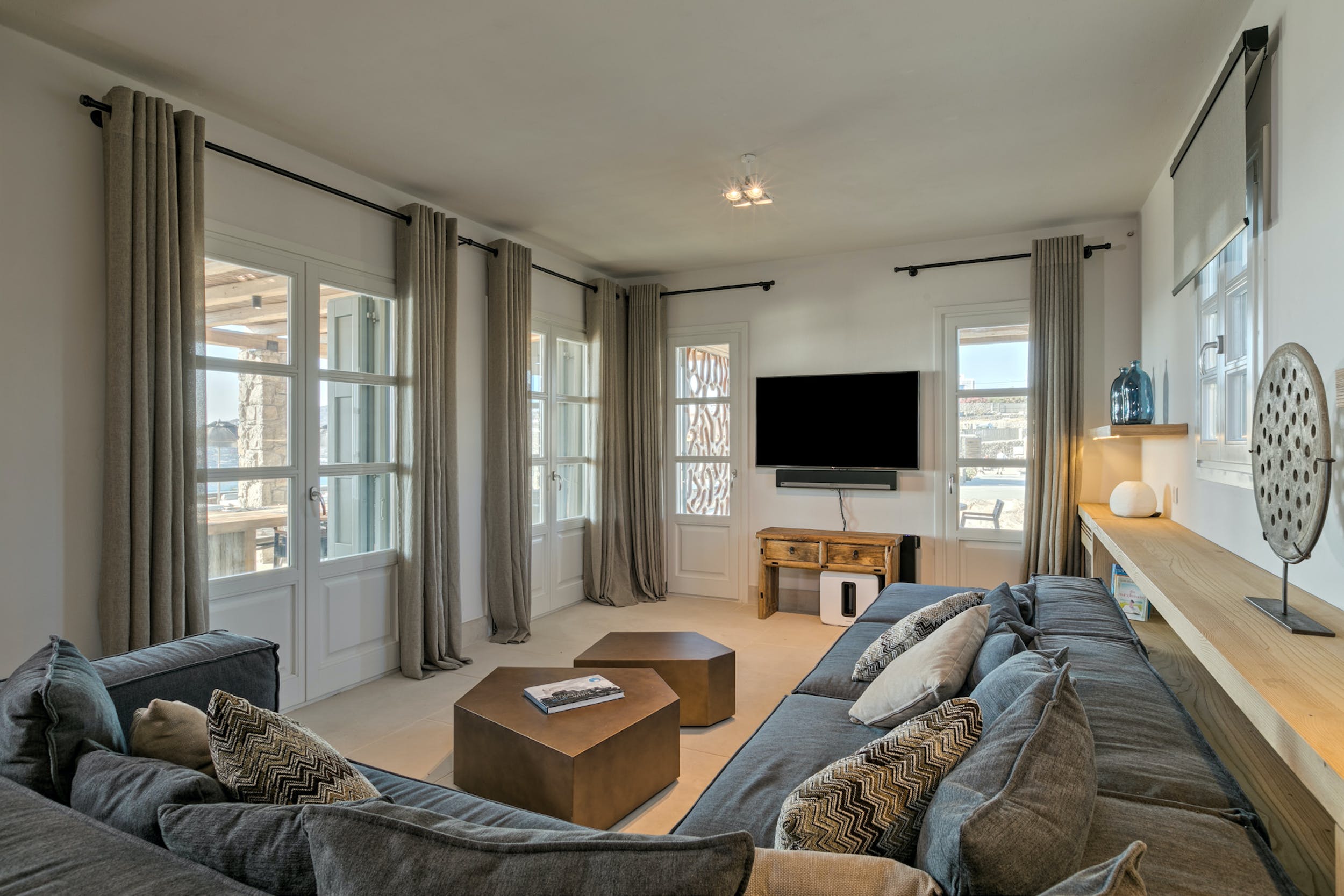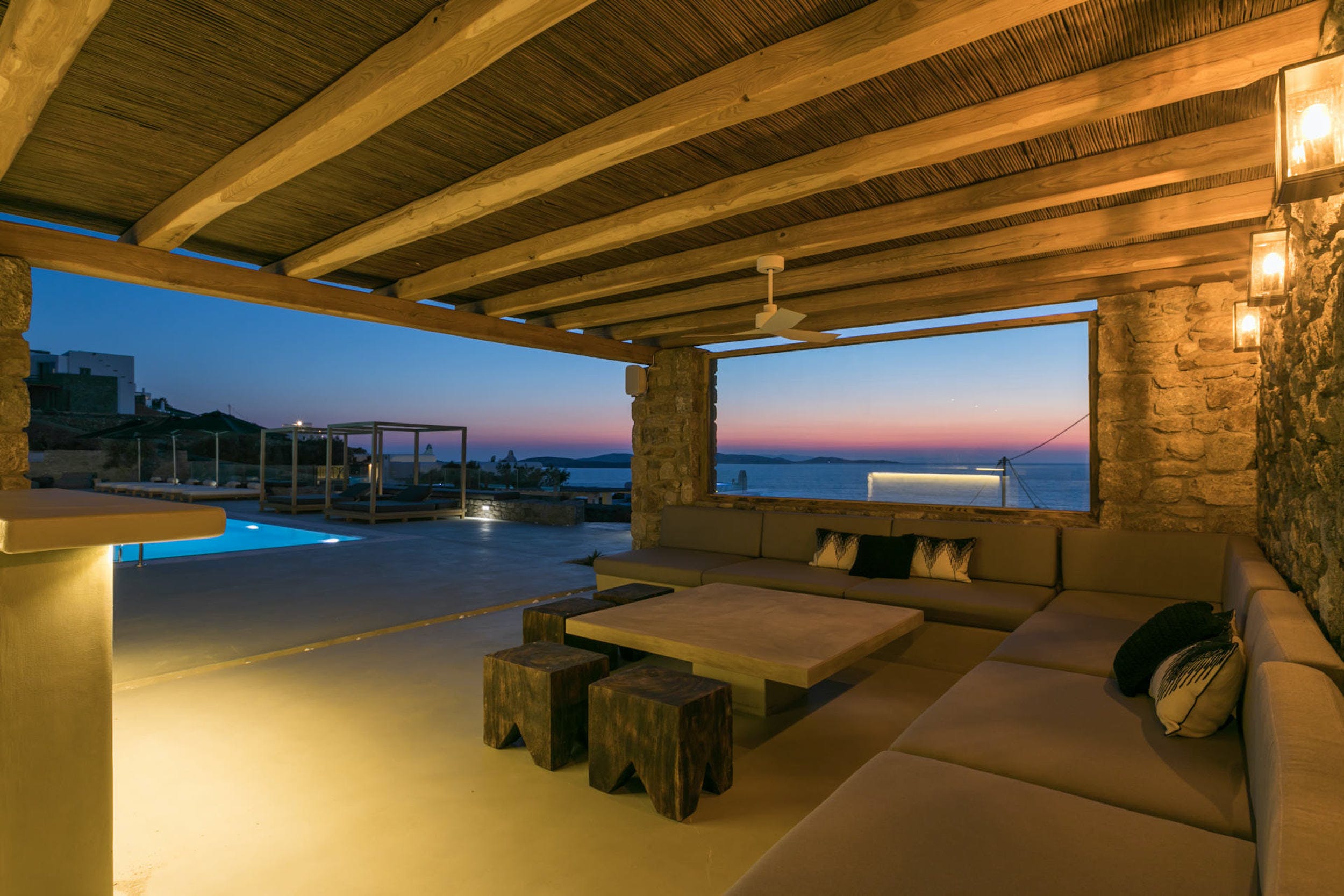 The modern 350m2 interior is beautifully decorated, while the vast outdoor area features a huge, resort style “Beach Entry” pool (25m x 17m), BBQ, Jacuzzi, several dining areas, a pool bar and lounge, and a choice of sitting areas where guests may relax on a warm summer’s day before enjoying the magnificent sunset. The property also features a private gym and massage room for those looking to briefly up the tempo.