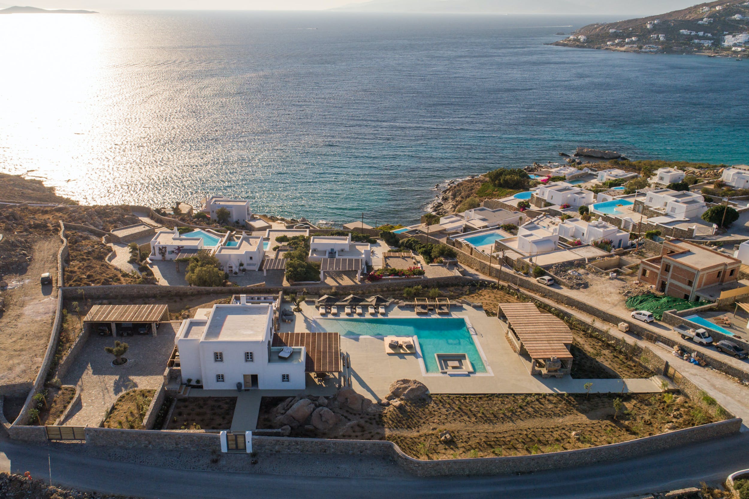 Mavi Matisse is a beautiful, newly built villa located on the coast in Aleomandra; it boasts grand open plan living areas set within a 4,000m2 plot which overlooks the Aegean Sea, with olive trees and many other Mediterranean plants.
