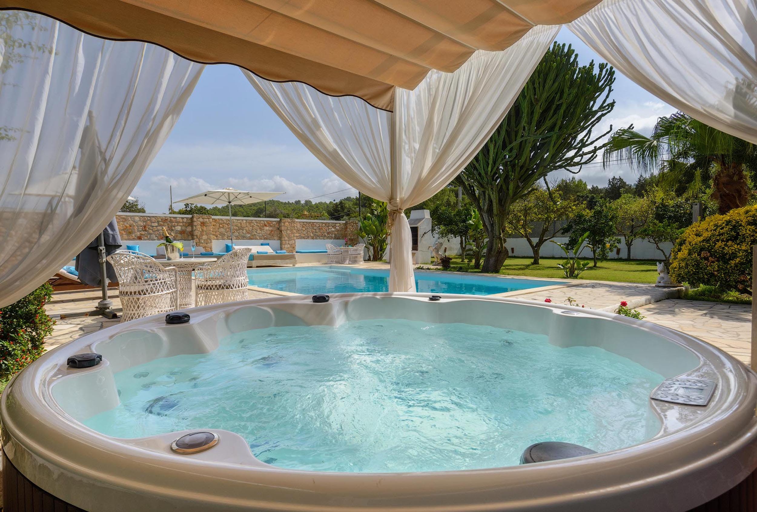 The 10m x 6m L-shaped pool has two depths ? a deeper one for swimming and a shallower area perfect for toddlers and young children. Pull up a poolside lounger to soak up some Ibizan sunshine, or chill on a daybed in the sun-drenched gardens.