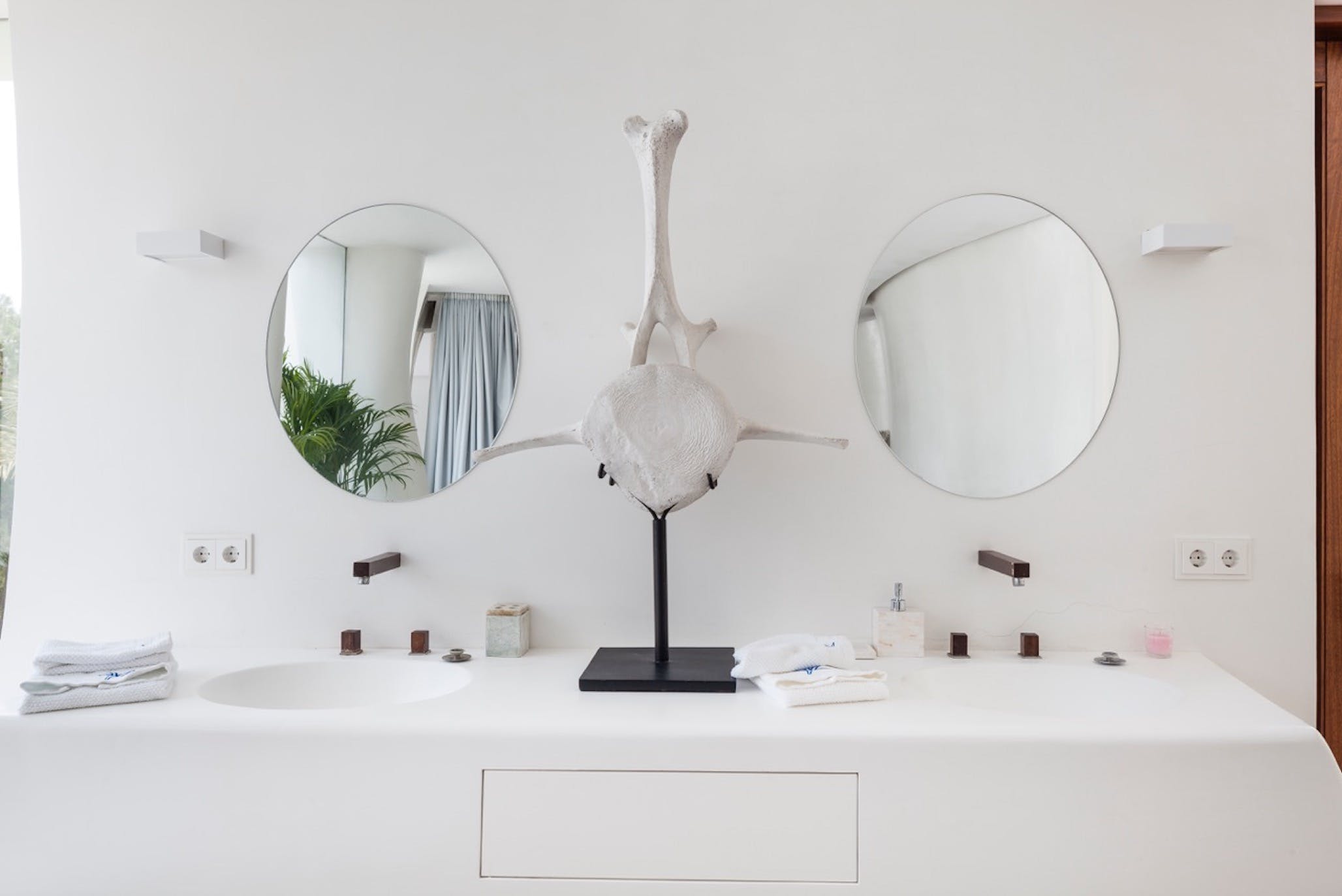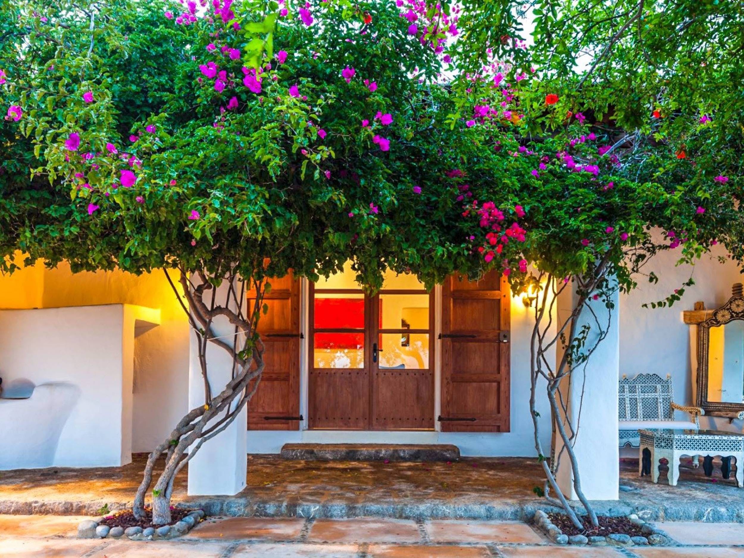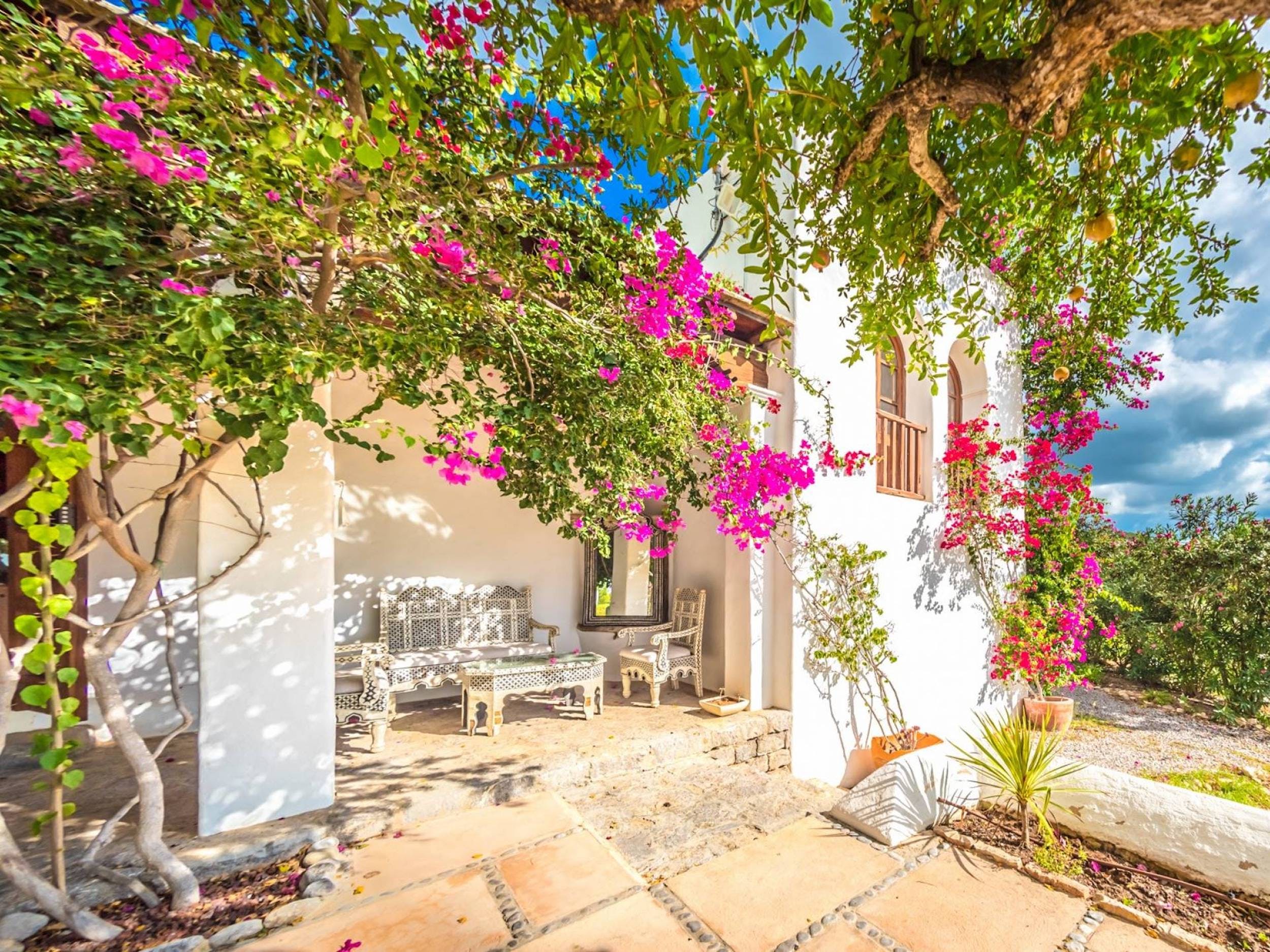 The large garden is filled with scenic spots to relax in the Ibizan sunshine. Laze in the shade of a terrace draped in bright pink bougainvillea. Pull up a chair under a shady canopy to enjoy a meal with friends. Or stretch out on a poolside daybed in sheer bliss.