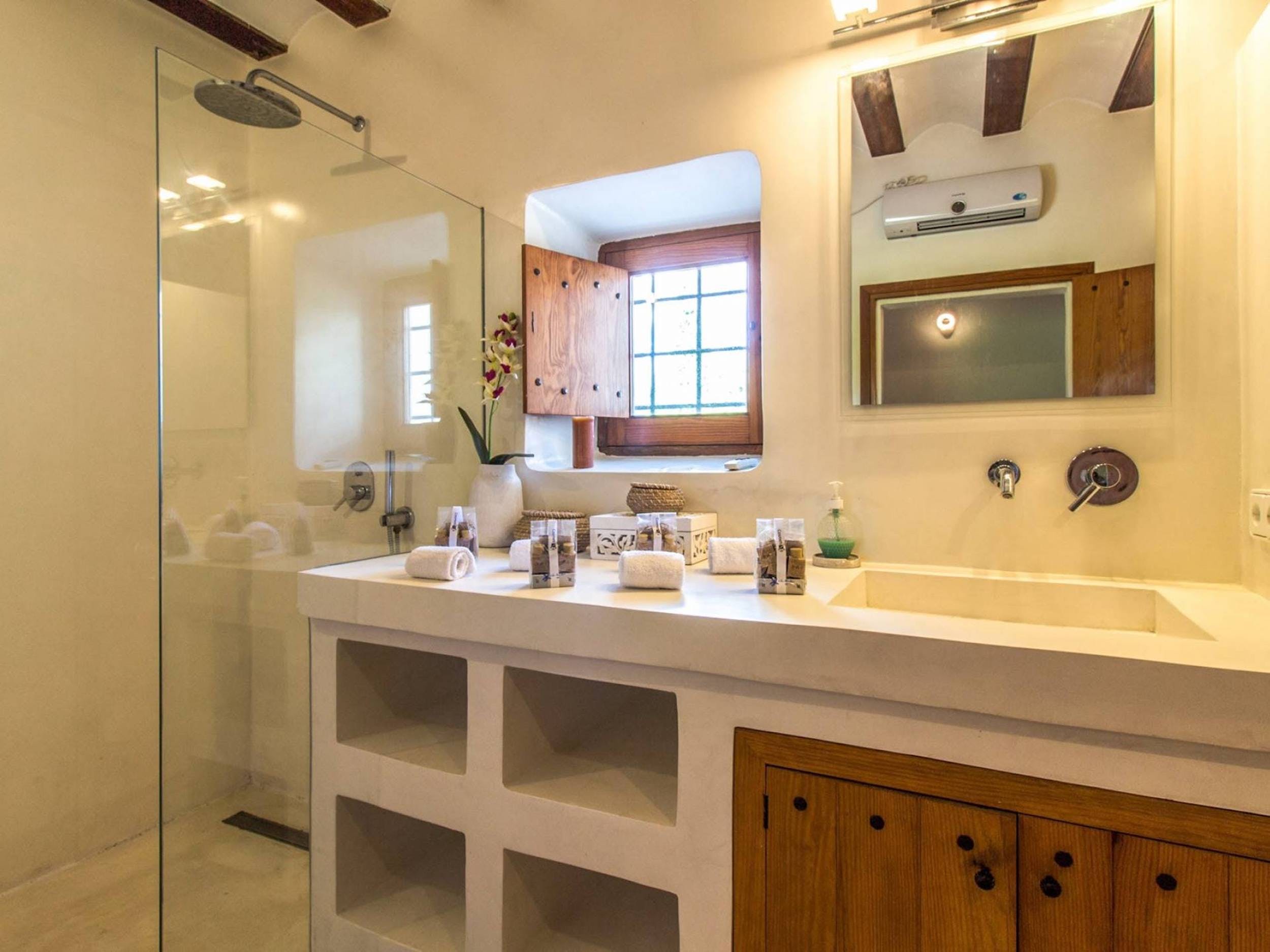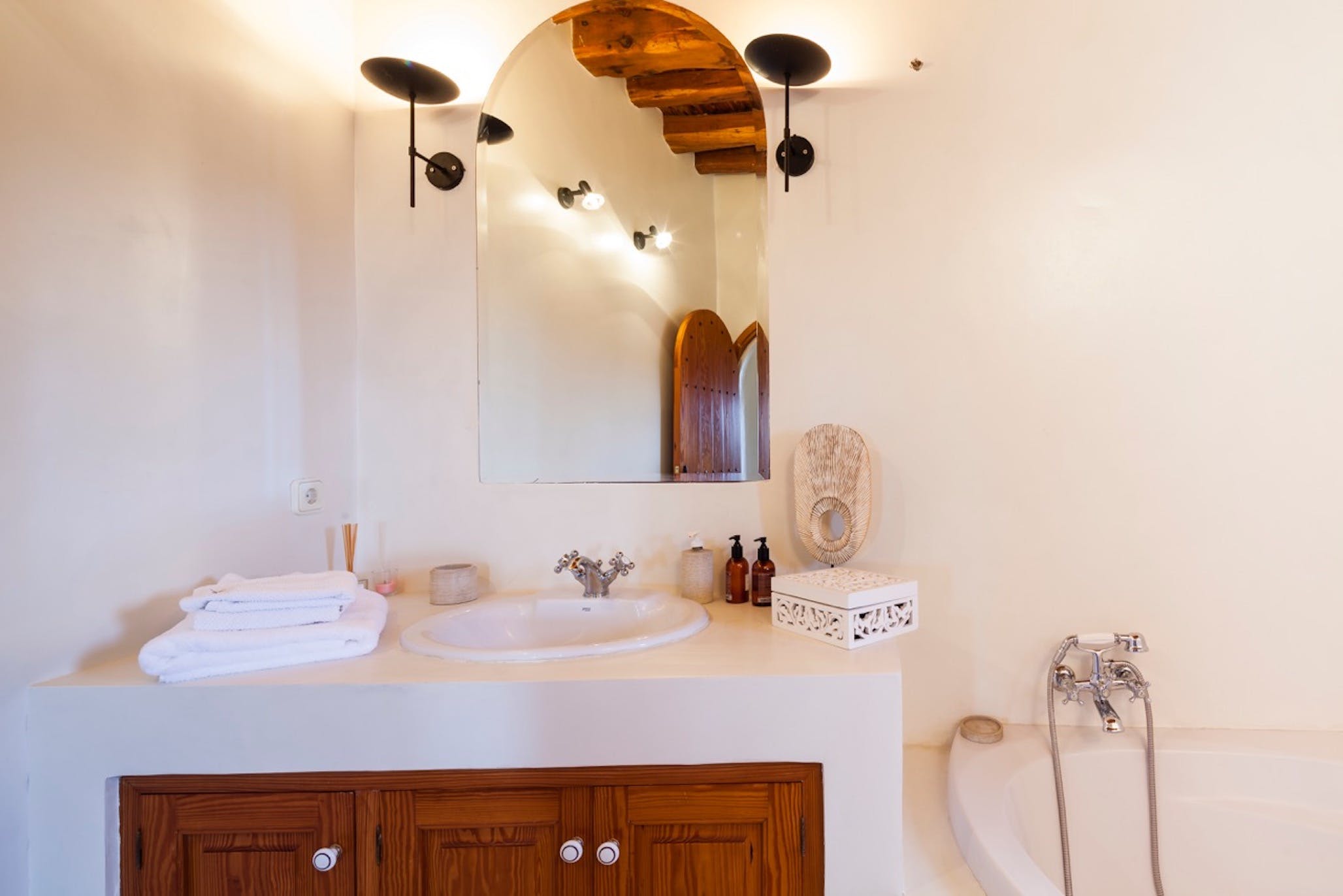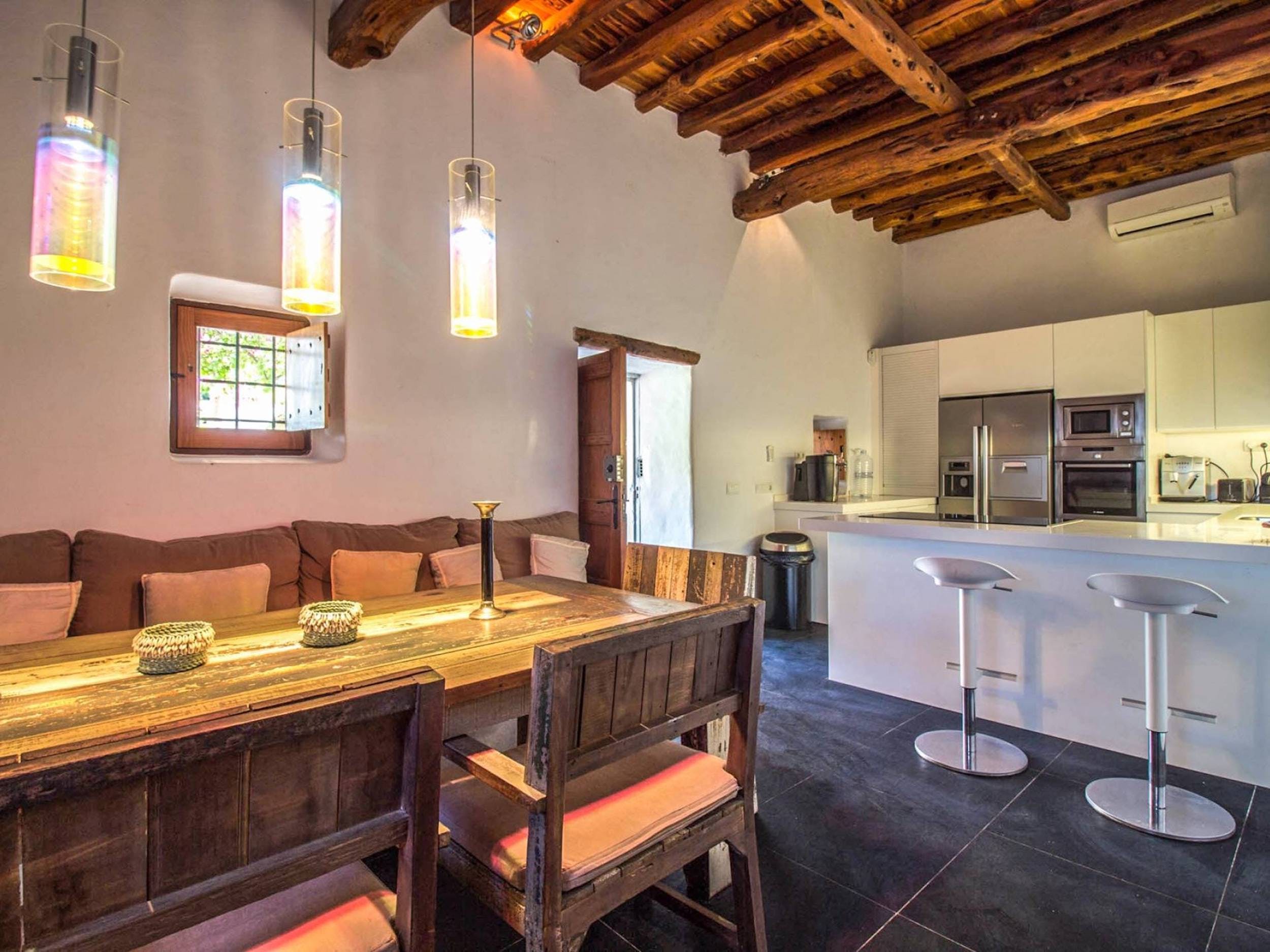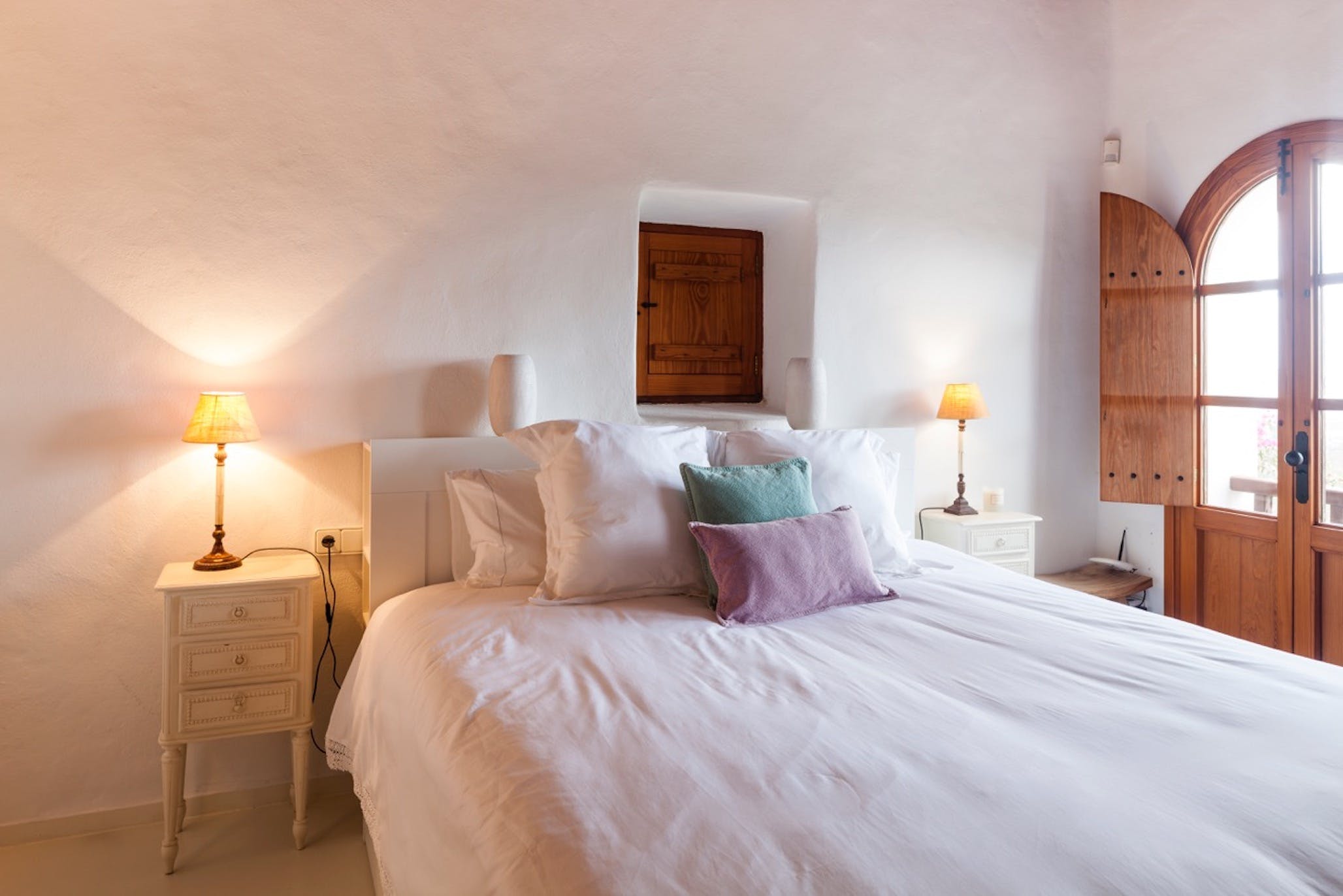 Inside, Misako Dream is an equally happy blend of traditional, 200-year-old Payesa and sympathetic modern refurbishment. The cosy lounge, with winter fireplace, and the smart, well-equipped kitchen enjoy a tasteful blend of traditional Ibizan farmhouse and modern Ibizan chic.