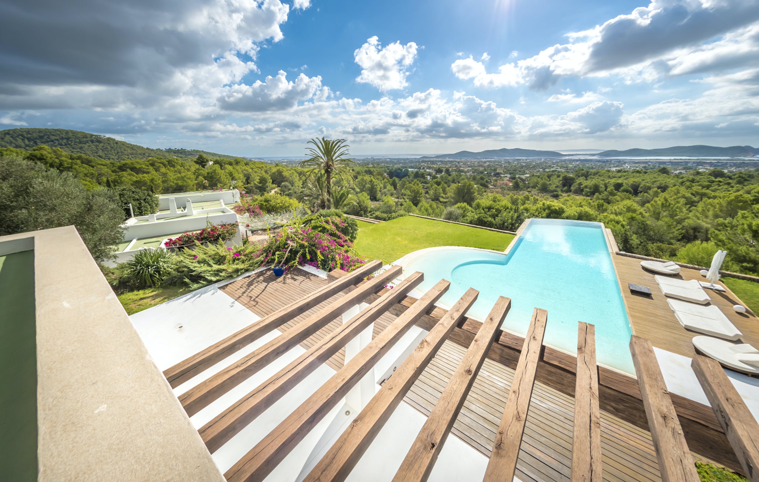 The pool has a gently shelving area, ideal for little ones or simply for sitting and relaxing, as well as a deeper section. Here, you can swim its length as you revel in the view to Las Salinas and Formentera, the sea twinkling just as invitingly in the distance.