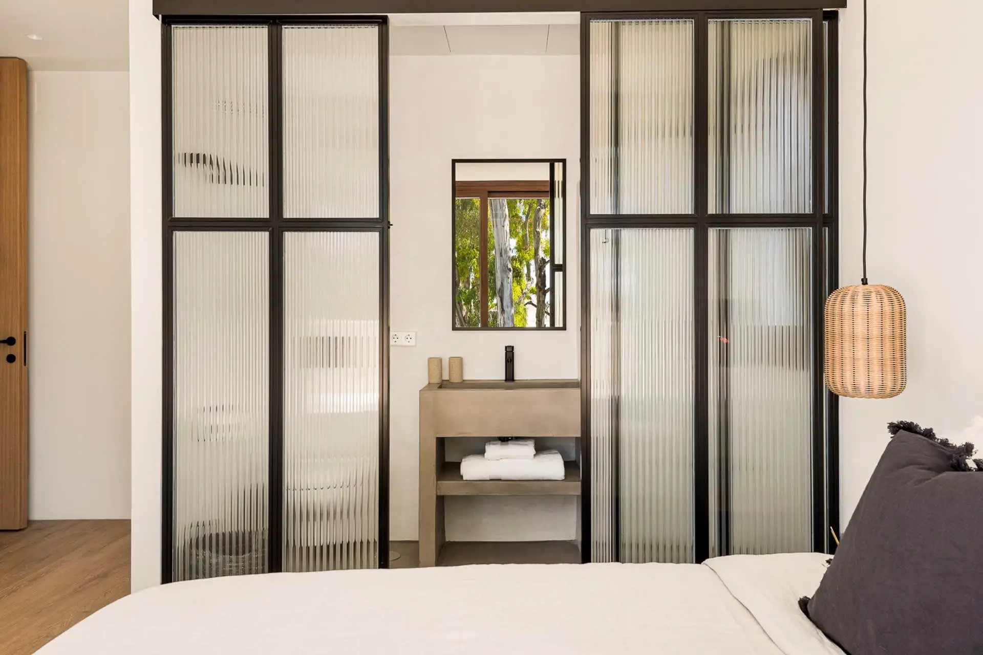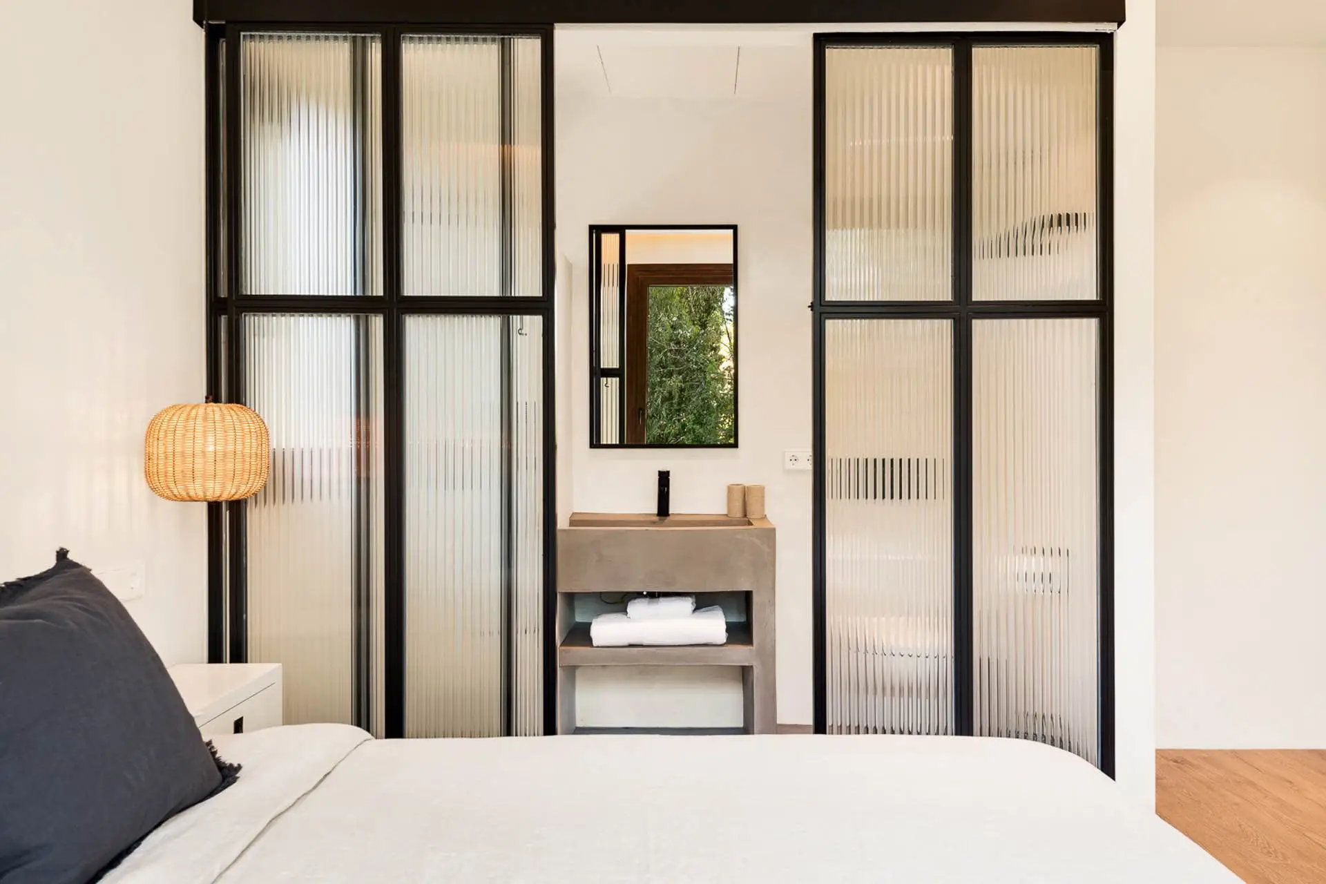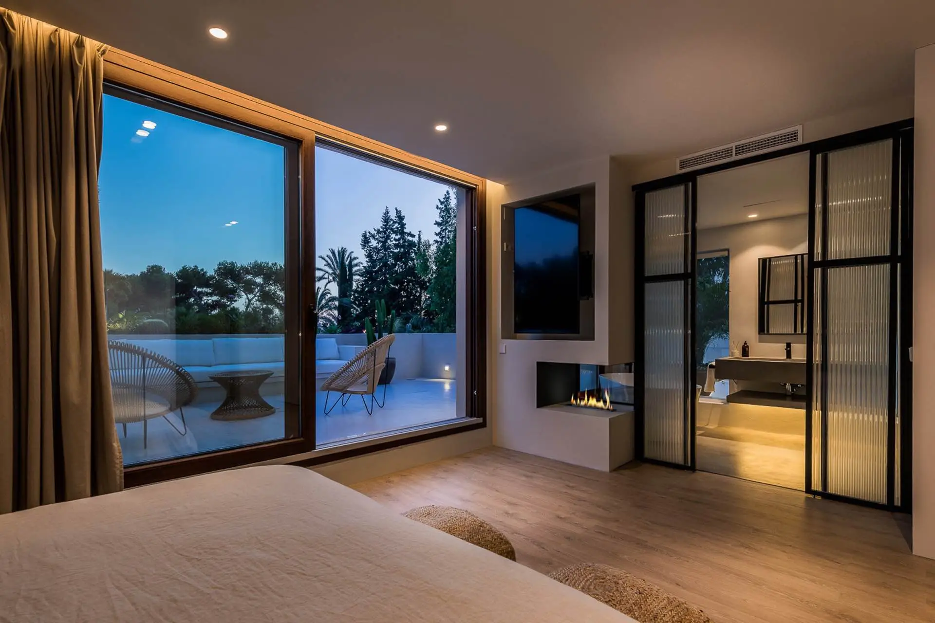 On the first floor, discover the breathtaking master bedroom suite with a luxury bathroom, outdoor shower, bathtub, fireplace, and a private terrace of 36.8 m2 offering splendid views of the swimming pool. Two additional en-suite double bedrooms on this level provide direct access to a private orchard.