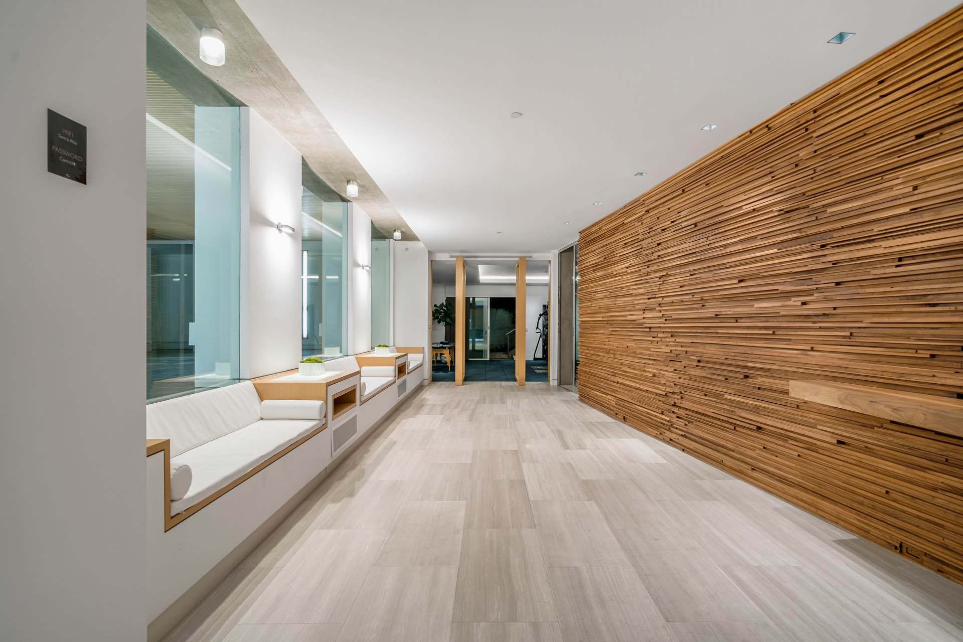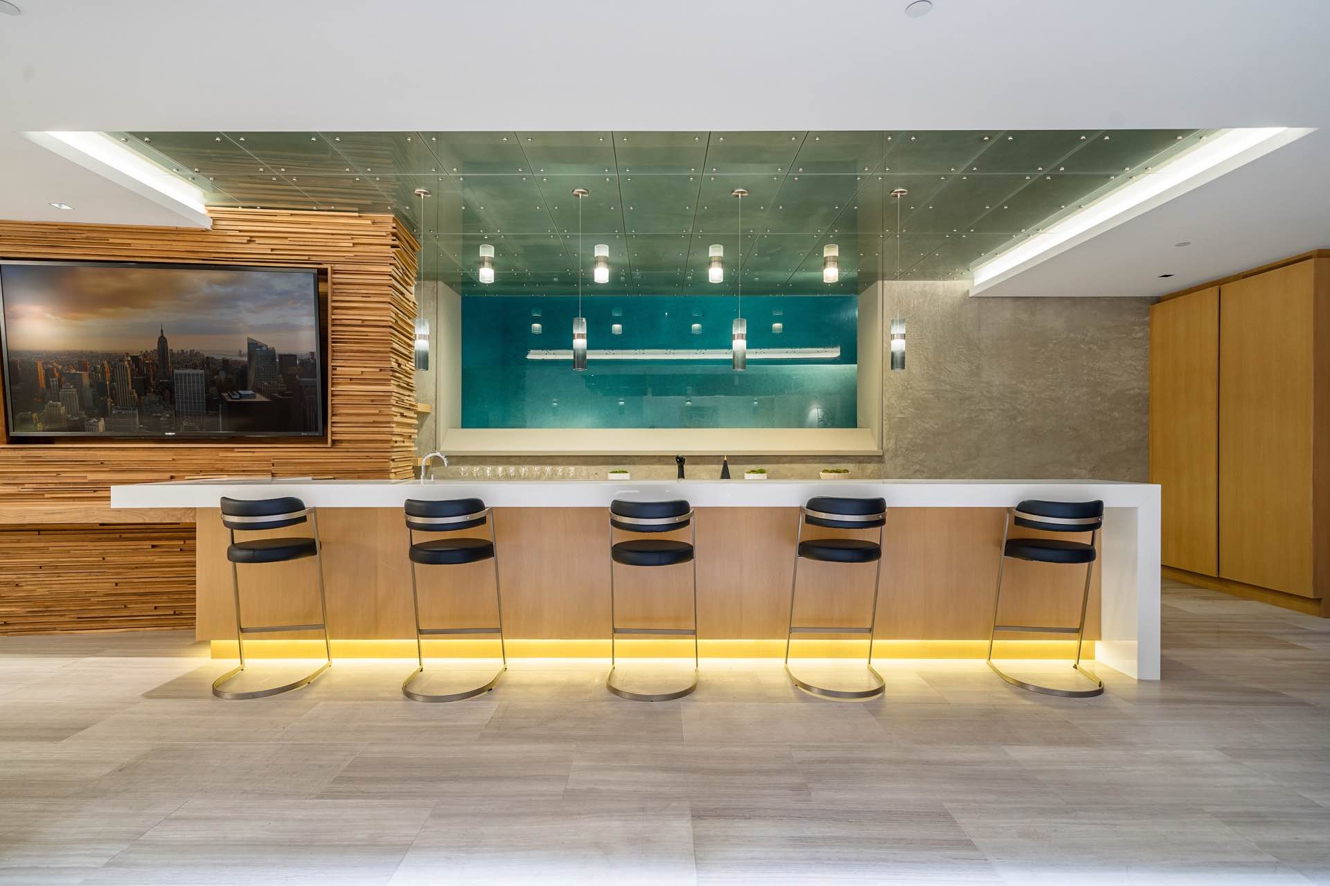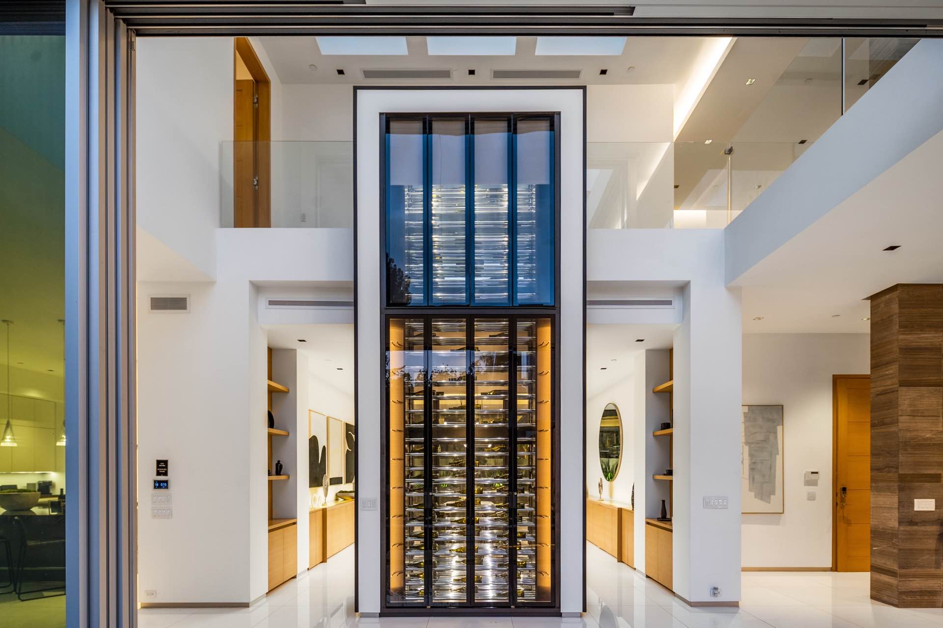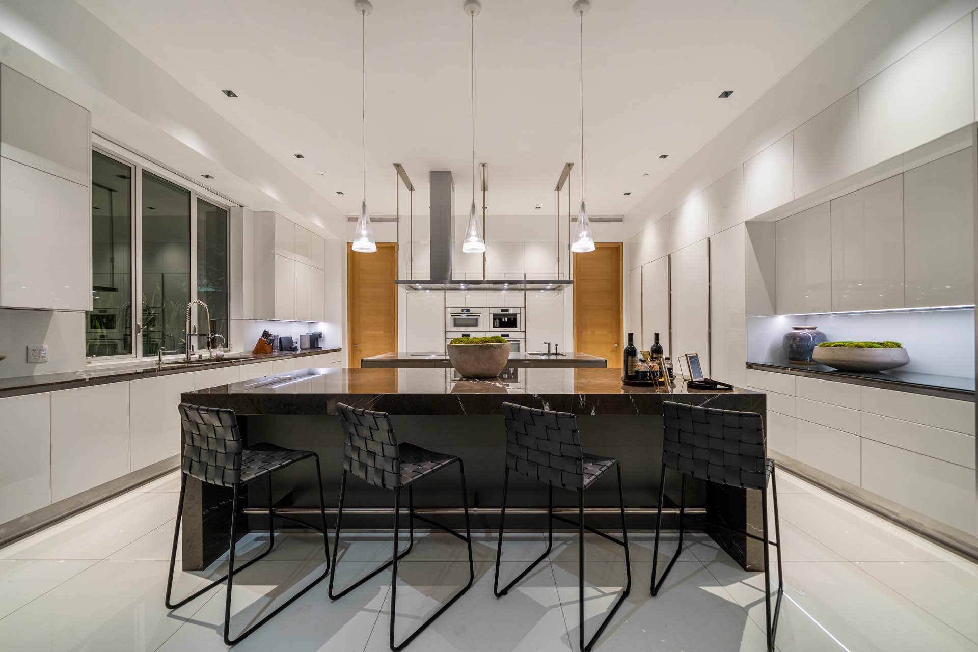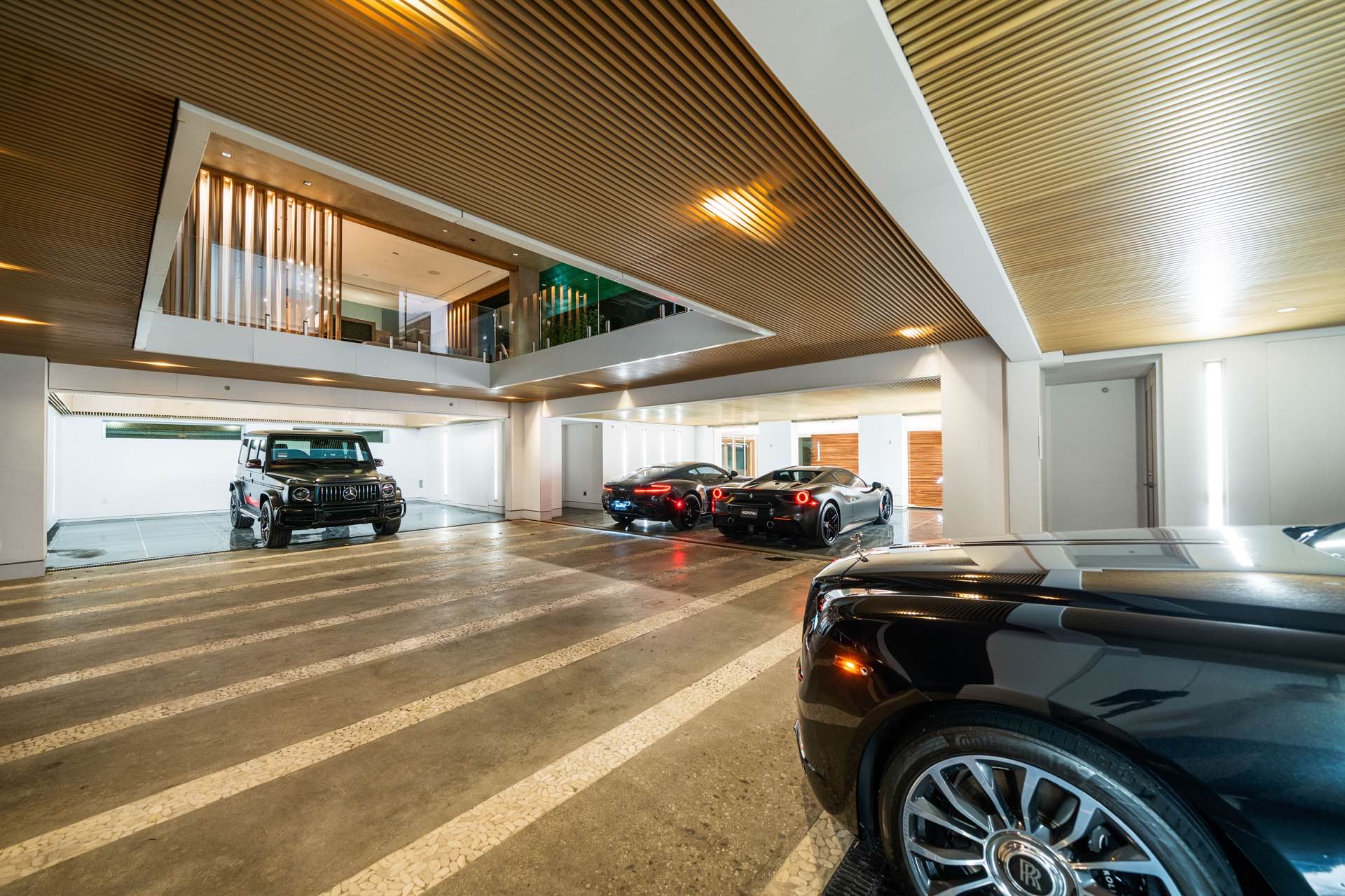 Beyond the home’s massive front pivot door, soaring ceilings and floating staircase is a setting both serene and powerful. A built-in smart entertainment system and concealed speakers are featured in the adjacent kitchen, living, and family areas on the main floor, lower and upper levels.